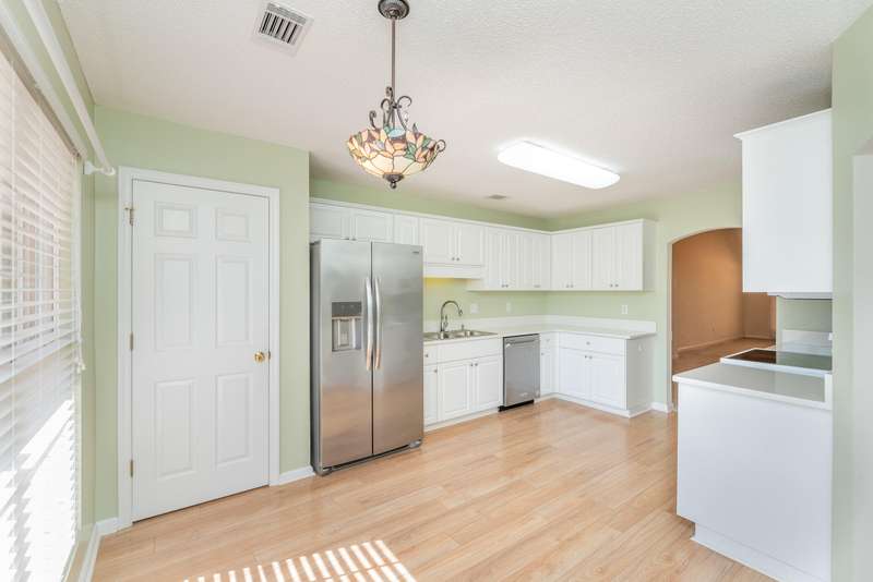 Well-maintained 3BR/2BA brick home in Kensington. Convenient location close to shopping, dining, and grocery stores. Rocking chair front porch. Wide welcoming foyer to greet family and friends,. The living and dining areas are beautifully defined by a graceful arched opening that creates a sense of separation while maintaining an open, connected feel. The sunny kitchen with white cabinetry, ample counter space, pantry, and breakfast nook in front of large window. Owner's suite offers tray ceiling, a large walk-in closet and ensuite with soaking tub and separate shower. Two good size guest bedrooms share a guest bathroom. Laundry room located off the 2 car garage entry. Exterior features a private landscaped courtyard with natural buffer perfect for relaxing. This home is Move-In Ready. Welcome to your easy-care lifestyle.