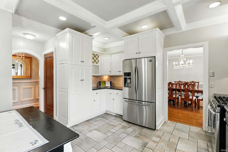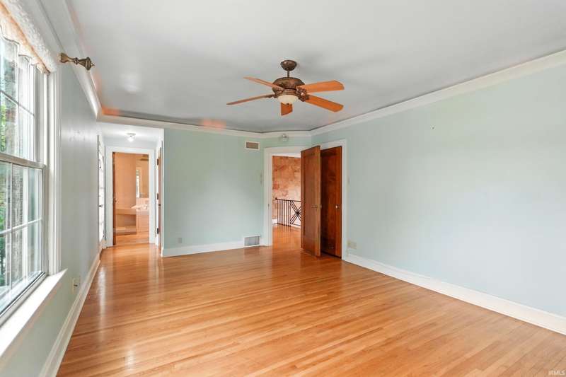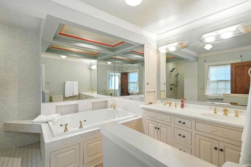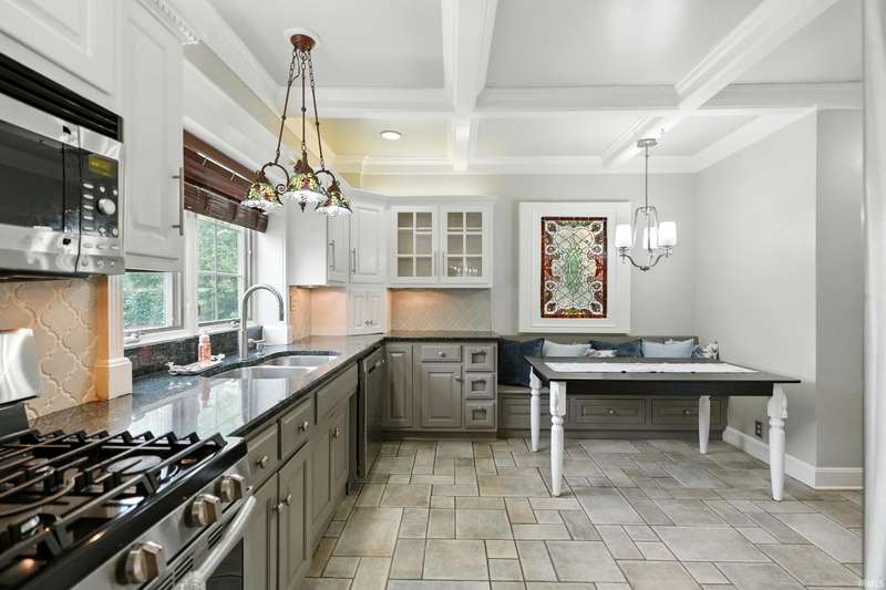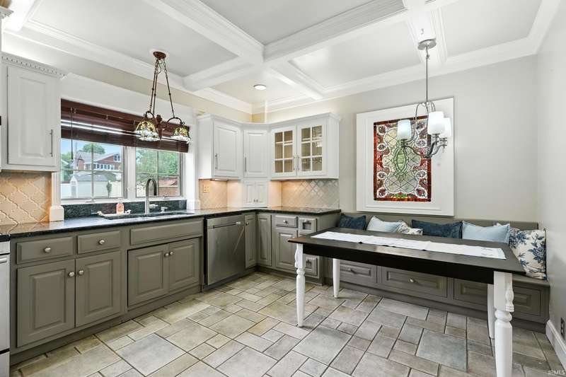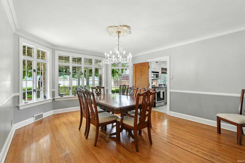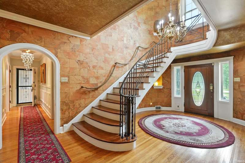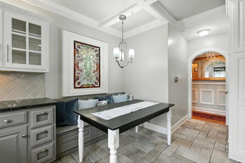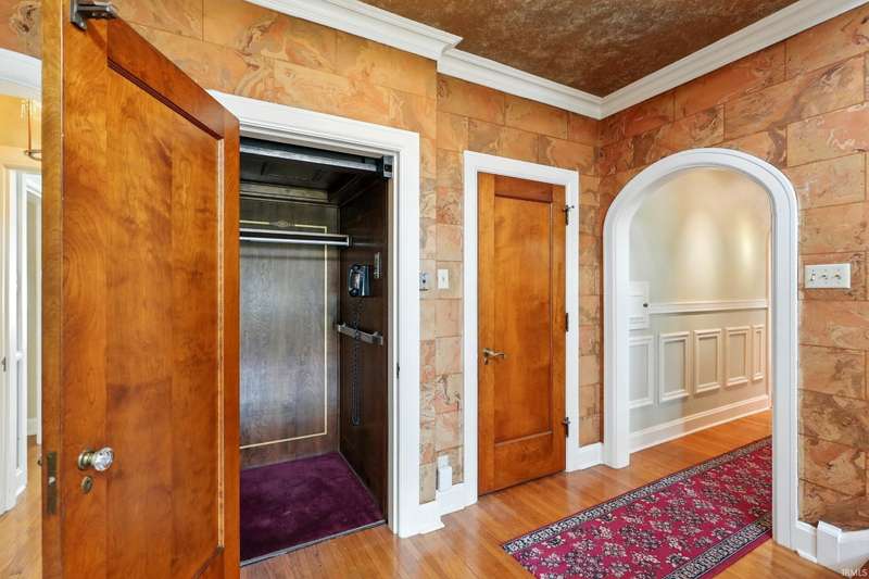 Welcome to the Alexander Birkmeier House on Forest Park Blvd — a 1937 Regency Colonial Revival masterpiece built entirely of stone. This elegant 4-bedroom, 3.5-bath home features a semi-attached two-car garage, grand staircase, and arched doorways. Inside, enjoy beautifully preserved hardwood floors throughout, a spacious formal living room with a fireplace, a large dining room perfect for entertaining, and a sunlit den or office. The kitchen blends historic charm with modern function and opens to a cozy breakfast nook. Upstairs, the bedrooms are generously sized, including a primary suite with an en-suite bath and several closets. Architectural details include eight-over-eight windows, a curved central entry with copper roof and iron supports, and a stone parapet crowning the flat roof. The master bedroom has a second story walkout balcony to view downton fireworks. Set among mature landscaping, this home offers timeless character in one of Fort Wayne’s most iconic neighborhoods. Please contact your agent for inspection report, recent repairs as well as updating quotes.