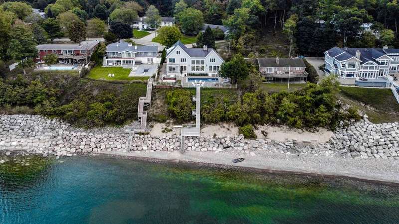 Beautiful 4BR/3.5BA lakefront home in Grand Beach with waterfront pool and new double seawall! This one-owner property has been meticulously maintained and is move-in ready. The open main level features a 2-story great room with floor-to-ceiling windows and a striking stone fireplace. Enjoy incredible lake views from the spacious kitchen with granite counters, stainless appliances, and large island. Step out to the expansive lakefront deck and pool area, ideal for relaxing or entertaining. The large primary suite includes a private balcony overlooking the pool and lake. Located in a golf cart-friendly community with a 9-hole golf course, tennis courts, and playground. Just minutes to downtown New Buffalo and about an hour from Chicago, this is your ideal lakefront escape-perfect as a full-time home or weekend getaway.