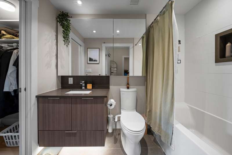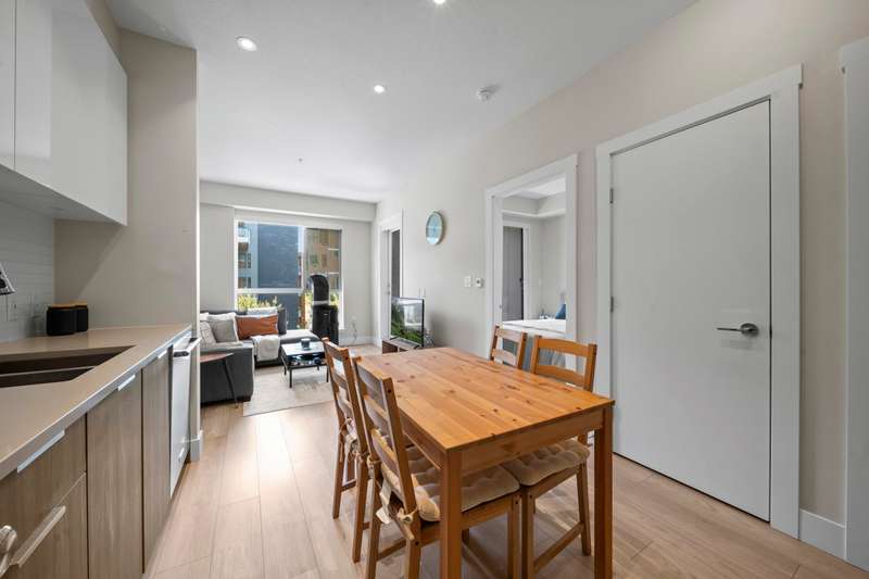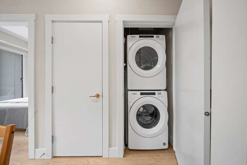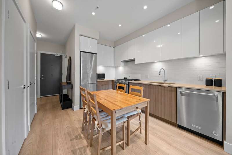 Live in one of Vancouver’s fastest growing communities — the River District by award-winning Wesgroup Properties. This bright 1 bed + den, 580 sq ft courtyard-facing home at Avalon 1 features a functional open layout with 9' ceilings, a sleek modern kitchen with stainless steel appliances (gas range), quartz counter tops and under cabinet lighting. In-floor radiant heating and an HRV system provide year-round comfort. Enjoy morning sun and garden views from your covered balcony. Steps to shops, groceries, restaurants, and more, with access to great amenities including a fitness centre, guest suite, and landscaped courtyard.