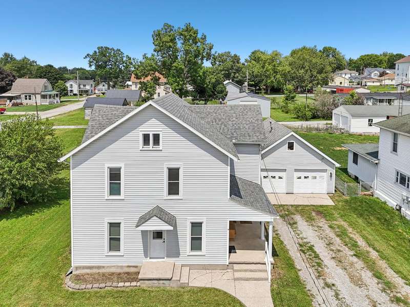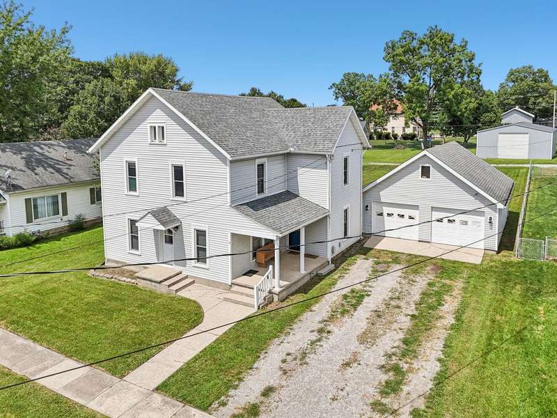 If small town living is what you are looking for; this may be your new home. Features 4 bedrooms and 2 full baths (one on each level) main level laundry and main level bedroom and a kitchen to die for. Updates include: 2015-windows, 2016-roof and within the last 3 years, full kitchen remodel, downstairs bath including plumbing. Also, in 2022, new hot water heather, softener and whole house filtration system. New carpet throughout the home in 2024. Also features outdoor entertaining space as well as green space for your pets. Oversize 2 car detached garage is heated and has plenty of space. Electrical has been updated over the last 10 years and new distribution panel and service wire will be completed prior to closing. All you have to do is move in.