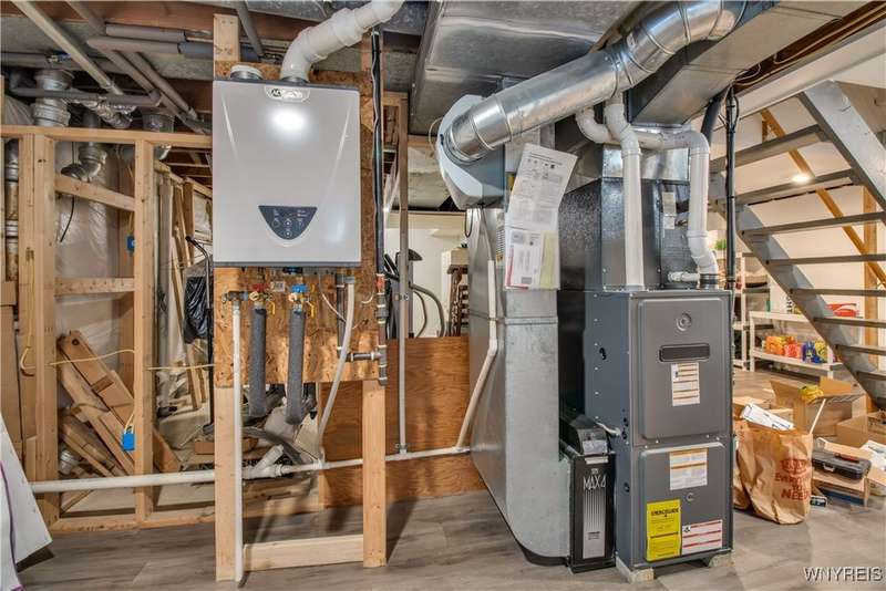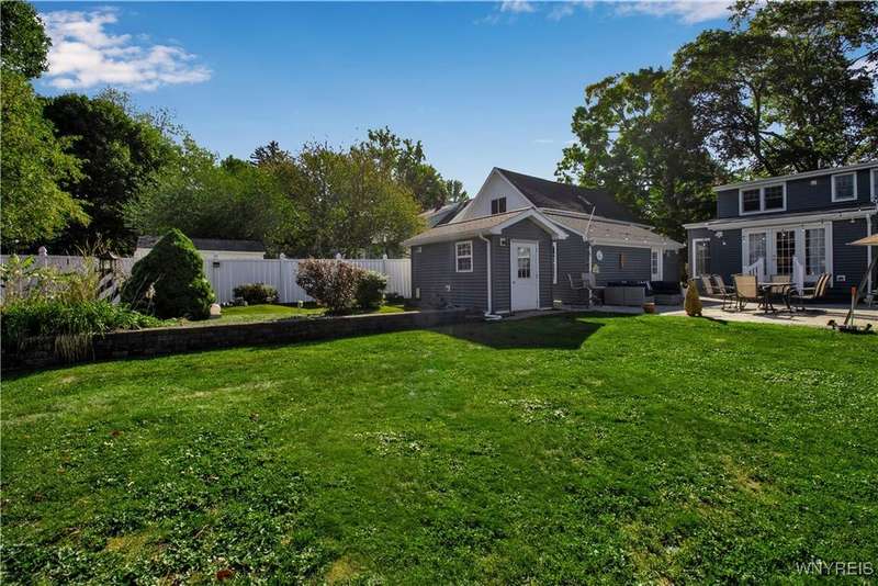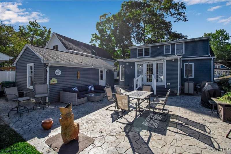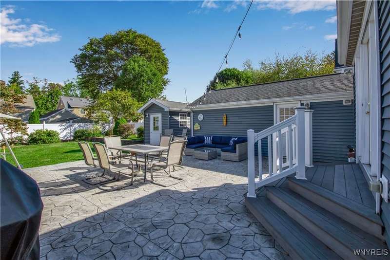 Welcome to this inviting 3-bedroom, 2-bathroom Cape Cod located in the heart of the Hamburg Village. Inside, you'll find a spacious kitchen with ample cabinetry, a bright dining room, and a comfortable living room. The cozy family room opens to the backyard, where you'll enjoy a maintenance-free deck, stamped concrete patio, and plenty of space to entertain or relax?plus a shed for extra storage. The first floor features one bedroom and an updated full bath. Upstairs offers two additional bedrooms with hardwood floors, another updated full bath, and great storage?one large bedroom with two closets and another with built-in cabinetry. The partially finished basement provides even more living potential, along with modern updates including a tankless hot water system (2025), new garbage disposal (2025) updated windows, and central air. With its versatile layout, updates, and beautiful outdoor space, this home is truly move-in ready. Plus, the location can't be beat?just minutes from shops, restaurants, and the thruway! Delayed negotiations until Tuesday, October 7th at 4pm