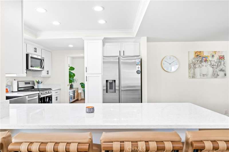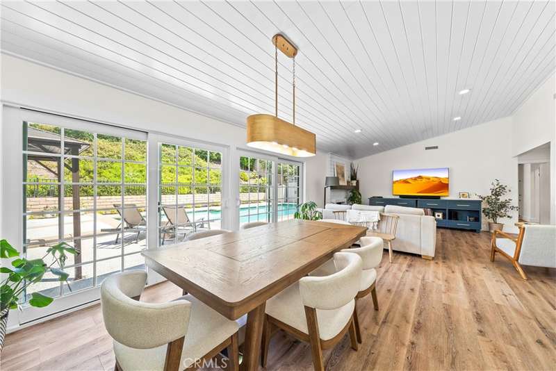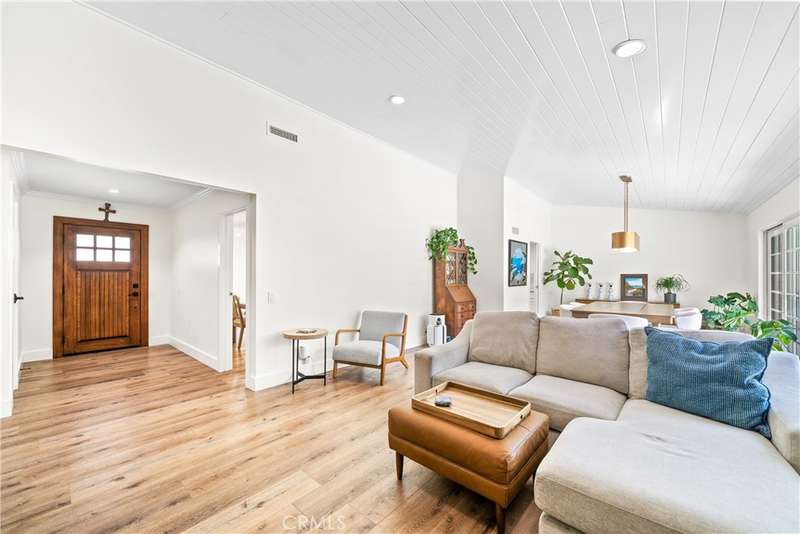 Presenting an unparalleled opportunity for single level pool yard living in highly sought after Mission Viejo. This stunning, turnkey residence is a freshly updated, single-level home, designed for effortless living. With 4 bedrooms, 2 bathrooms, and a meticulously finished 2-car garage with an epoxy floor, 2024 roof, & solar, this property exemplifies ease of enjoyment and comfort. Step inside to find a grand entrance with a vaulted beadboard ceiling which sets a tone of elegance. The open-concept design seamlessly connects the living spaces, which are adorned with luxury vinyl flooring and filled with natural light from dual-pane windows. The renovated kitchen is a culinary enthusiast's dream. It showcases elegant quartz countertops, soft-close cabinetry with convenient pullouts, and high-end stainless-steel appliances. A sizable farmhouse sink, walk-in pantry, and breakfast bar provide both style and functionality, while an adjacent bonus living/dining area offers versatile space. The formal dining room opens directly to the backyard, creating a seamless flow for indoor-outdoor pool party gatherings. The home's serene living extends to a primary suite with elegant fixtures, a charming bay window reading nook with top-down/bottom-up blinds, and dual closets. The accompanying primary bathroom features a walk-in shower. Three additional bedrooms are equipped with ceiling fans and closet organizers, with two providing direct sliding door access to the beautifully landscaped backyard. A private oasis, the backyard features a stylish patio cover and a welcoming oversized swimming pool which will be perfect for countless days of fun in the sun with neighbors, family and friends. The spacious driveway offers ample parking for up to four additional vehicles. Beyond the property's boundaries, residents enjoy the exceptional benefits of the Mission Viejo lifestyle. Known for its safety, strong demographics, and outstanding quality of life, Mission Viejo provides access to award-winning schools and a wealth of recreational amenities, including over 40 parks, recreation centers, and access to freeways for convenient commuting. This unique property is also exempt from an HOA, offering enhanced freedom and financial savings. This is a rare opportunity to acquire a turnkey, single-level pool residence in one of the most coveted master-planned communities. We invite discerning buyers to experience the perfect blend of style, comfort, and convenience. Welcome Home!