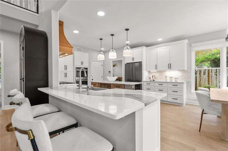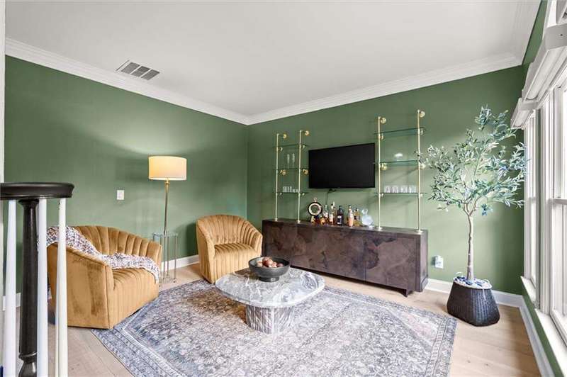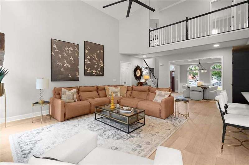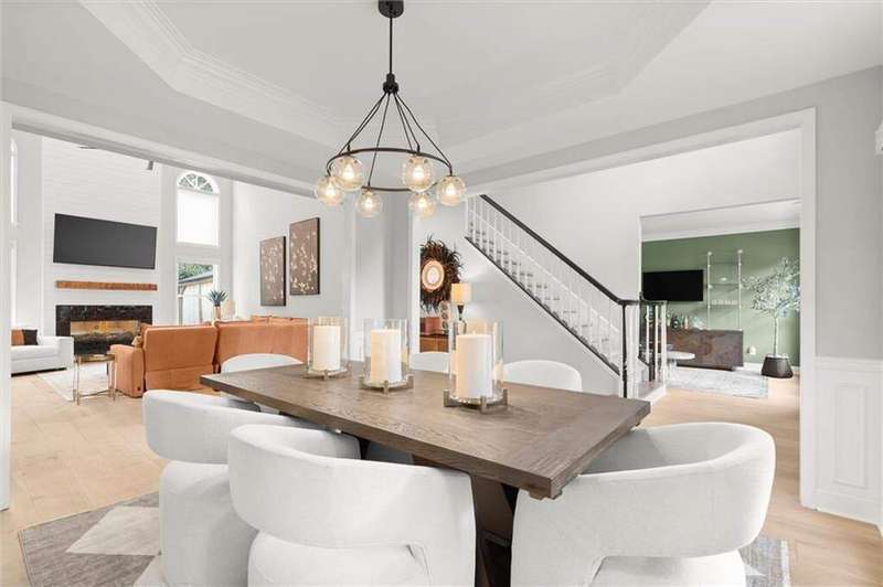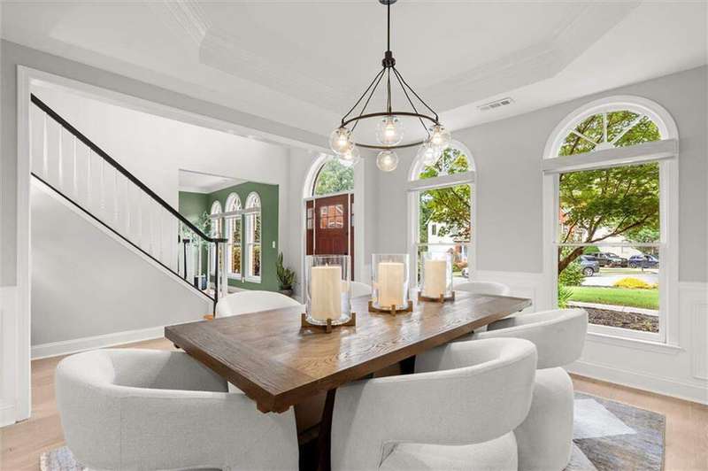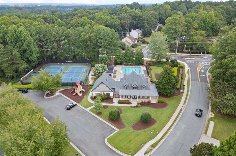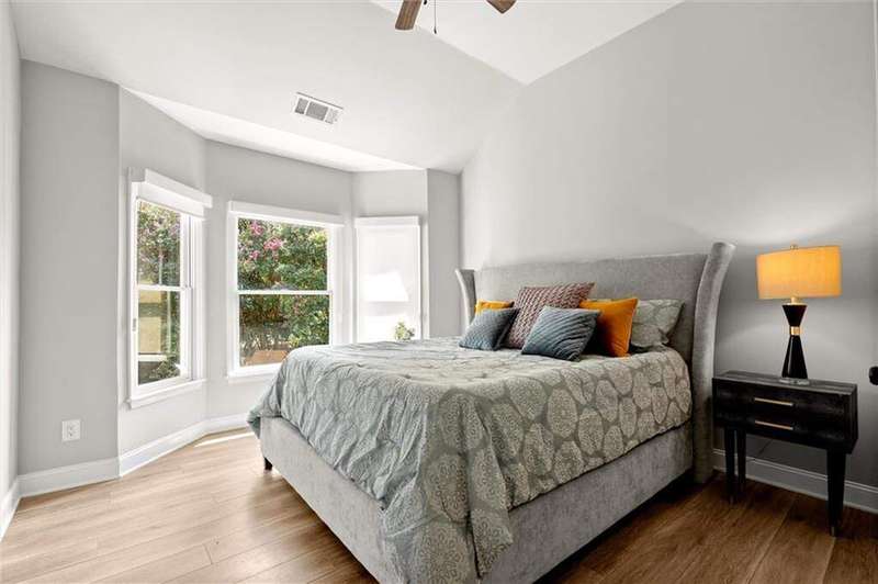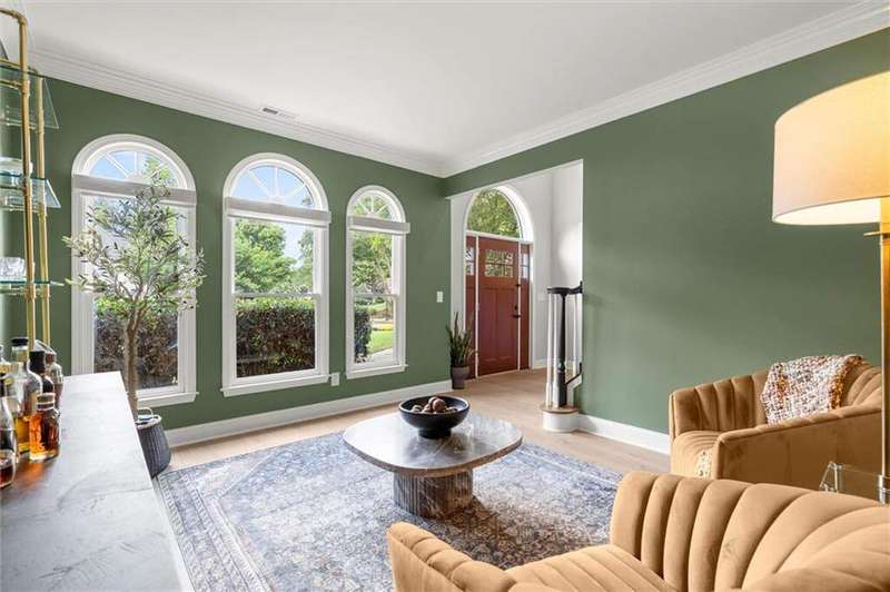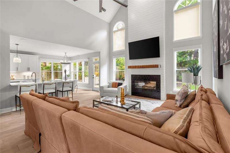 This tastefully renovated home is filled with natural light and elegantly curated finishes. The hub of the home is the gorgeous eat-in kitchen which features a Wolf cooktop with a beautiful custom-made range hood, double ovens, Cambria Quartz countertops, a six foot island, a super quiet Bosch dishwasher, and a breakfast bar. Sunshine streams through the arched windows in the two-story, southern-facing great room. Electric fireplace can be for show or to gently warm when it's chilly. The open floorplan creates easy flow for gathering and entertaining which extends from the formal dining room to the exterior patio. The backyard is secluded and fenced with lush landscaping. A separate living room off the foyer has been fashioned as a gentlemen's drawing room in rich earth hues. Hand-scraped, wide planked wood flooring throughout. Private bedroom and full bath on the main level could be Master on Main or Inlaw Suite. Upstairs, the primary bedroom suite features an adjacent nursery or dressing room and a Hollywood Glam bathroom with a luxurious, standalone tub, a spacious (doorless) walk-in shower, and a private water closet. The Home Office with glass doors opens to the catwalk. Two additional bedrooms enjoy sunset views and share a sleekly updated bathroom. Bonus! Rear stairs were removed to create several additional storage closets. And, there is an attached storage shed behind the two-car garage. The HOA manages the club house, swimming pool and tennis courts situated at the entrance to the neighborhood. Located near all that makes Alpharetta awesome. Walk or ride to Webb Bridge Park and the Greenway. Enjoy Avalon Nights Live at Alpharetta's premier shopping and dining district. Top performing schools include Lake Windward Elementary, Webb Bridge Middle School and acclaimed Alpharetta High School, which offers International Baccalaureate (IB) as well AP courses along with an impressive array of athletic programs and extracurricular activities. A very special HOME in an exceptional community.