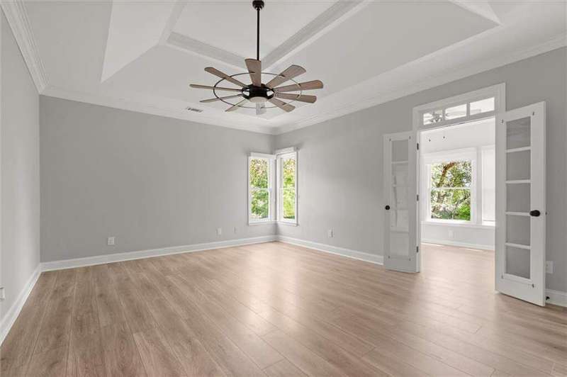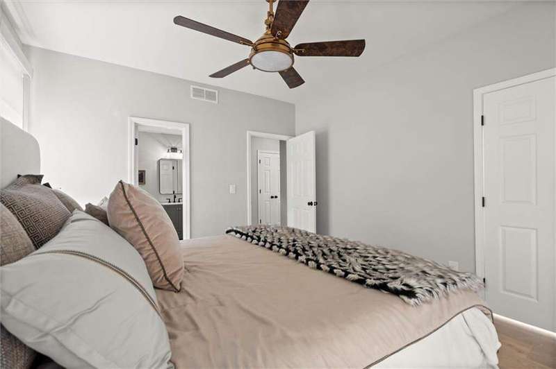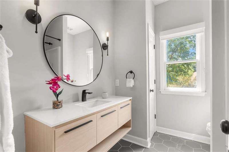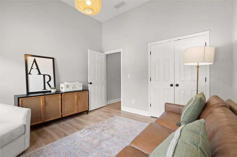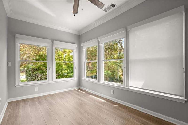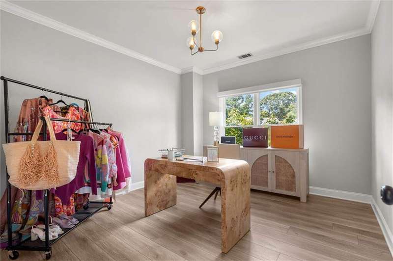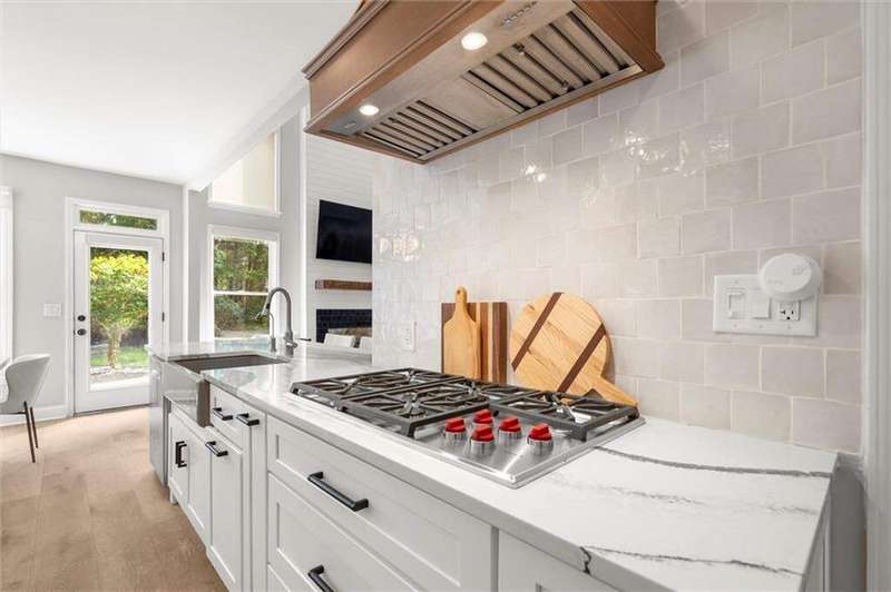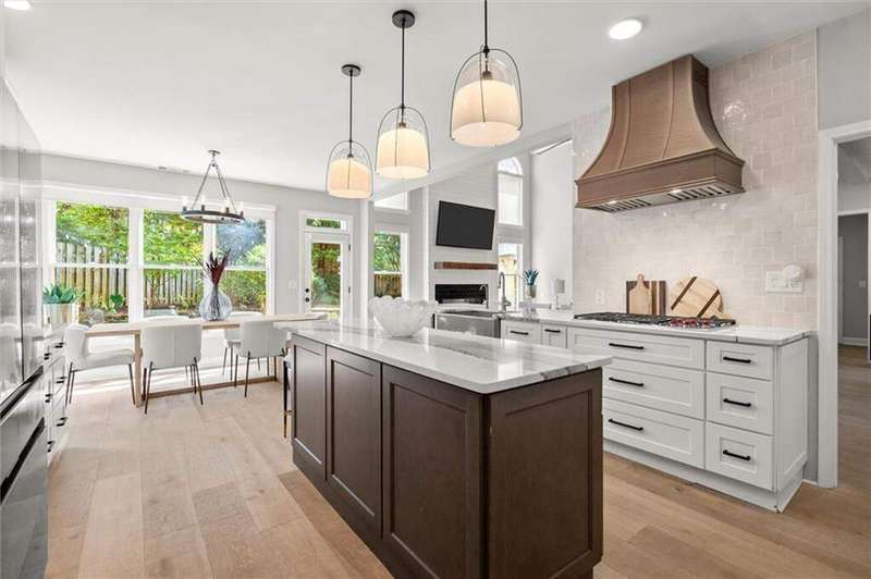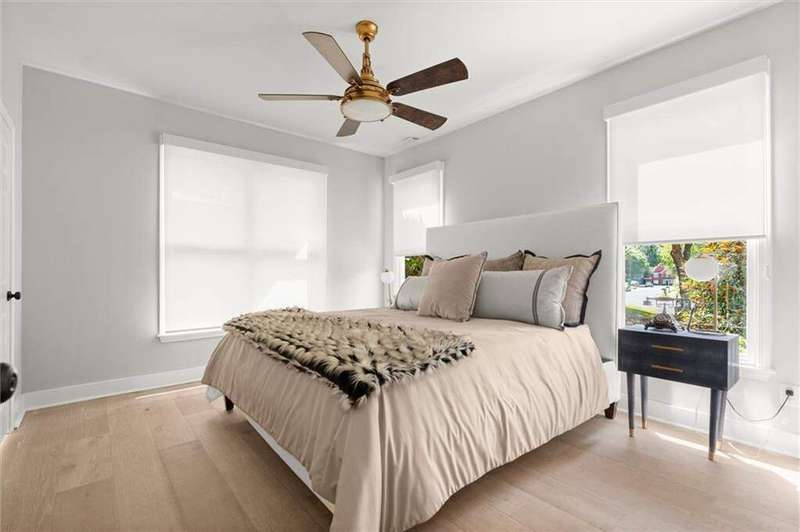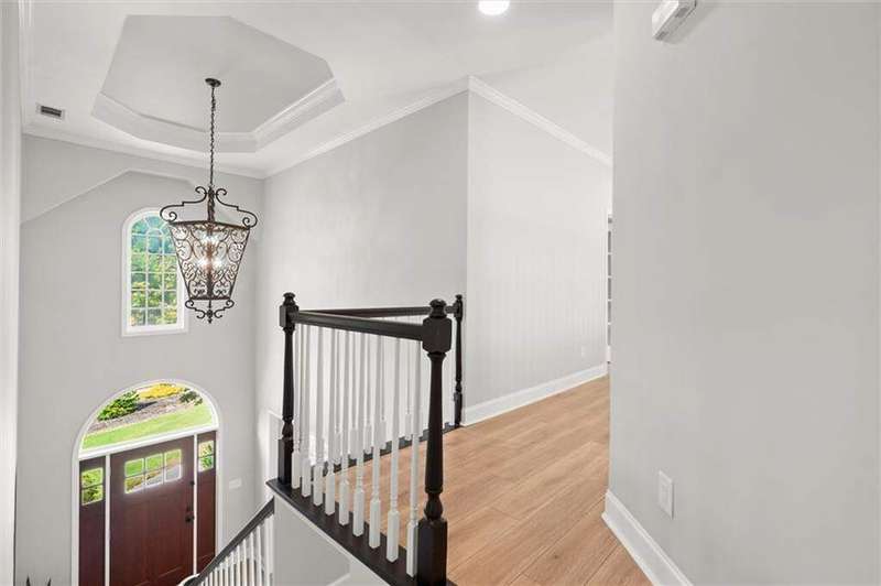 This tastefully renovated home is filled with natural light and elegantly curated finishes. The hub of the home is the gorgeous eat-in kitchen which features a Wolf cooktop with a beautiful custom-made range hood, double ovens, Cambria Quartz countertops, a six foot island, a super quiet Bosch dishwasher, and a breakfast bar. Sunshine streams through the arched windows in the two-story, southern-facing great room. Electric fireplace can be for show or to gently warm when it's chilly. The open floorplan creates easy flow for gathering and entertaining which extends from the formal dining room to the exterior patio. The backyard is secluded and fenced with lush landscaping. A separate living room off the foyer has been fashioned as a gentlemen's drawing room in rich earth hues. Hand-scraped, wide planked wood flooring throughout. Private bedroom and full bath on the main level could be Master on Main or Inlaw Suite. Upstairs, the primary bedroom suite features an adjacent nursery or dressing room and a Hollywood Glam bathroom with a luxurious, standalone tub, a spacious (doorless) walk-in shower, and a private water closet. The Home Office with glass doors opens to the catwalk. Two additional bedrooms enjoy sunset views and share a sleekly updated bathroom. Bonus! Rear stairs were removed to create several additional storage closets. And, there is an attached storage shed behind the two-car garage. The HOA manages the club house, swimming pool and tennis courts situated at the entrance to the neighborhood. Located near all that makes Alpharetta awesome. Walk or ride to Webb Bridge Park and the Greenway. Enjoy Avalon Nights Live at Alpharetta's premier shopping and dining district. Top performing schools include Lake Windward Elementary, Webb Bridge Middle School and acclaimed Alpharetta High School, which offers International Baccalaureate (IB) as well AP courses along with an impressive array of athletic programs and extracurricular activities. A very special HOME in an exceptional community.