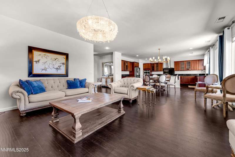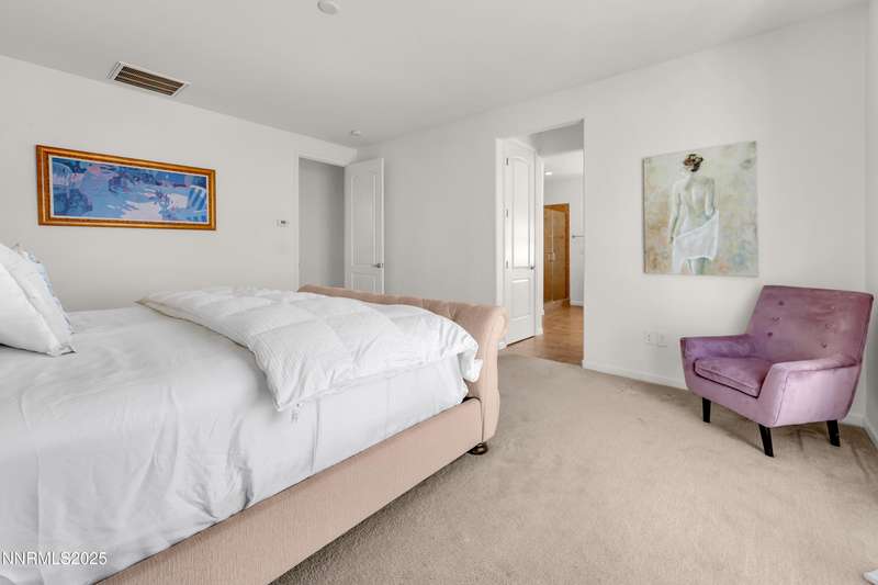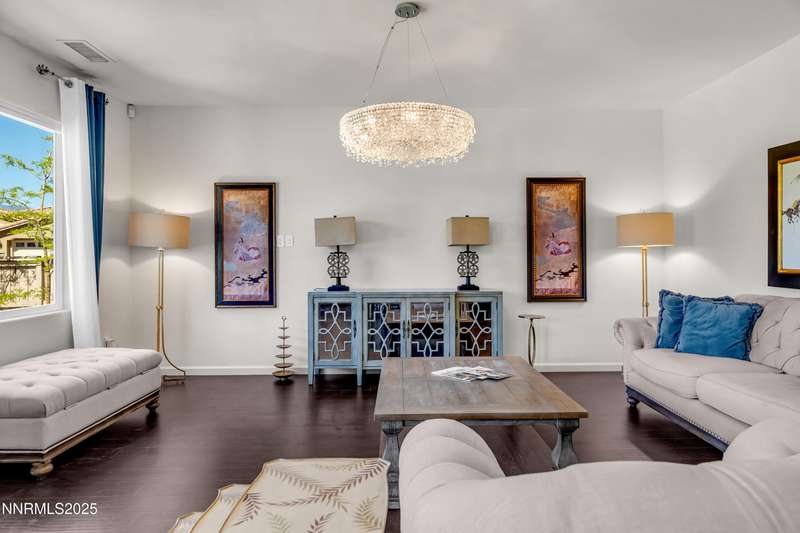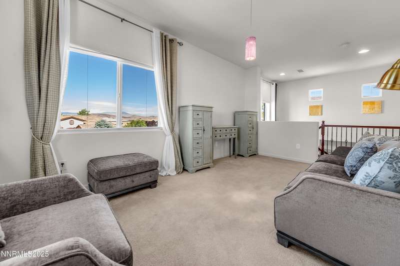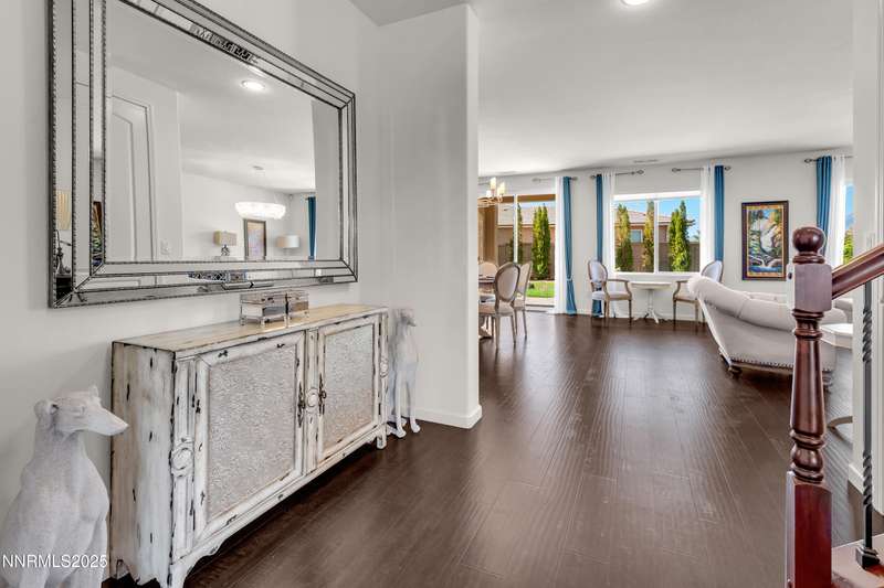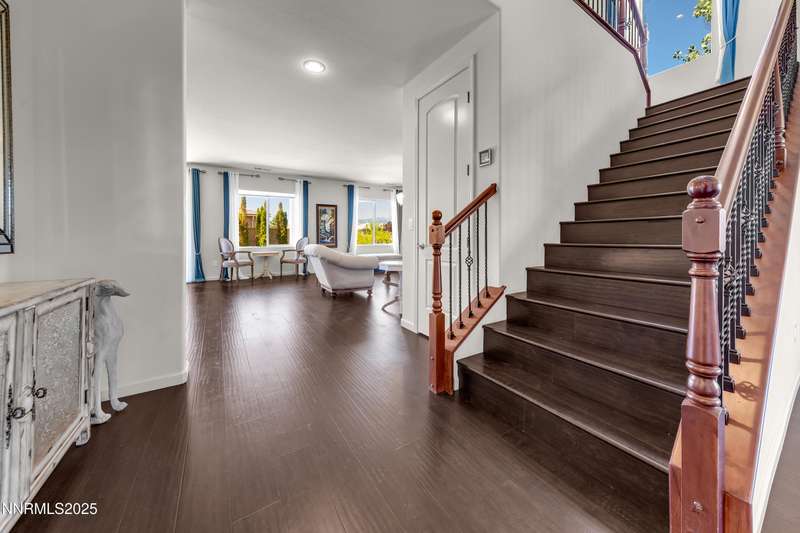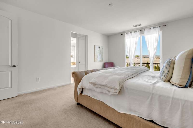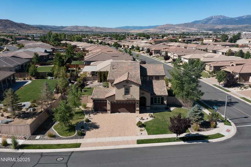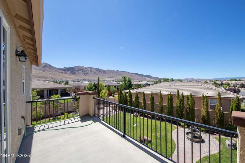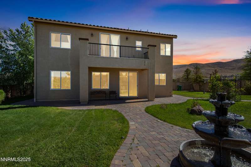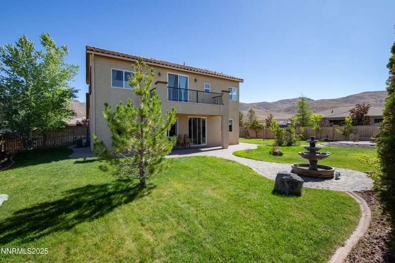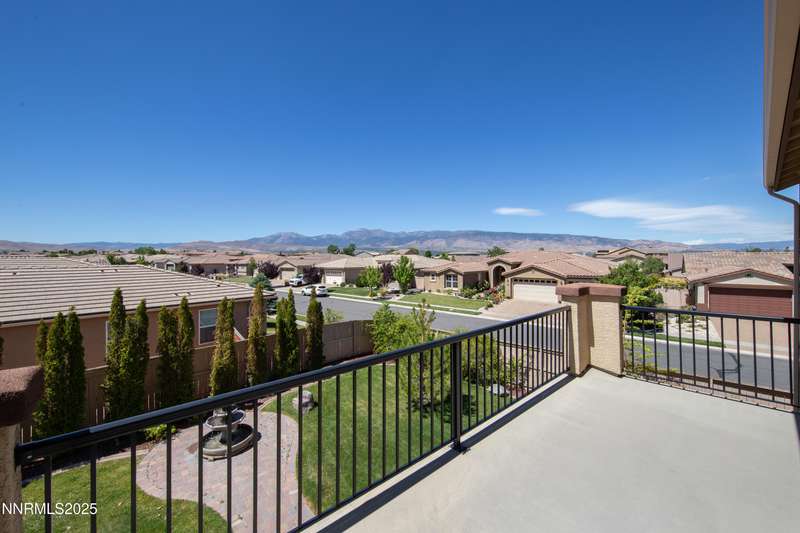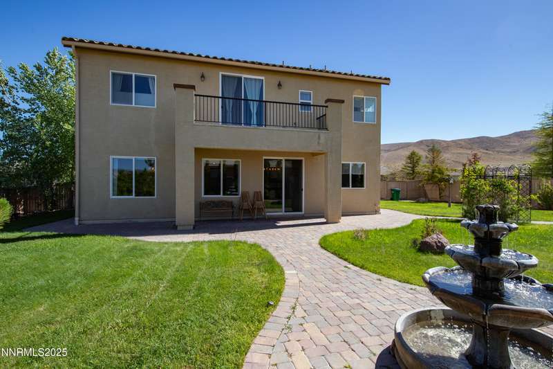 Welcome to this exceptional gated community with security nestled in Saddle Ridge —where luxury, lifestyle, and location converge. This thoughtfully designed home boasts a flowing open floor plan that seamlessly connects elegant living spaces, making it ideal for both daily living and entertaining. From the moment you step inside, you'll be impressed by the beautiful hardwood flooring that adds warmth and sophistication throughout. Natural light pours through expansive windows, highlighting the home's clean lines and refined finishes. At the heart of the home is a your dream kitchen, centered around a large, stunning island that serves as both a functional workspace and a natural gathering spot. Perfect for casual breakfasts, culinary creations, or evening entertaining, this expansive island is complemented by stainless steel appliances, abundant cabinetry, and generous counter space. Whether you're preparing a weekday meal or hosting a dinner party, this kitchen is designed to impress. Retreat to the oversized primary suite—a peaceful sanctuary featuring a private balcony, spa-inspired bathroom with dual vanities, a tile-surround walk-in shower, a luxurious garden tub, and a spacious walk-in closet. Enjoy seamless indoor-outdoor living with a fully landscaped backyard featuring a custom paver patio, tranquil water feature, gas-plumbed fireplace, and BBQ hookups—perfect for relaxing or entertaining under the stars. As a resident of Saddle Ridge, you'll enjoy exclusive access to resort-style amenities including a sparkling pool, clubhouse, tennis and pickleball courts, playgrounds, scenic walking trails, and a manned security gate for added peace of mind. All of this is just minutes from top-rated schools, world-class hiking and biking trails, Mt. Rose Ski Resort, and the breathtaking beauty of Lake Tahoe. This home truly offers the best of both elegance and an active lifestyle. Don't miss your chance to experience it for yourself—schedule your private showing today.