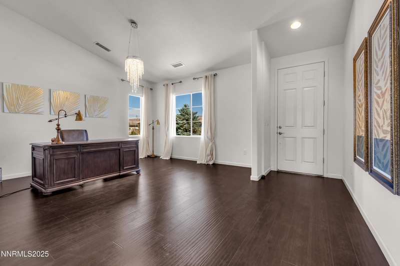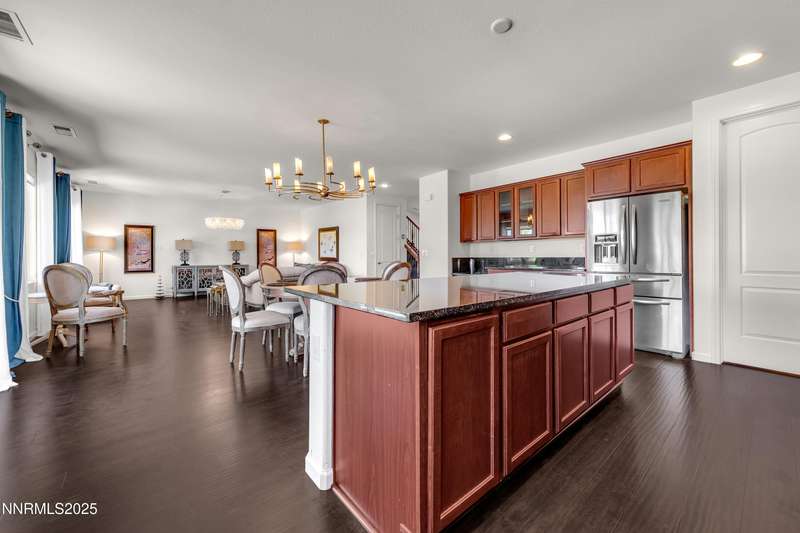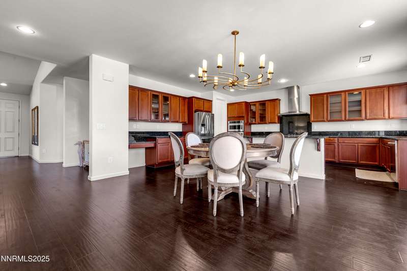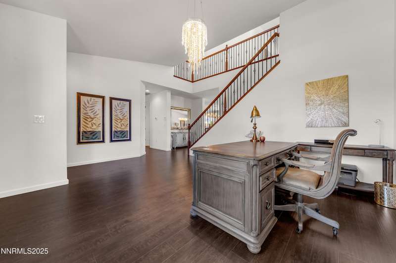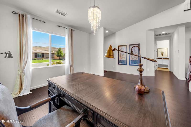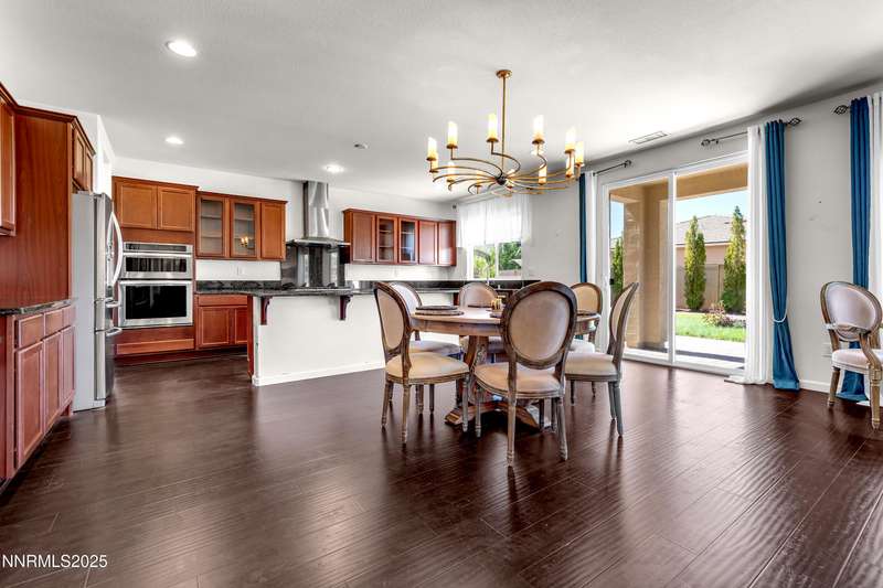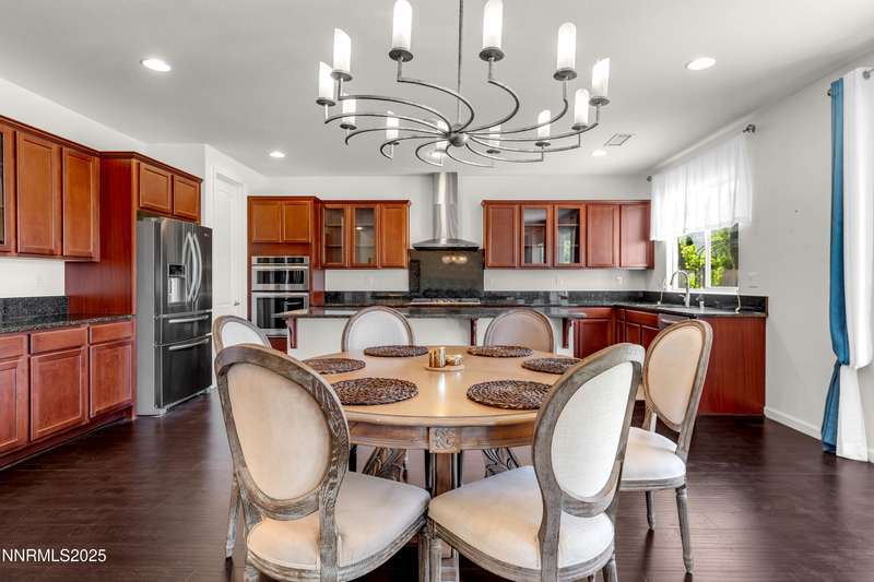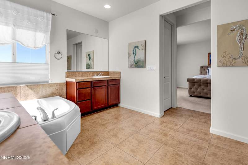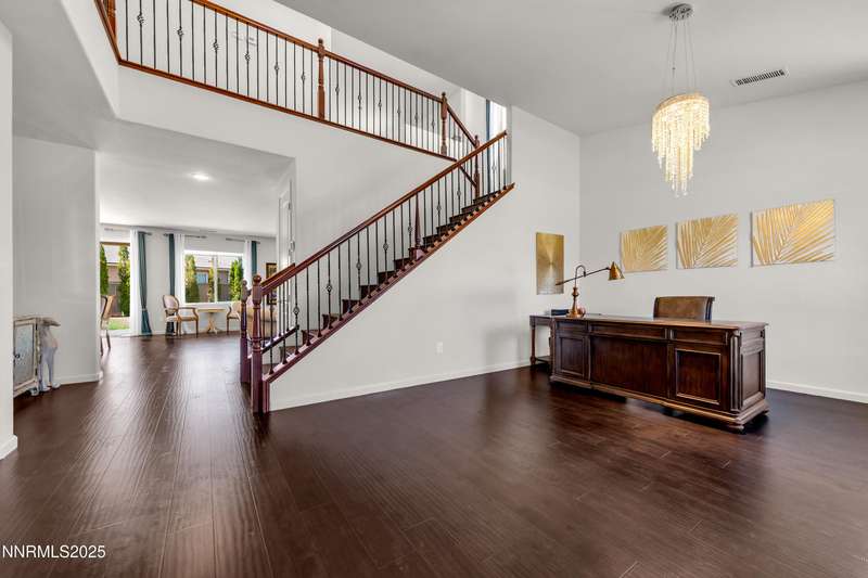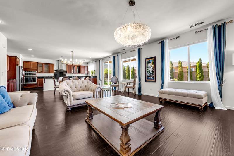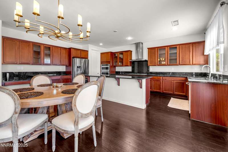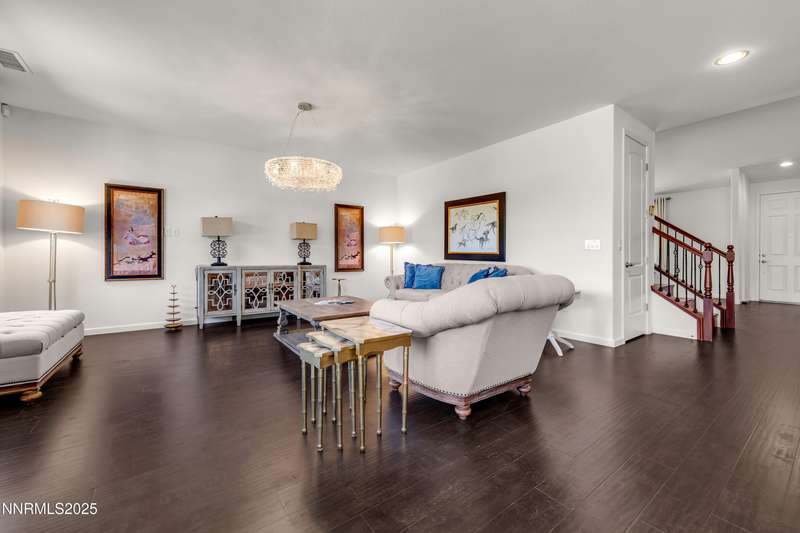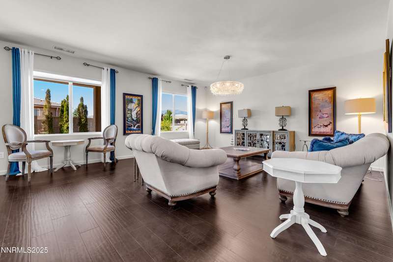 Welcome to this exceptional gated community with security nestled in Saddle Ridge —where luxury, lifestyle, and location converge. This thoughtfully designed home boasts a flowing open floor plan that seamlessly connects elegant living spaces, making it ideal for both daily living and entertaining. From the moment you step inside, you'll be impressed by the beautiful hardwood flooring that adds warmth and sophistication throughout. Natural light pours through expansive windows, highlighting the home's clean lines and refined finishes. At the heart of the home is a your dream kitchen, centered around a large, stunning island that serves as both a functional workspace and a natural gathering spot. Perfect for casual breakfasts, culinary creations, or evening entertaining, this expansive island is complemented by stainless steel appliances, abundant cabinetry, and generous counter space. Whether you're preparing a weekday meal or hosting a dinner party, this kitchen is designed to impress. Retreat to the oversized primary suite—a peaceful sanctuary featuring a private balcony, spa-inspired bathroom with dual vanities, a tile-surround walk-in shower, a luxurious garden tub, and a spacious walk-in closet. Enjoy seamless indoor-outdoor living with a fully landscaped backyard featuring a custom paver patio, tranquil water feature, gas-plumbed fireplace, and BBQ hookups—perfect for relaxing or entertaining under the stars. As a resident of Saddle Ridge, you'll enjoy exclusive access to resort-style amenities including a sparkling pool, clubhouse, tennis and pickleball courts, playgrounds, scenic walking trails, and a manned security gate for added peace of mind. All of this is just minutes from top-rated schools, world-class hiking and biking trails, Mt. Rose Ski Resort, and the breathtaking beauty of Lake Tahoe. This home truly offers the best of both elegance and an active lifestyle. Don't miss your chance to experience it for yourself—schedule your private showing today.