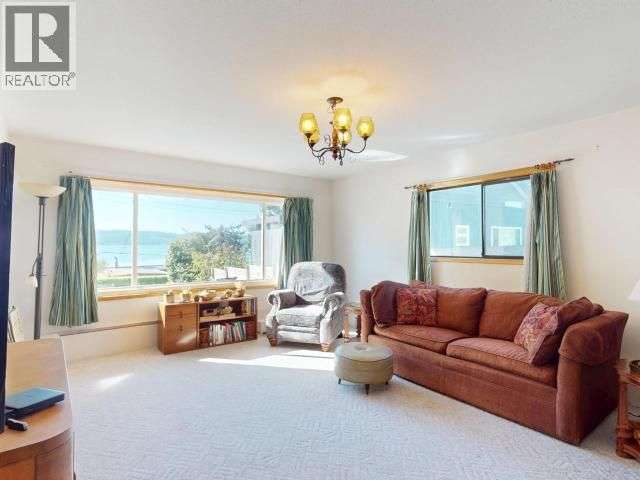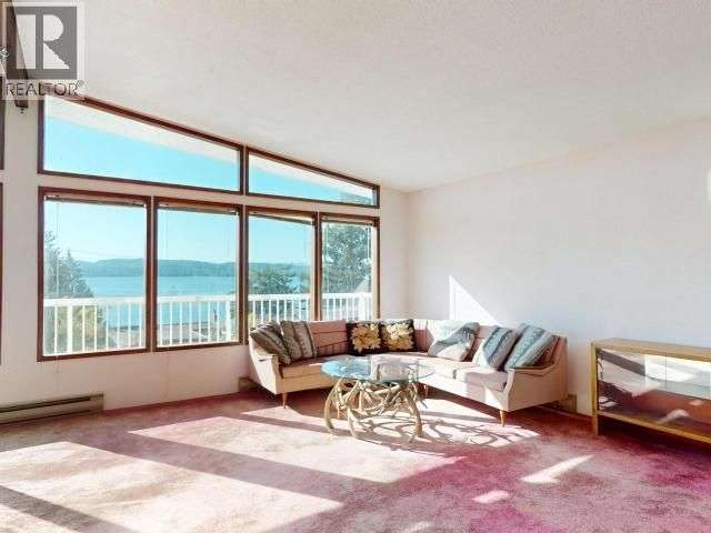 PANORAMIC OCEAN VIEWS - Discover coastal living at its finest in this spacious 5-bedroom, 3-bathroom home located in the highly sought-after Grief Point neighbourhood. Situated just a stone's throw from the beach, this two-storey, level entry home includes a 2-bedroom suite on the lower level, perfect for extended family or rental income. Upstairs, you'll find vaulted ceilings in the open concept living and dining area that takes full advantage of the sweeping ocean views. There's 3 additional bedrooms, 2 bathrooms and a spacious family room with access to the front balcony. Outside you have a convenient circular driveway, oversized carport, and covered patio area in the rear. Ideally situated close to the beach, grocer, restaurants, marina, and more, this home offers a ton of potential. With a few modern updates, you can truly make this coastal gem your own--plus enjoy the benefit of a built-in mortgage helper. Don't miss this rare opportunity--call today for full details! (id:2493)