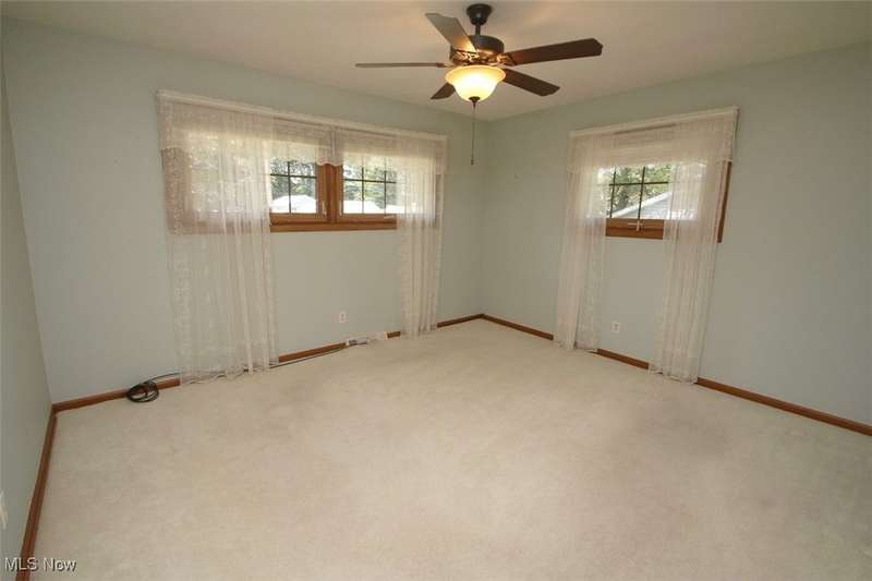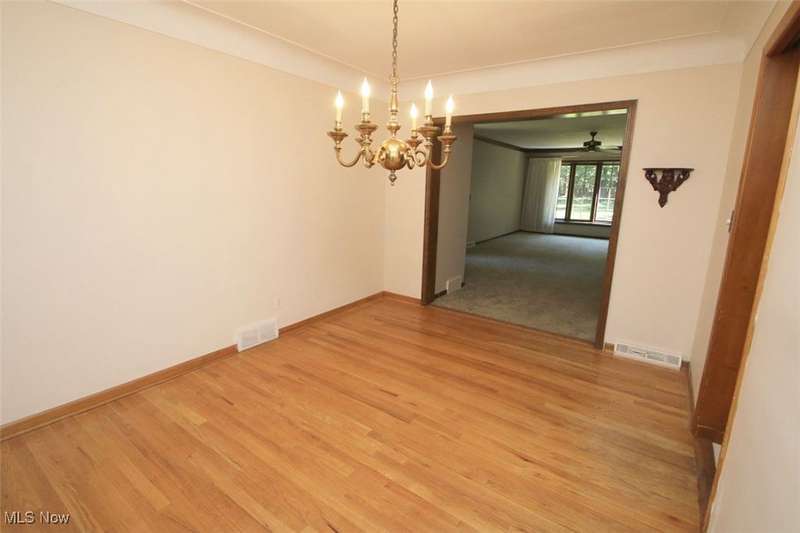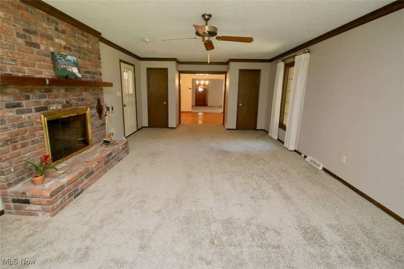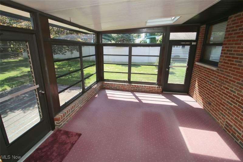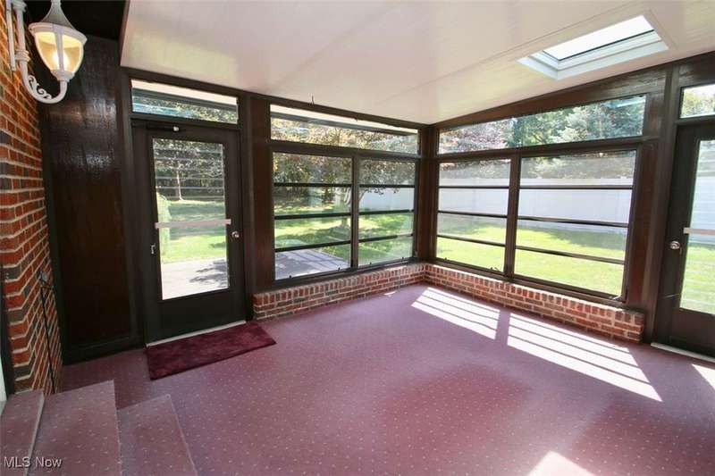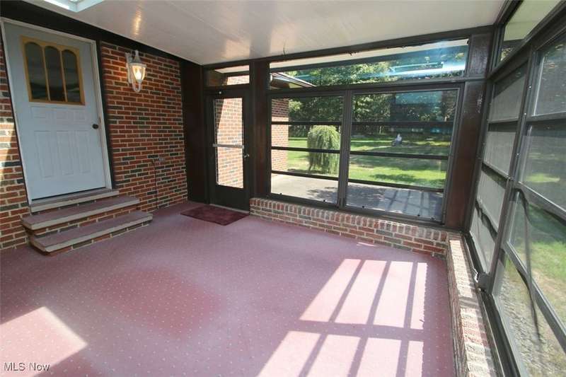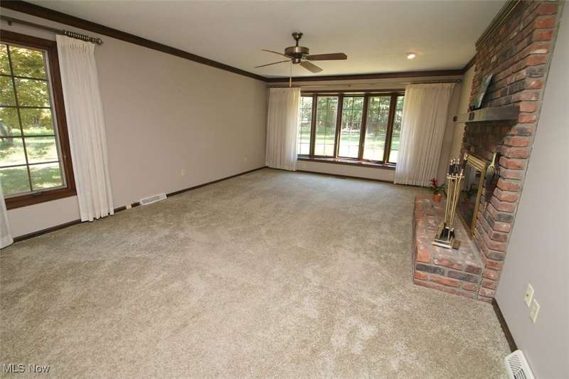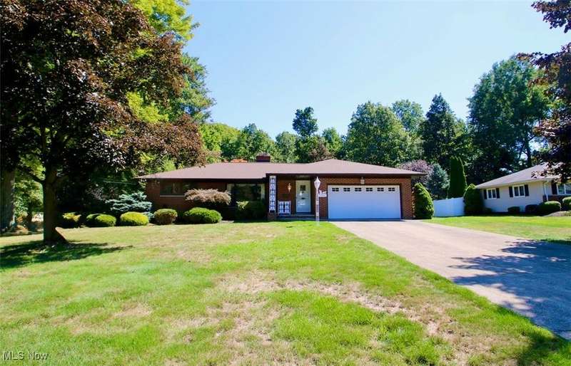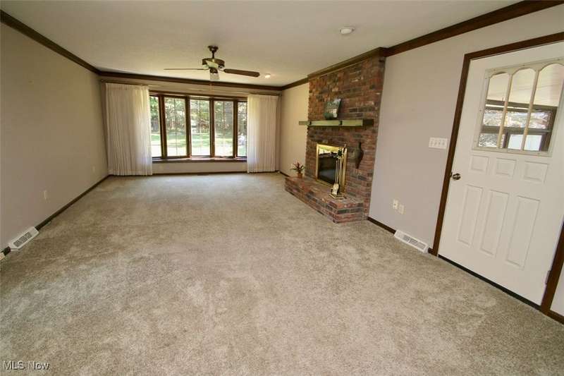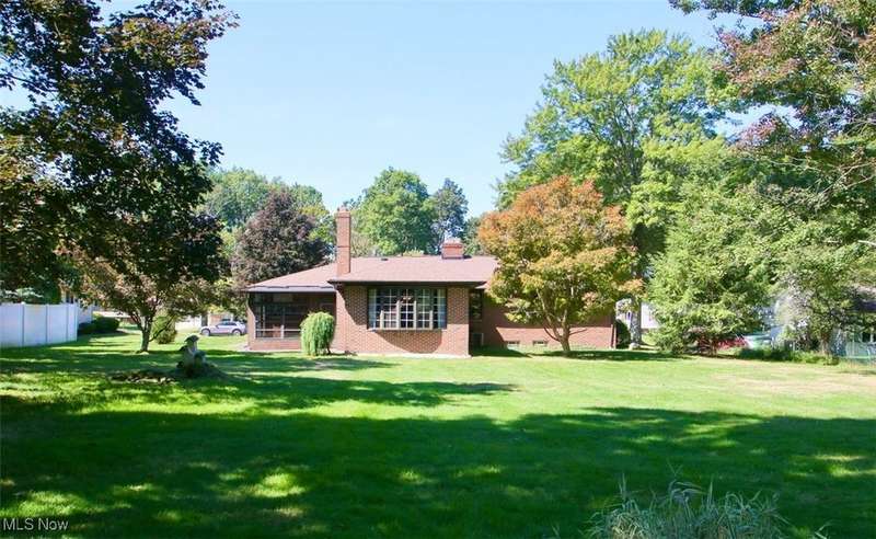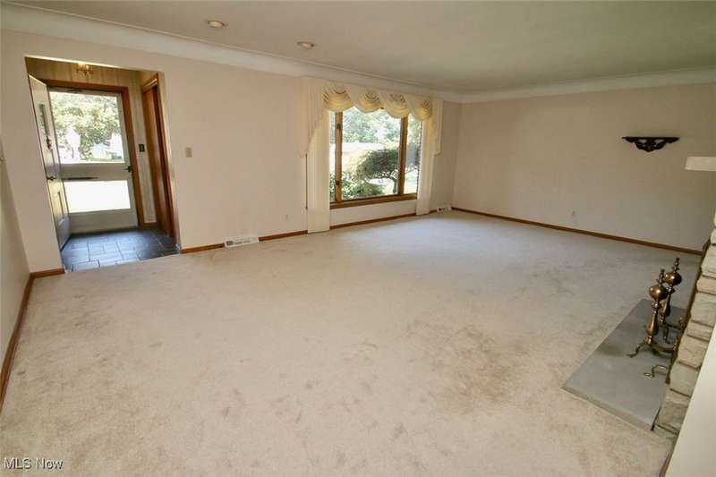 Welcome to this beautifully maintained all-brick ranch situated on 2 acres in Highland Heights. This charming home offers three bedrooms and two full bathrooms on the main floor. When you enter through the front door, you're greeted by a welcoming foyer with slate tile flooring and a coat closet, setting the tone for the home's thoughtful layout. From there, step into the spacious front living room with a picture window and wood-burning fireplace. An expansive 22 x 14 family room addition featuring a large bay window and fireplace, provides the perfect gathering space and opens to a bright three-season room overlooking the tranquil backyard. Entertain in style in the dining room which features wood flooring, or enjoy casual meals in the eat-in kitchen, featuring Corian countertops, a tile backsplash, all appliances (including a newer wall oven installed in 2023), and plenty of cabinet space. The living room and bedrooms are currently carpeted, but original hardwood floors lie beneath, ready to be revealed for those who prefer natural wood. The partially finished basement extends the living space with a 35-foot-long recreation room, complete with a wood-burning fireplace and glass block windows. The unfinished side offers a laundry area with washer and dryer included, an extra toilet and shower, a storage room, and mechanicals including the hot water tank (new in 2021) and furnace. Outdoors, you'll find a peaceful wooded lot, which includes a second parcel directly behind the home for added privacy and enjoyment. A patio off the three-season room makes the perfect spot to take in the serene surroundings. Additional features include a brand-new main and sub electric panels (August 2025) and an oversized two-car garage with Nature Stone flooring and plenty of storage space. A roof replacement in 2013 provides added peace of mind. This well-kept ranch combines classic charm, thoughtful updates, and a rare large lot in one of Highland Heights' most desirable settings.