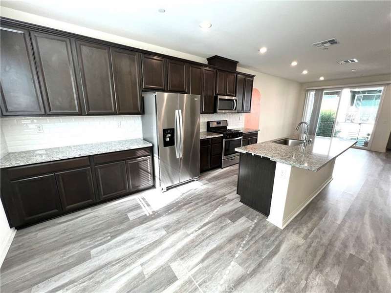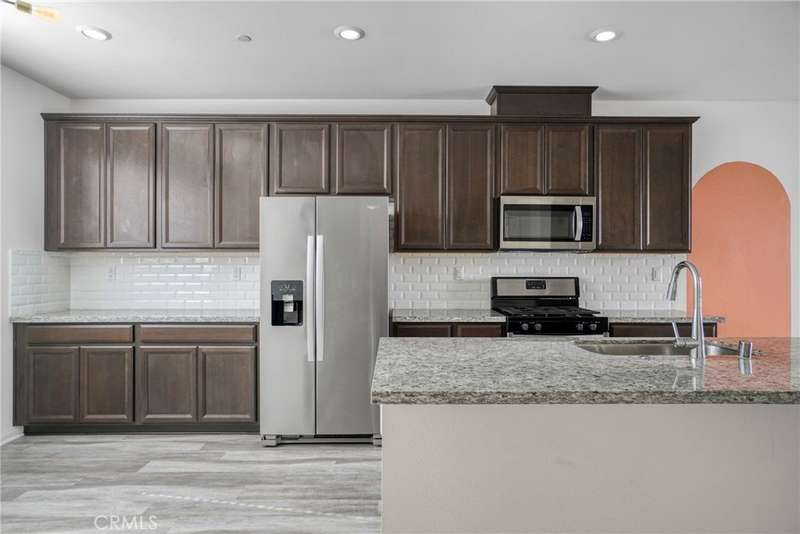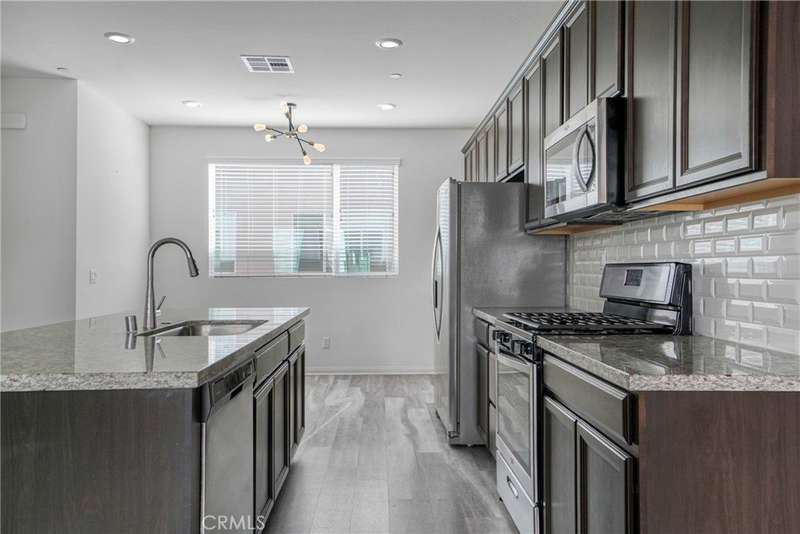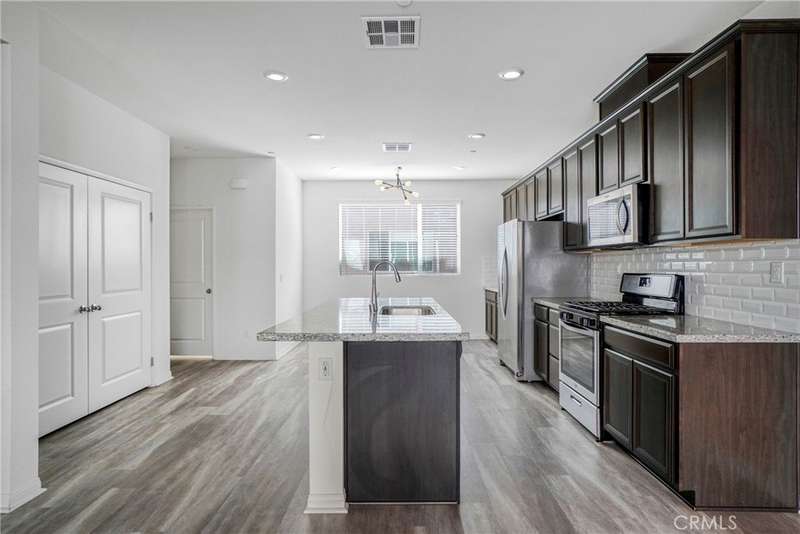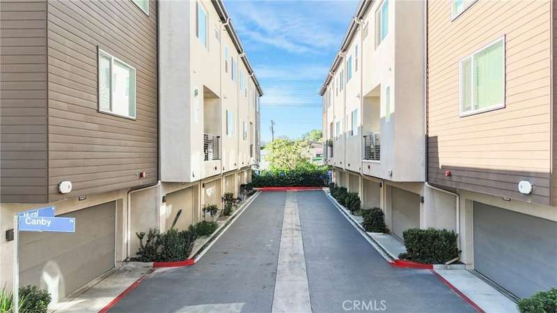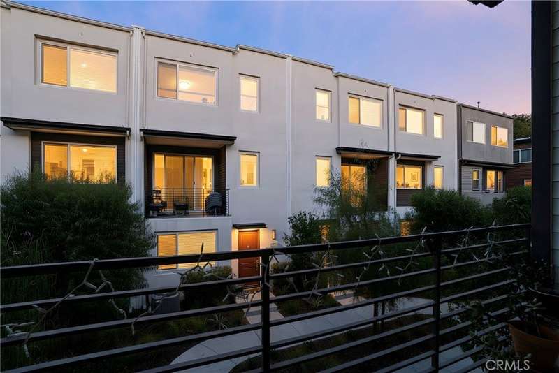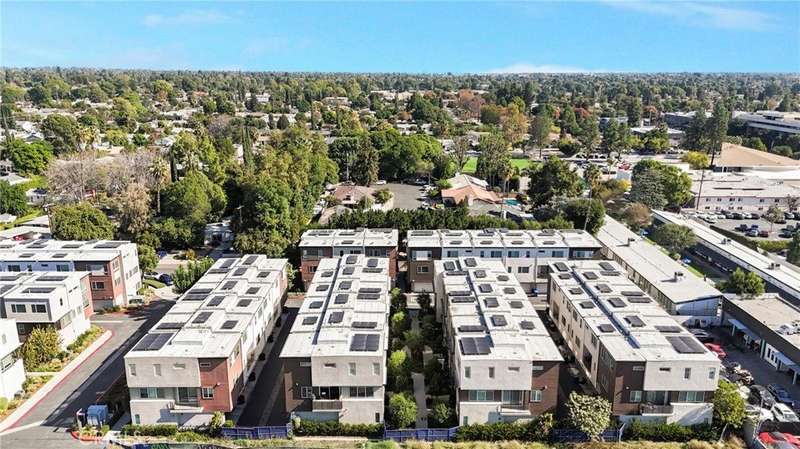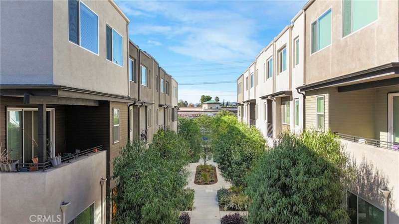Modern Northridge Single Family Residence in Mosaic Community Built by Meritage homes in 2020, this stylish 3-bedroom, 3.5-bath tri-level home offers 1,657 sq.ft. of beautifully designed living space in a desirable planned unit development in Northridge. The lower level features a private bedroom and full bath — perfect for guests, a home office, or multi-generational living. On the main level, enjoy an open-concept layout with a stunning granite kitchen, rich mocha cabinets, and stainless steel appliances including a refrigerator, dishwasher, microwave, and freestanding oven. The oversized granite island with USB ports provides additional seating and prep space, while recessed lighting and high ceilings create a bright, modern feel. A convenient half bath for guests and a private balcony complete this level — ideal for entertaining or relaxing. The third level offers two ensuite bedrooms. The primary suite includes a luxurious bath with dual sinks, while the secondary bedroom features its own private full bath. Energy-efficient features include owned solar panels, dual-pane windows, a smart 3-zone AC controller, and a tankless water heater — keeping comfort high and utility costs low. Additional highlights include laminate flooring throughout, keyless front entry, a Bluetooth-enabled garage door opener, and an attached two-car garage with direct access. Located in the heart of Northridge, this home sits in the middle of the community with a peaceful greenbelt view, just steps from public transportation and close to Cal State Northridge, Northridge Mall, restaurants, and shopping. Experience modern living, comfort, and convenience all in one place — welcome home! Low monthly HOA fees of $104