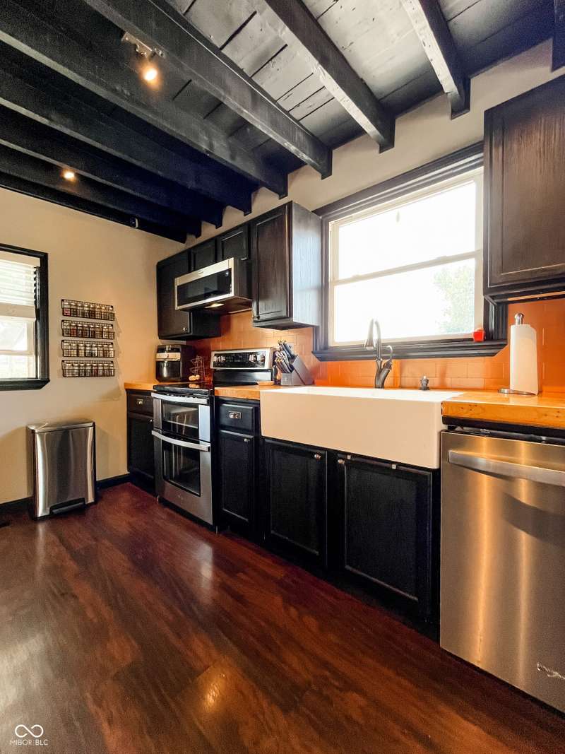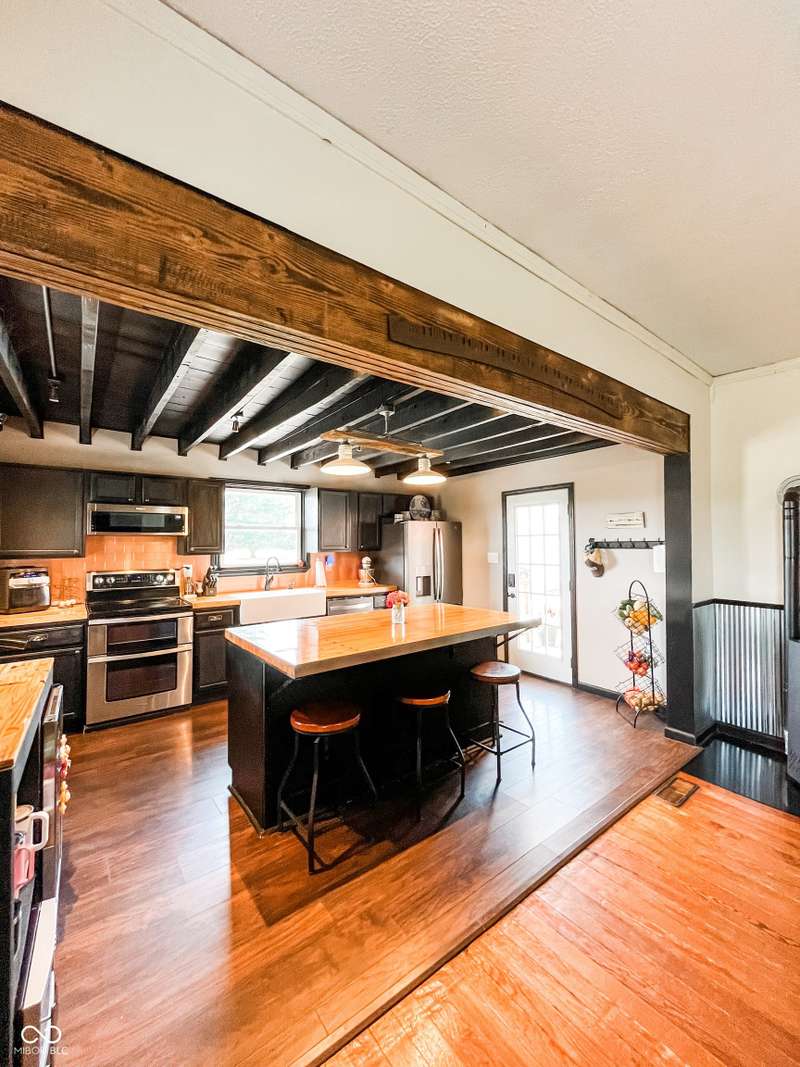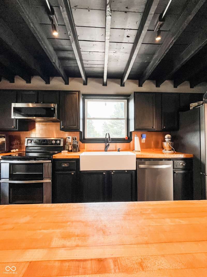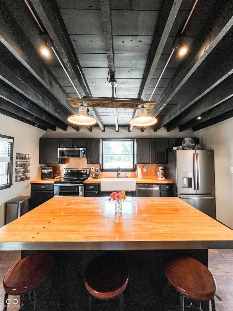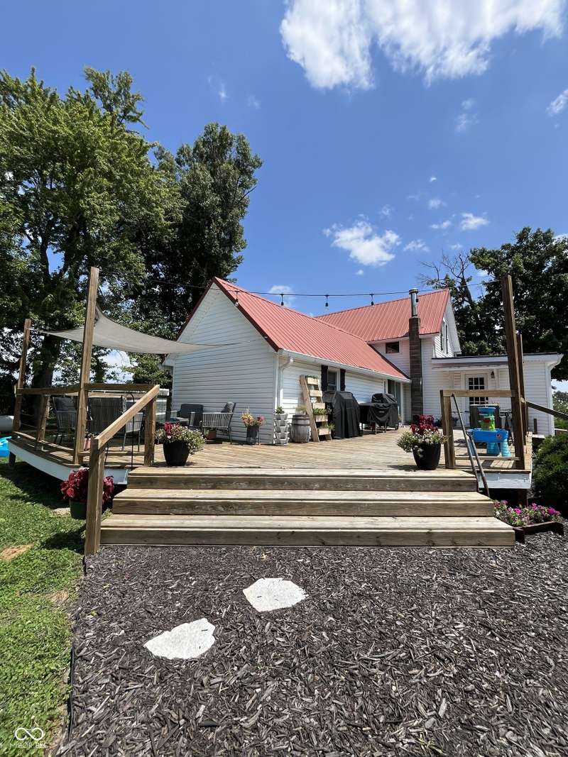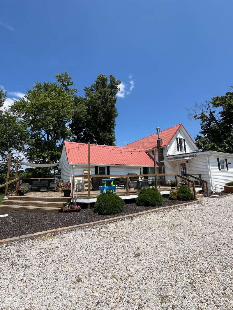 Find the perfect blend of country charm and modern updates in this farmhouse, situated on a beautiful half-acre lot. This one-of-a-kind home is 1700 sqft and features three bedrooms and a spectacular custom bathroom. The heart of the home is the custom-designed kitchen, complete with newer flooring, a large center island with a breakfast bar, and unique, handcrafted countertops. It flows seamlessly into the dining area, anchored by a cozy pellet fireplace. Relax and entertain in the spacious living room with its impressive 9-foot ceilings. The custom bathroom is a showstopper, boasting a large double vanity and a beautifully tiled shower. A separate laundry room adds to the home's convenience. Outside, the large deck is ideal for entertaining and overlooks a firepit, perfect for enjoying summer nights. The property also includes a detached garage with a dedicated storage area. Major updates provide complete peace of mind, including a new septic system, siding, and gutters (2019), plus a new well pump and pressure tank (2021) and a new HVAC system (2023). This meticulously updated retreat is move-in ready!