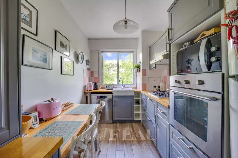 In an elegant, well-maintained stone residence with elevator and parking, a 111 m² Carrez apartment on the 2nd floor. The apartment comprises a large entrance hall leading to a parental space comprising a bedroom and an adjoining shower room (former studio that could be made independent). The hallway leads to a fully fitted and equipped kitchen, as well as a magnificent 37 m² living room opening onto two balconies, with an unobstructed view of the Lycée Hoche's main courtyard. The night area features two bedrooms, one with an en suite shower room, a separate bathroom and a toilet. The apartment is bright thanks to its North/South exposure, and each room has a balcony. A basement parking space, accessible by elevator, and a cellar complete this property. Guest parking spaces are also available outside. Ideally located just 5 minutes' walk from the center of Versailles, public transport and all amenities, this apartment is also sectorized Hoche.