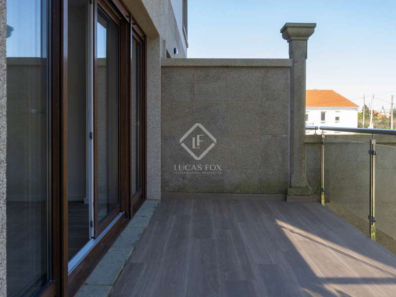 This deceptively large new build property is of high quality, and is located five minutes from the stunning La Lanzada beach. With nearly 330 m² over four floors, private pool and a garage with space for three cars, these homes offer the buyer fantastic value-for-money in a very sought-after area. With views from the upstairs glass-covered terrace that span the ocean and the estuary, these properties offer their new owners a privileged position. Ten minutes from Sanxenxo and within half an hour of the provincial capital Pontevedra, the development is well located, with the ocean in sight and a main highway nearby that links up with the motorway and the rest of Galicia. The property is finished in half-white, half-stone and modern charcoal grey windows and doors featuring the most up-to-date temperature and noise insulation. The ground floor layout features kitchen, lounge/diner and a spare room that can be used as a bedroom, office or other uses, plus a bathroom with shower. The plan on the ground floor can be altered to suit the buyer, with possibilities of opening the rooms to create one larger space, if preferred. Finishes are of a high quality, with external carpentry in carbon grey, wood-style flooring, bathrooms with the latest styles, and a variety of heating options available. There is plenty of natural light, with a tall window next to the stairs, and large patio doors at the rear. On the first floor there are thee bedrooms, one of which is a spacious suite with walk-in-wardrobe and bathroom. There is also a shared bathroom on this floor. Going up again to the second floor, there is another bedroom with attic window, from which we can see the ocean and beaches down below. Back down the stairs and all the way down to the basement level, there is a utility room, machine room and a garage with powered door and space for three cars. Outside, there is a garden to the front, and a pedestrian path which leads all the way down to the Lanzada beach, making it easy for families to avoid the problem of parking in the height of summer. But nine months of the year, the shores on this coast can be enjoyed without the crowds, since they are mostly exploited by only locals apart from in July and August. This surprisingly spacious property offers fantastic value-for-money and would suit a family looking to live by the coast, within easy reach of the city of Pontevedra, or as a second home near to beautiful beaches. It would also be interesting to investors looking for good rental yield in an area with high demand and little high-quality offer for long-term rentals. Please contact us for further information.