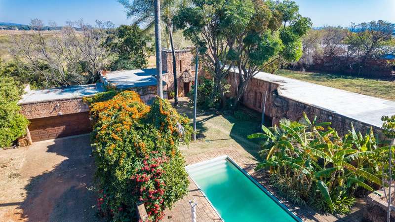 EXCLUSIVE MANDATE 4ha Established Smallholding for sale (Lifestyle and small scale farming combination) Nestled just over 1km off the R104, 2km from Damdoryn Shopping Centre and Chameleon Village in Hartbeespoort, lies this European styled, character filled Smallholding with mountain views and lots to offer! Set on 4ha of arable level land, with access to the Hartbeespoort Irrigation Scheme if required, this +- 250 sqm homestead oozes style, space and functionality. The main house, 1 bedroom chalet and 2 bedroom servants quarters are set on nearly 1 hectare of level land, internally electrically fenced with alarm, beams and burglar bars. Entrance gate is electrified with remote access. Main house roof has recently been refurbished with a 10 year guarantee. The remaining 3 ha are vacant, ideal for small scale farming or keeping small farm animals. Boundary is game fenced. As you enter the walled entrance to the house, the pool and entertainment area on the right hand side give off a relaxing atmosphere inviting those warm summer days. The main house consists of 4 to 5 above average bedrooms (2 en suite), with a large master bedroom with his and her basins set in a large bathroom. There are 2 large lounges, separate dining room, spacious kitchen with centre console with the bedrooms all flowing on the right hand side of the house. Upstairs is the 5th bedroom, which could also be an office or indoor entertainment area. 2 bedrooms are carpeted with the rest of the house nicely tiled. Large double garage with automatic doors. This homestead invites extended family living. Close to Shopping centres and schools. The established garden with an irrigation system has stunning Palm trees which creates an idyllic relaxed setting. An equipped borehole with adequate borehole capacity and 2 storage tanks and small holding dam hold abundant water. 3 phase Eskom, excellent security, 50sqm storage room, enclosed area for goats and chickens (thatched roof area for cover) complete this awesome property! Looking for peace and quiet and a well priced property? You've found it! Call now for an appointment to view.