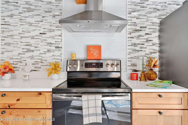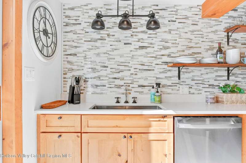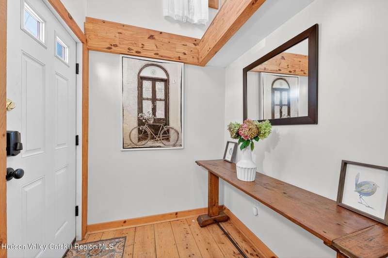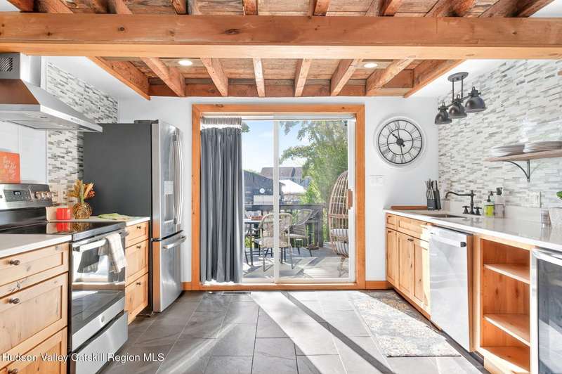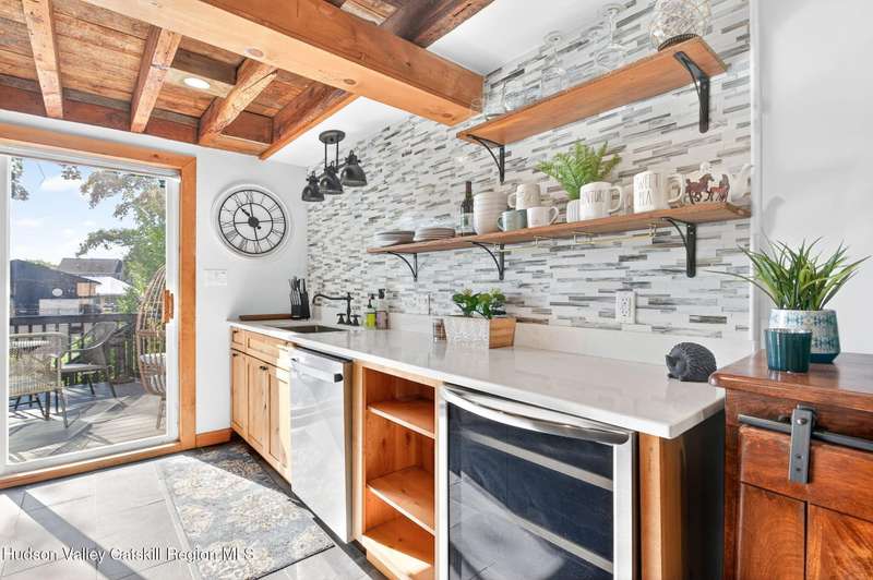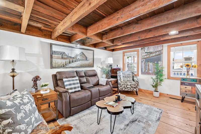 Move Right In! Luxury Turn Key Village Classic in the heart of Saugerties just off Partition Street. Enter a natural light filled sanctuary with vaulted ceilings, original 1800's exposed beams and wide plank floors which blend seamlessly with new high end finishes and stainless steel appliances. The open floor plan lower level, complete with full bath and laundry, opens onto a large rear deck off the kitchen. The upper level offers an ensuite bedroom and an open lofted area currently used as an additional sleeping area and office nook. Fully restored in 2019, improvements included a new roof, brand new zoned mechanicals, a hot water heater and updated electric. Recent improvements include new siding, sealing and painting of the basement, sealing and painting of rear deck, replacement wood frames around doors and windows with new shutters, relocation of natural gas equipment, installation of a backyard fence, new landscaping and fencing to the front of the property with a newly bricked entry. Just 1 block from the shops and restaurants on Main Street and close proximity to HITS and Ski Resorts, this fully furnished charmer is a perfect upstate pied-a-terre or investment property.