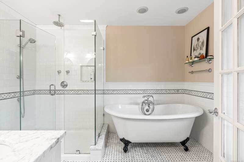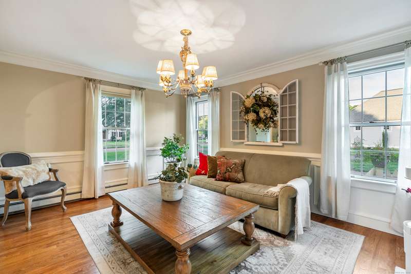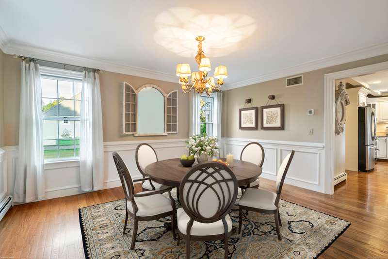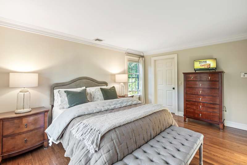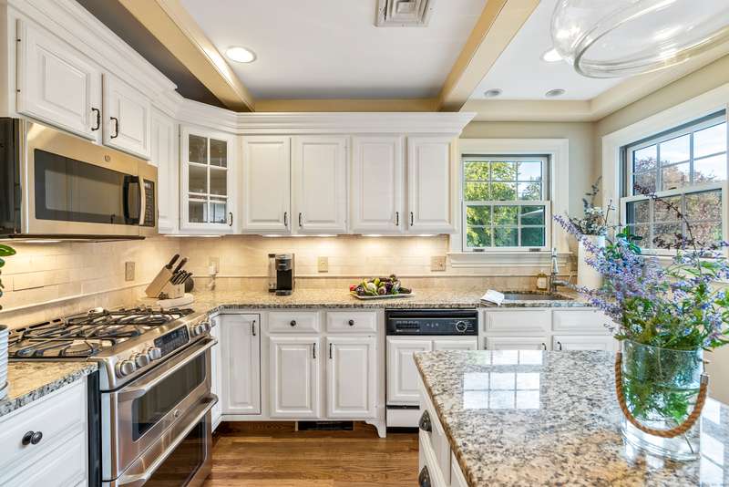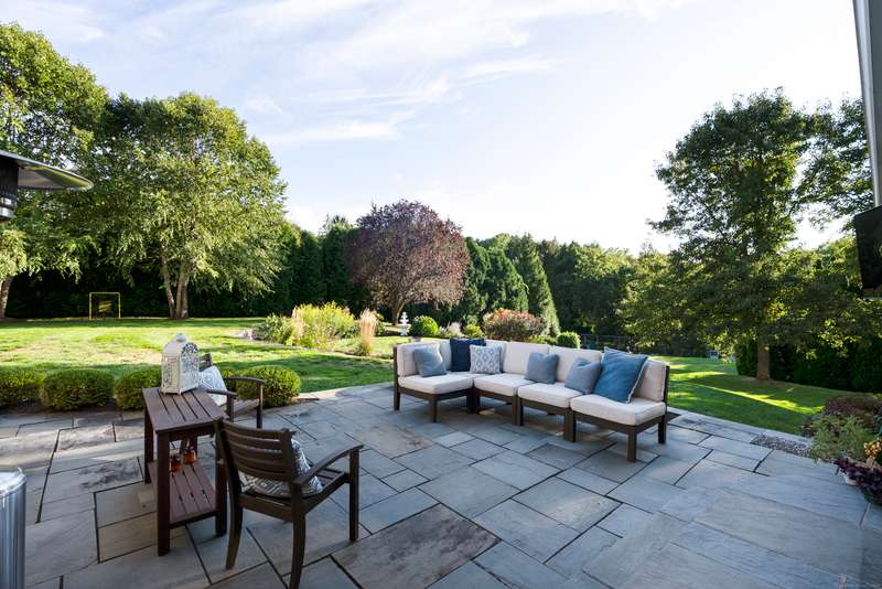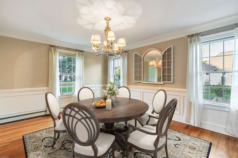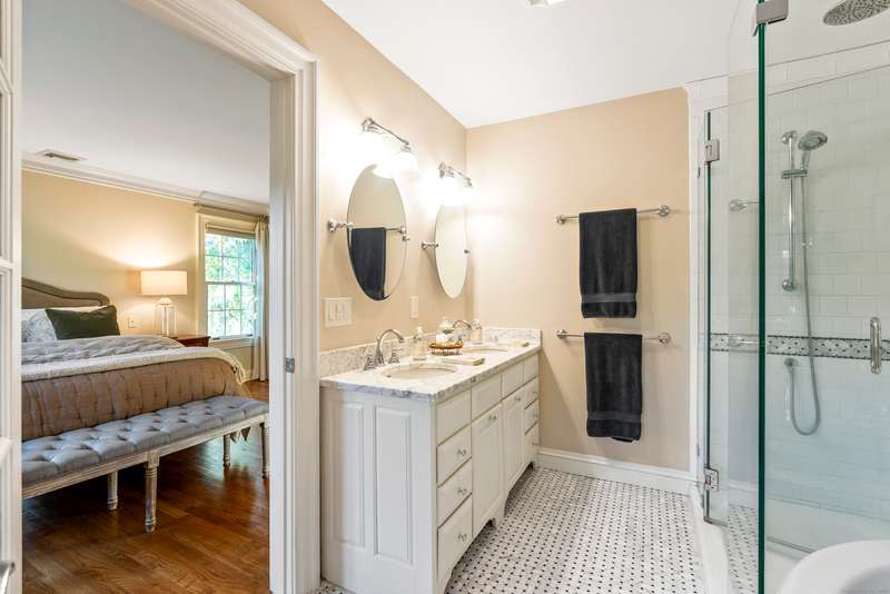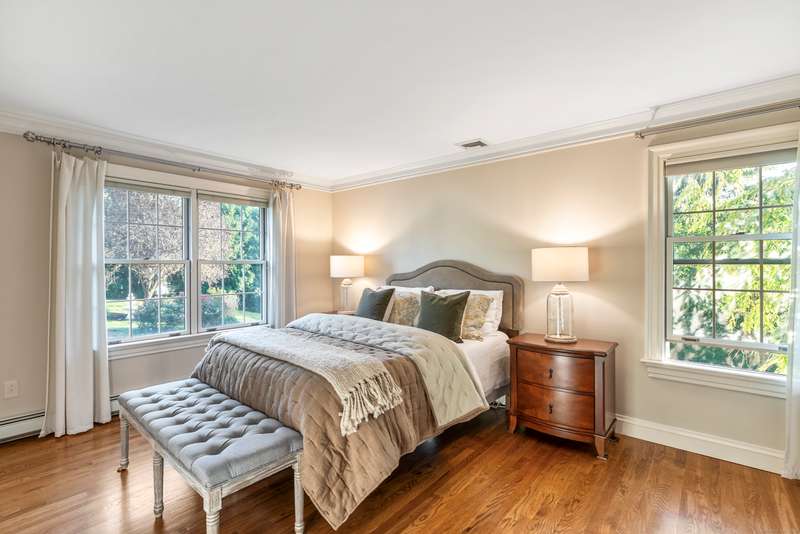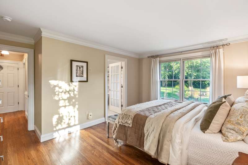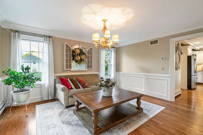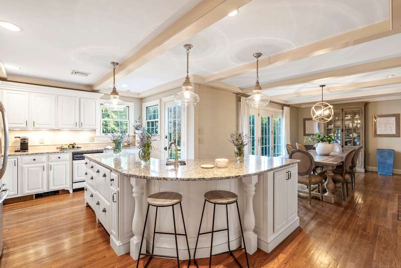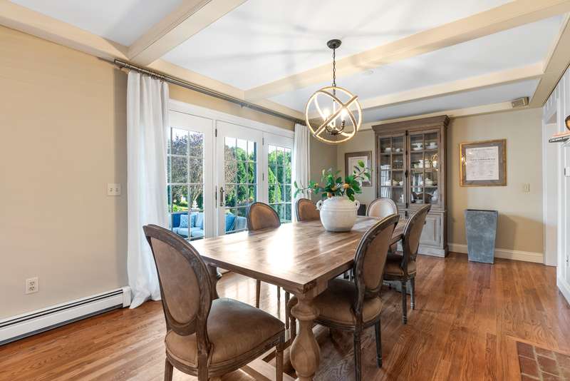 Extensive trim and molding throughout set this stunning custom home apart from any other. Every corner highlight extraordinary trim, detailed architecture, and unmatched craftsmanship. 25 meticulously crafted coffered ceilings, elegant wainscoting, multi-tiered crown molding, arched entryways, and custom inset cabinetry - a level of detail nothing short of phenomenal. Located in the coveted Red Hill neighborhood, homes rarely come on the market. Buyers often reach out to owners to inquire about selling. The home's incredible curb appeal is matched by beautifully landscaped grounds featuring a bluestone patio, outdoor TV, stone walls, fire pit, fountain, vegetable garden, and landscape lighting. Inside, there are three fireplaces that anchor the home's inviting atmosphere, while the custom kitchen offers an oversized island with second sink, two refrigerator drawers, and spacious pantry. Flowing together, the formal living and dining rooms-with a charming wood-burning fireplace-create a