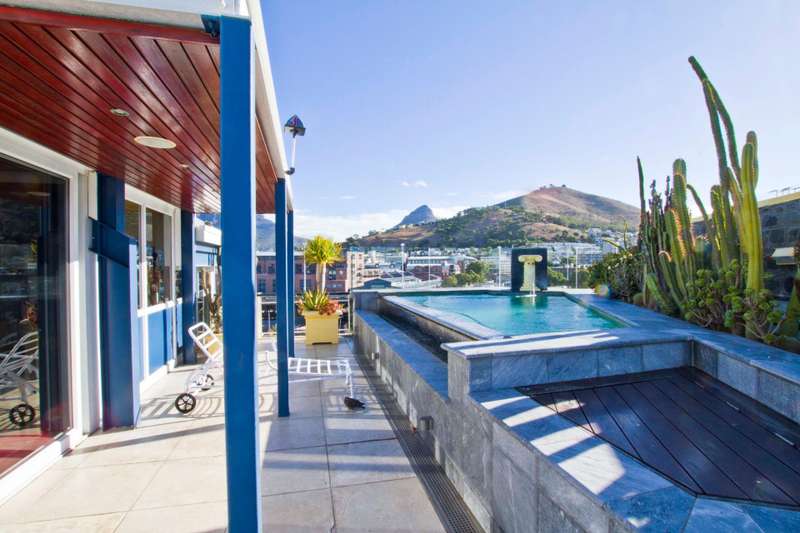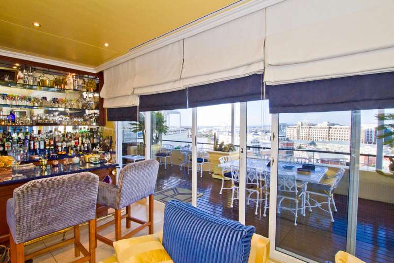 SOLE MANDATE THE FINEST 360?? VIEWS OF TABLE MOUNTAIN, THE MARINA & THE CITY ?Çô A PENTHOUSE MASTERPIECE Step into a world of unparalleled luxury at the Carradale Penthouse, a one-of-a-kind duplex perched above Cape Town?ÇÖs prestigious Marina Waterfront. Boasting breathtaking 360?? views of Table Mountain, Lion?ÇÖs Head, Signal Hill, Devil?ÇÖs Peak, and the vibrant Waterfront precinct, this home offers not only an elite location but a lifestyle without compromise. With direct private lift access, you're welcomed into a lavishly appointed 3-bedroom, 3.5-bathroom residence that masterfully blends Palm Beach flair with Cape Town elegance. Every corner of this penthouse exudes sophistication and thoughtful design ?Çô from its custom handmade finishes to its world-class amenities. INTERIOR FEATURES Spacious double-volume living & dining area with marble floors, built-in fireplace, bespoke recessed ceilings, and custom wainscoting. Gourmet entertainer's kitchen with panoramic views, two skylights, German-imported hanging pot rack, blue Italian marble tops and flooring, 10-burner gas stove, built-in grill and deep fryer, 3 refrigerators, wine cabinet, incinerator, dishwasher, and 2 industrial extract fans. Separate wet bar with hot & cold water, refrigerator, and backlit glass shelving. All bedrooms en-suite with Chinese lacquered wardrobes, underfloor heating, air-conditioning, TV, and bathrooms equipped with hot towel rails and premium fixtures (bidet in the main en-suite). Luxury master suite includes a built-in TV at bed height, brass rain shower, oversized bath, and full-length wall mirror. OUTDOOR & ENTERTAINMENT Two large terraces with Austrian timber ceilings and lighting. Solid steel rim-flow heated pool with granite surround, ozone cleaning system (no chemicals), water fountain, and 4 high-performance pumps. Built-in gas BBQ on East-facing terrace with chimney, perfect for entertaining with city and marina views. Private south-facing terrace with swimming pool and expansive pool deck, all laid in marble and German timber. ADDITIONAL FEATURES Smart HVAC system: Independently controlled heating and cooling in every room. Advanced sound system in all areas, including bathrooms, kitchen, verandas, and pool area. Television in all bedrooms and bathrooms, plus dedicated satellite dish. Comprehensive lighting system indoors and out, including pool illumination and architectural exterior lights. Multiple electricity options with both 110V & 220V sockets throughout. High ceilings and oversized doors throughout the apartment add volume and grandeur. Guest cloakroom with integrated laundry facility. Security: Private, secure entrance on two levels, fire & burglar alarms, direct lift entry, and total privacy. GARAGING & STORAGE 3 secure parking bays located directly next to the lift at the main entrance. Large private storeroom in the basement. Oversized ?Ç£Batbox?Ç¥ overhead storage unit in the garage. Exterior cupboards and abundant built-in storage throughout the penthouse. Beautifully maintained garden with a Table Mountain rock wall and large planters filled with a vibrant selection of plants. A HOME OF DISTINCTION From the Austrian timber finishes to the European-crafted detailing, this penthouse has been designed to delight the senses and provide unmatched comfort. Whether you?ÇÖre entertaining in style, enjoying quiet evenings with mountain views, or relaxing by the heated pool, every moment in this exceptional residence is elevated.