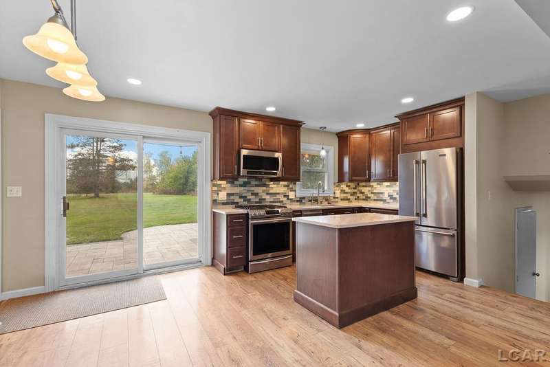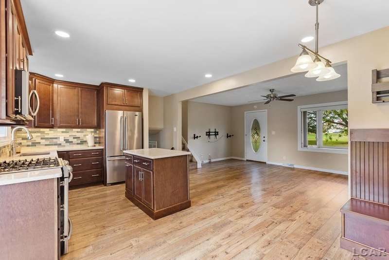 Experience peaceful country living on this beautiful 5.07-acre property with a serene creek running along the back edge. This well-maintained home features an open-concept main floor and a fully updated kitchen (2017) with Merillat cabinets, quartz countertops, and an under the sink reverse osmosis water system. The spacious living room is wired for surround sound, perfect for movie nights or entertaining. Other updates include the full bath, a new roof and an encapsulated crawl space. Outside, the property includes two versatile pole barns?one 24x24 with electric, and the other 16x20, which features both indoor and outdoor dog kennels, a fenced yard, water, electric, and climate control (mini split unit). A true nature lover's dream, this property offers excellent hunting opportunities and is surrounded by thoughtfully updated landscaping with a variety of perennials. This is country living at its finest?don't miss out!