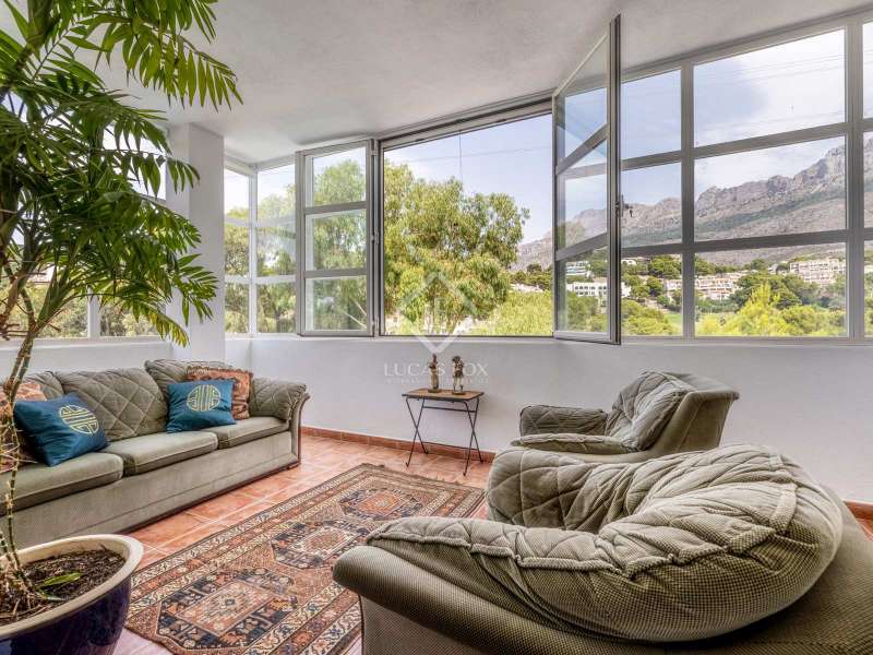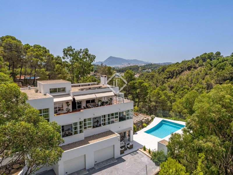 This stunning property completely refurbished recently offers you the unique opportunity to live in a high quality modern house in one of the best areas of the town. The careful design gives rise to large open and bright spaces, allowing for all the rooms to be enjoyed throughout the year, and taking advantage of the abundant natural light and Altea's excellent climate. The light oak wooden floor throughout gives the whole house a unity in design. The open, elegant hallway with views on the Golf course and Sierra de Bernia invites you to discover a spacious living room of around 90 m². You will enjoy the conviviality of this room around a stone fireplace, along with access to a large open terrace also facing the golf course. The designer kitchen is thought out to be aesthetic and very functional and includes a peninsula and equipped with high level standard appliances such as a Smeg range cooker hob and water purification system. In the same open area, you can enjoy the vast dining room area, ideal for entertaining and receiving numerous guests. The open staircase with a wrought iron stylish handrail leads down to the ground floor where you will find 4 bedrooms with their fitted wardrobes and 3 bathrooms. One of them is a very large, spacious main bedroom with a wall of fitted wardrobes. Special care has been taken in the selection of the high quality fixtures and fittings, including Mapini bathroom units. You will appreciate a large covered and glazed terrace in front of all the bedrooms, this area has wonderful views of the Golf Course and Sierra Bernia. Outside there is a beautifully designed low maintenance Mediterranean garden with an automatic sprinkling system. There is a good-sized saltwater pool with preinstalled pipework for heating the pool, all that is needed is a heat pump. The pool is surrounded by a large tiled terrace leading on to a fully equipped summer kitchen which has the possibility to be closed by shutters if needed. This exceptional property is for those who favour a luxury lifestyle both on and off the golf course. An opening gate in the garden leads directly to the driving range. Take advantage of a clubhouse with restaurant and wellness area to enjoy with your family and friends. There is also a spacious garage that holds 2 large sized cars and a large storage area. Every effort has been made to maximize the comfort of this luxury home, including air conditioning and gas central heating throughout. In addition, solar panels have been installed and battery systems in order to minimize energy costs. There are also insect screens, security alarm connected to the police, cable TV and fiber internet. This elegant property offers the comfort of being just a few minutes away from the beaches, two ports where luxury boats are moored, and the palm-lined seafront esplanade, a wonderful place for spending evenings out for a dinner or a drink on one of the many terraces. For more information, please contact Lucas Fox on +34 646 037 026 or via email on altea@lucasfox.es