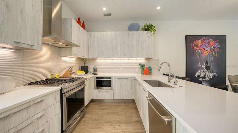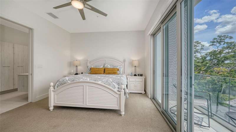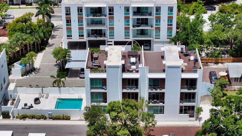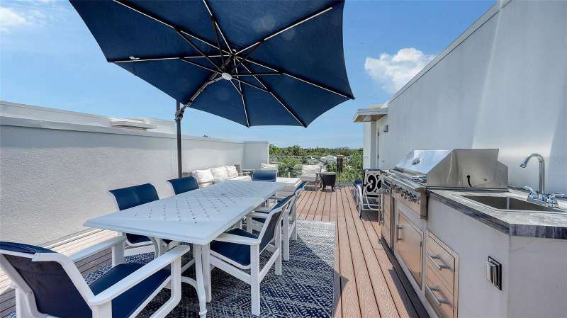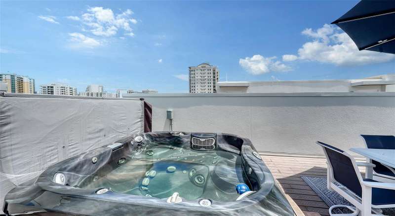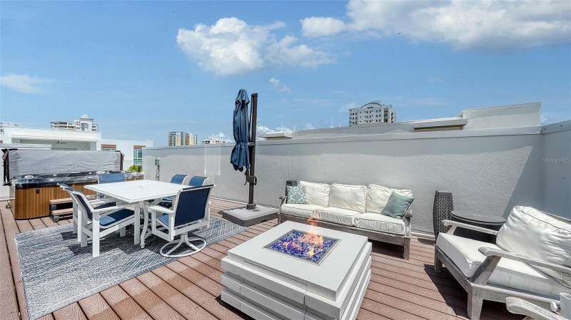 Sophisticated urban living awaits in this refined three-story townhouse with a PRIVATE ELEVATOR and expansive ROOFTOP DECK, located in the exclusive Townhomes of Orange Club in downtown Sarasota. Just steps from the historic Burns Court district and the city’s vibrant Bayfront, this stylish residence offers 2,300 SF of thoughtfully designed living space, including 3 bedrooms each with their own ensuite bathroom. The private rooftop deck is a true sanctuary featuring a jacuzzi hot tub, outdoor kitchen, privacy wall, and 608 SF of additional outdoor living space – perfect for relaxing or entertaining under the stars, all with captivating city views. Designer finishes throughout, soaring 10-ft smooth-finish ceilings, Low-E impact windows and doors, contemporary baseboards and casings all enhance the home’s clean aesthetic. A private two-car garage opens to a welcoming foyer and a guest bedroom with ensuite bath on the first level. The second floor is designed for effortless entertaining, with an open-concept great room, east- and west-facing balconies with frameless glass railings for unobstructed views, powder room, and a gourmet kitchen featuring imported Italian cabinetry, quartz countertops, and Jenn-Air stainless steel appliances, including a six-burner gas range. Upstairs, the third floor hosts a serene primary suite and a spacious second bedroom, both with ensuite baths and private balconies. A laundry closet with full-size washer and dryer adds convenience. Residents of Orange Club enjoy a secure, upscale community with surveillance cameras, a heated pool, and a sun lounge area. Located in the heart of Sarasota, you’re just moments from the city’s best, including a thriving arts and culture scene, award-winning dining, boutiques, nightlife, farmers market, and year-round festivals. This is downtown Sarasota living at its finest.