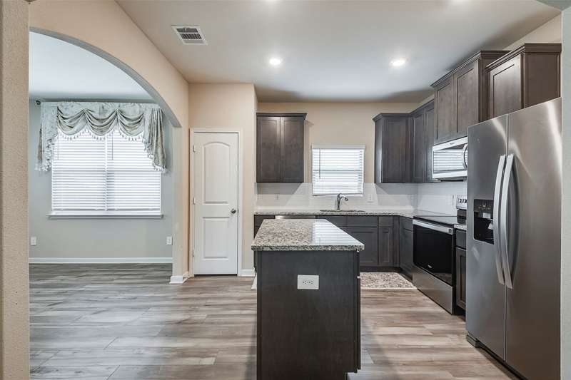 Charming one-story home in Oak Ridge with greenbelt views! Welcome to this beautiful 3-bedroom, 2-bath home located in the family-friendly community of Oak Ridge. This thoughtfully designed one-story home features an open-concept layout with a spacious living area filled with natural light, a split-bedroom floor plan for added privacy, and two-inch faux-wood blinds throughout. The kitchen boasts energy-efficient stainless steel appliances, granite countertops, a center island, and designer wood cabinetryperfect for everyday living and entertaining. The private primary suite includes a large walk-in shower, granite counters, and an oversized walk-in closet. The secondary bedrooms are tucked away and share a generously sized full bath with granite finishes. Step outside to a large backyard featuring a covered patio with peaceful views of the greenbeltno neighbors behind! Located just minutes from major freeways, this home offers both comfort and convenience in a prime location.