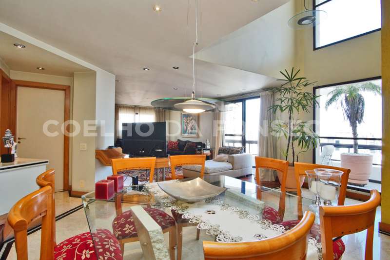 Cobertura no bairro Moema com 288m² área privativa/útil, 2 dormitório(s), 2 suíte(s), 4 vaga(s), 6 banheiro(s), piscina, churrasqueira, escritório, terraço, duplex, ar condicionado, dep. de empregados, reformado (a), pé direito duplo.