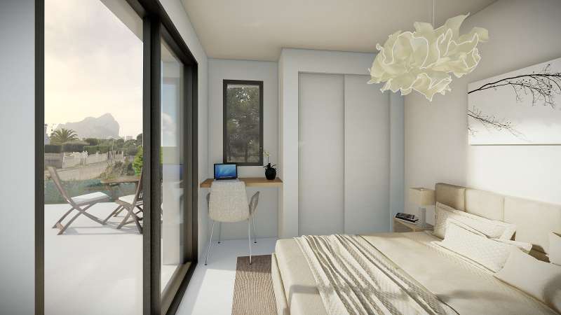 This detached villa sits on a generous 800 m² plot and is distributed over two levels. The ground floor includes a bright living-dining area with panoramic windows framing the iconic Peñón de Ifach, a fully equipped separate kitchen, two bedrooms, one bathroom, and a guest toilet. Upstairs, the master bedroom features an en-suite bathroom and a private terrace—perfect for evening relaxation with scenic views. High-quality finishes include underfloor heating, air conditioning, electric blinds, double glazing, and a home security system. Outdoor highlights include a private swimming pool, sunlit terrace, and a beautifully maintained garden designed for year-round enjoyment.