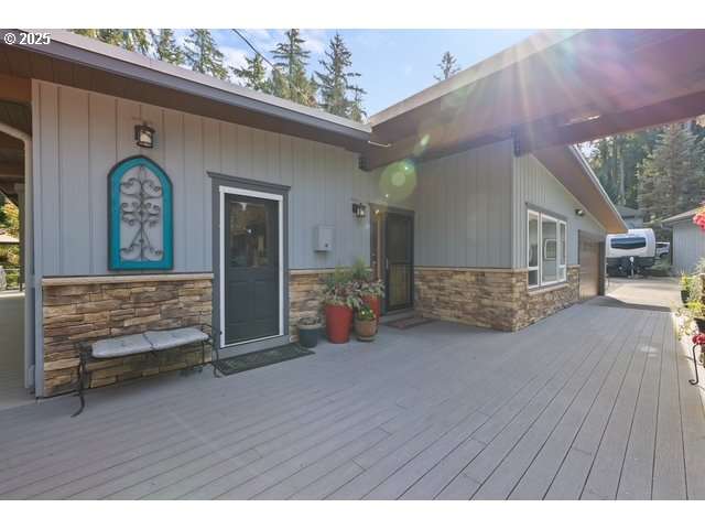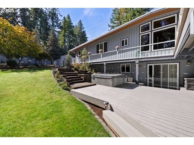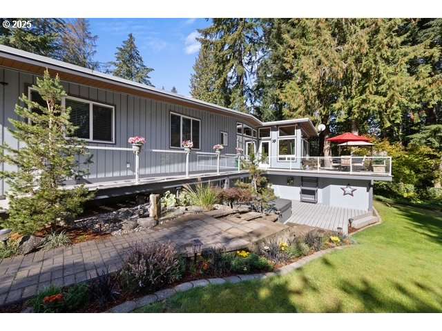 Beautiful MidCentury Modern designed Daylight Ranch offering serene privacy on a fully landscaped 1.09 acres in one of Damascus most desirable neighborhoods on Wildwood DR. Enjoy over 1,400 sq. ft. of low-maintenance decking that overlooks a tranquil landscaped backyard complete w/ a peaceful water feature & built in Hot tub. The backyard is fully fenced w/ a seasonal creek, providing both security & seclusion. Private lower level primary suite w/ massive WI closet, attached bathroom & laundry. A detached shop w/ heated, vaulted game rm (designed for RV garage), & tool building add exceptional functionality for projects, storage, or hobbies plus RV parking. Many modern updates & upgrades include: Safe-room/storage area, cutting edge warrantied HVAC system, roof warranty, steel framing components, security system, tongue & grove soffits. Lower level office possible 4th bedroom.