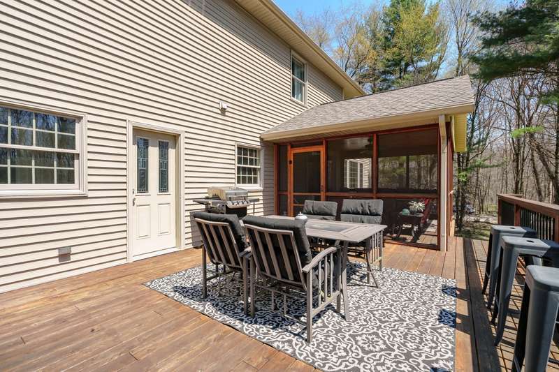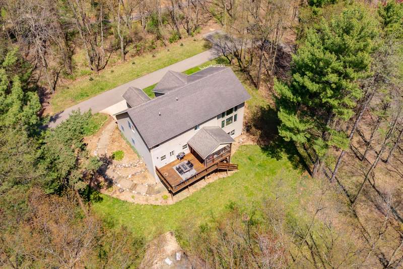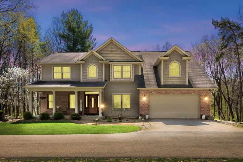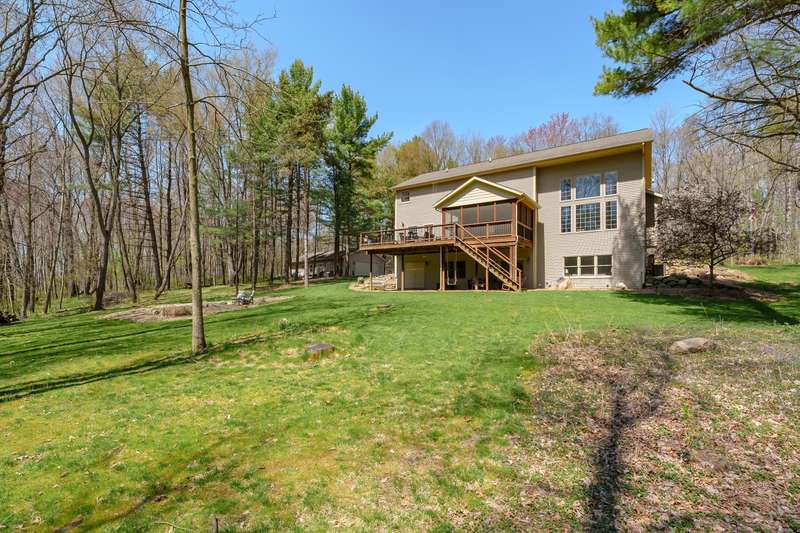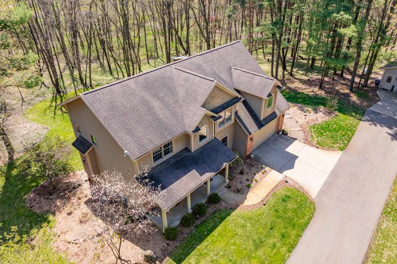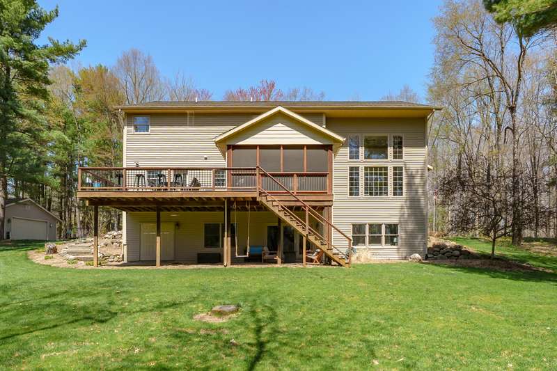 PRICE REDUCED - Enjoy Gull Lake Life in this Beautiful custom built 2x6 frame home with a 28x52 barn & 8+ acres surrounded by privacy, wildlife & nature; it's just 1 Mile to Gull Lake, in sought after GL schools. This 4 BR, 4 Bath executive home impresses with it's custom woodwork & cabinetry, hardwood floors, vaulted LR with gas fireplace and wall of windows making you feel like you live in a treehouse. Master has 2 walk in closets, dual vanity, soaking tub, and shower. Three more lg bedrooms & full bath. Kitchen has granite counters, island with seating, eating area. There is formal DR & a large office/den on main level plus a large main floor laundry. The finished walkout lower level is set up to entertain with full bath and new LVP floors, could easily add bdrm. Efficient forced air and radiant heat, central air. Amazing screened porch & deck off the kitchen is an ideal spot to unwind and watch wildlife Slate stone firepit & walking trails in the woods High Speed Internet.