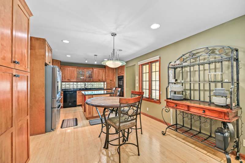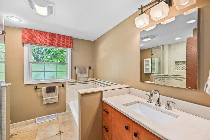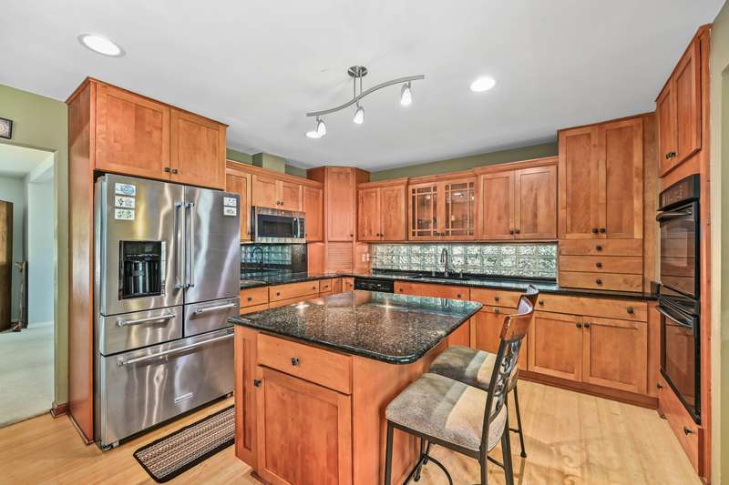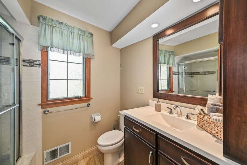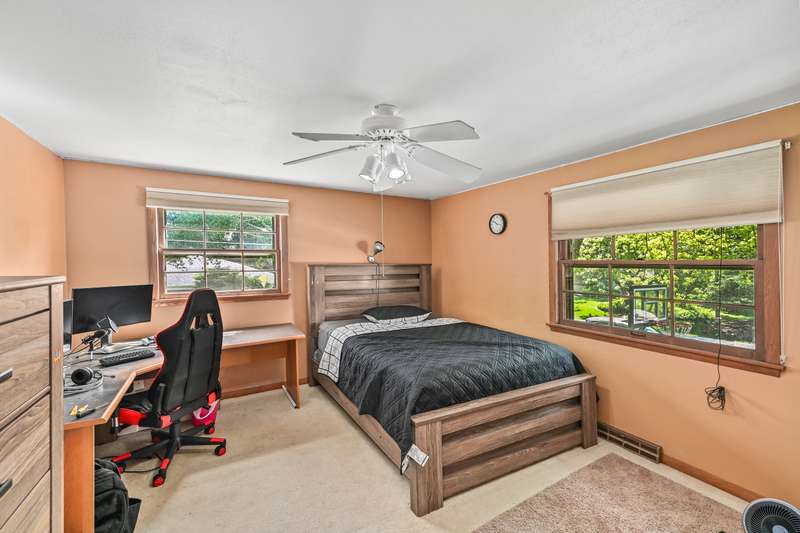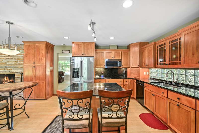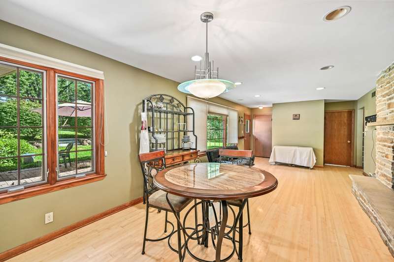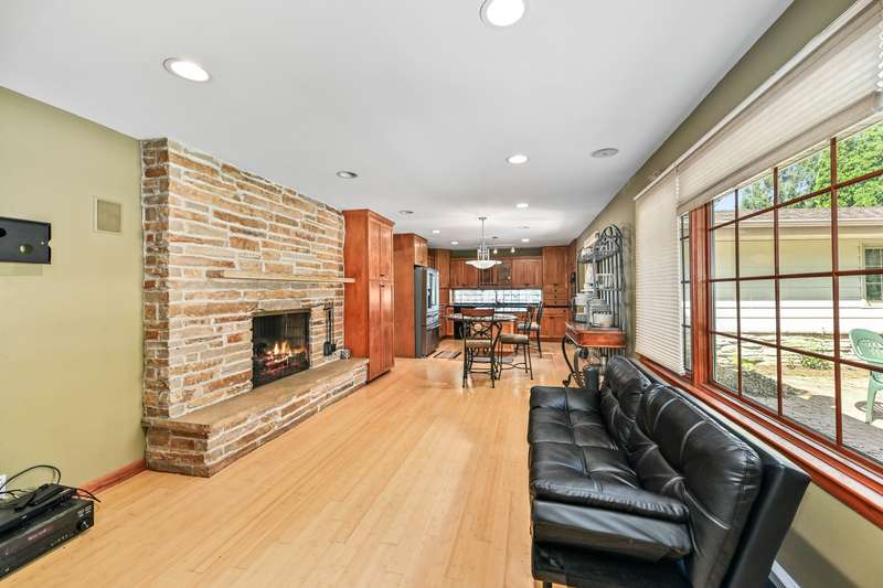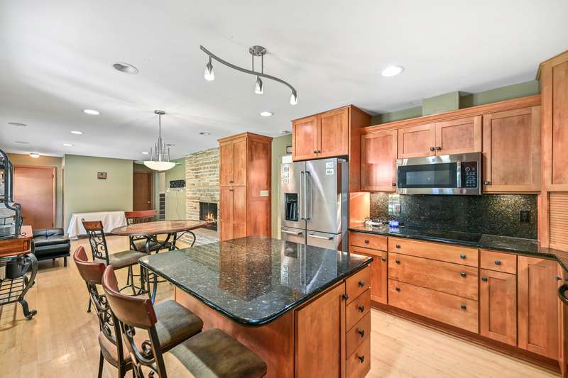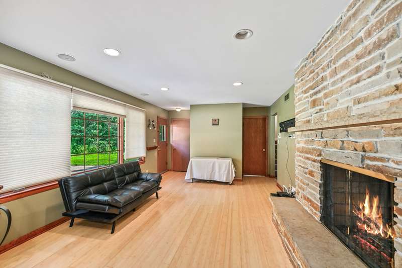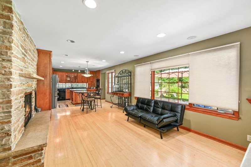 Nestled in the highly sought-after River Edge neighborhood, this tastefully updated tri-level offers the space, flexibility, and charm you've been waiting for. Thoughtfully maintained and rich in natural light, this home blends timeless character with modern updates. Step into the welcoming foyer with slate flooring, where you're immediately drawn into the sundrenched living and dining rooms. A double-sided gas fireplace adds warmth and ambiance to the spacious living are perfect for gatherings or quiet evenings at home. The chef's kitchen is a true standout, featuring a large island, double ovens, cooktop, and custom mixer compartment. Glass block accents bring in soft natural light, enhancing the open, airy feel. The kitchen opens seamlessly to the inviting family room, complete with gas fireplace and direct access to the private backyard patio, ideal for indoor/outdoor living. A rare bonus bedroom and updated full bath on the main level provide added flexibility for guests or multigenerational living. You'll also appreciate the convenient laundry room, home office/den, and direct access to the attached 2.5-car garage. Upstairs, you'll find three spacious bedrooms and a beautifully renovated full bath. The finished lower level expands your entertaining options, offering a second cooking area and generous gathering space. Outside, unwind on the patio overlooking a serene, tree-lined backyard. Perfect for summer barbecues, play, or peaceful relaxation. This is the Glendale gem you've been waiting for you, don't miss your chance to call it home.
