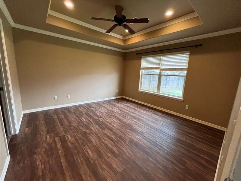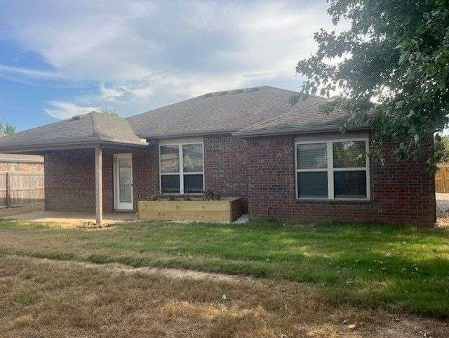 Great location! Split floor plan 3 bedroom 2 bath located in Garrett Subdivision! Kitchen has granite countertops and maple cabinetry. Fireplace in living room. Located near schools, shopping, dining, Greenway Trails and JB Hunt Headquarters. Convenient to I49. Primary bedroom has nice size walk-in closet. Covered back porch with fenced in yard. Raised flower bed section as well.