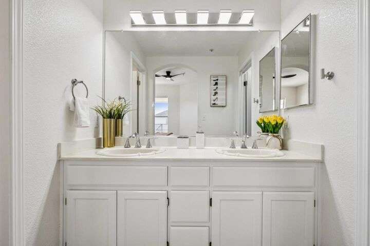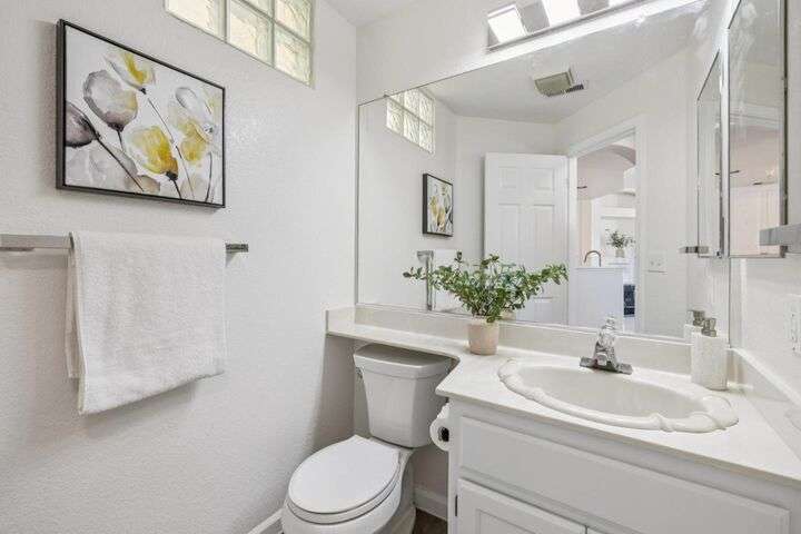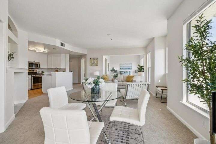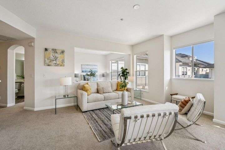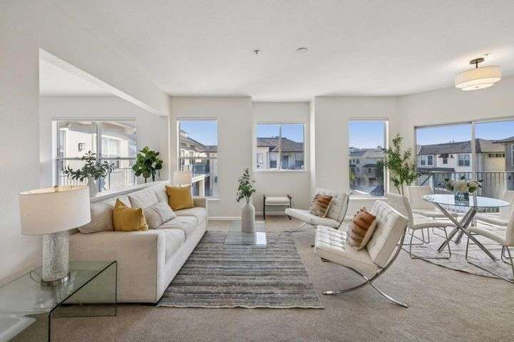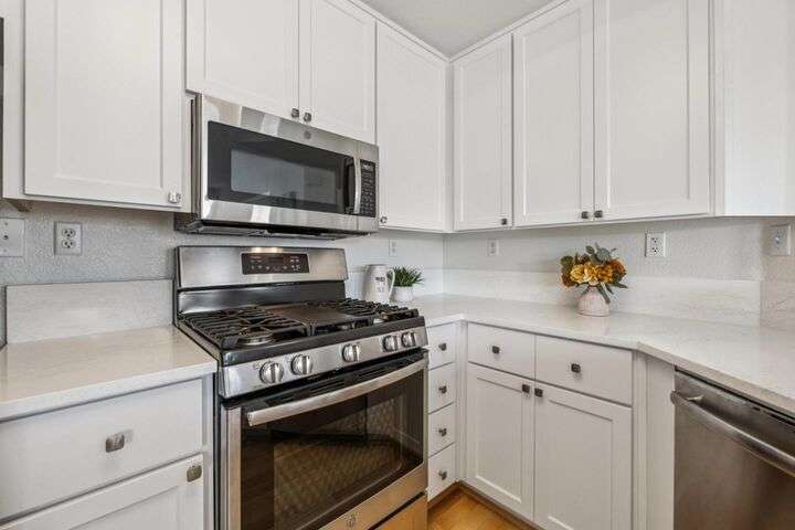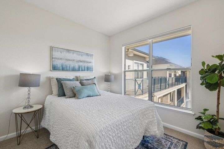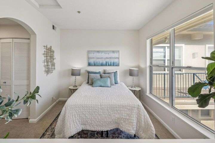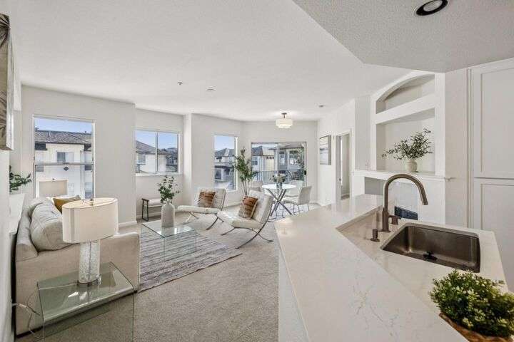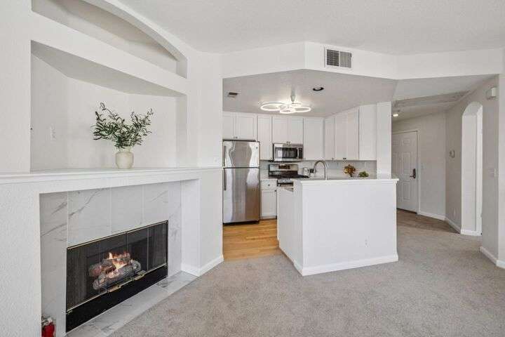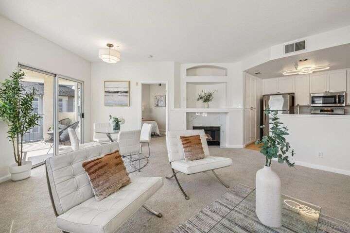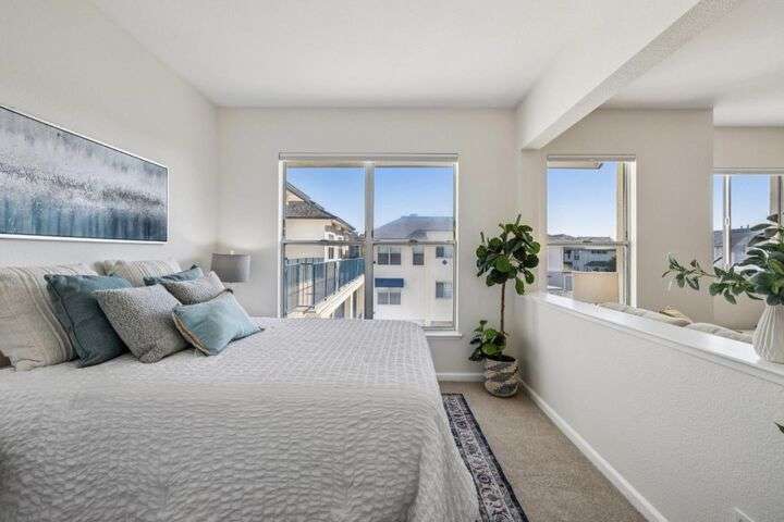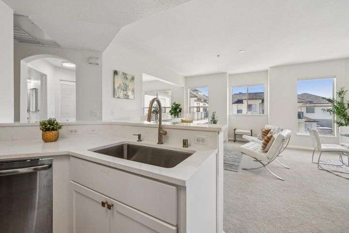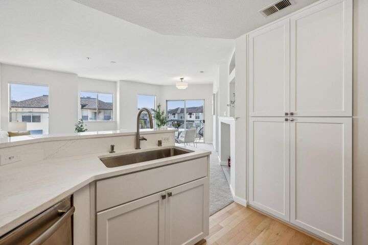 Beautiful bright top floor end unit with balcony in the heart of Redwood Shores. NO SIDE NOR TOP NEIGHBORS! Amazing condo has one primary bedroom suite plus a separate second bedroom, den or office room, offering ample space for versatility and functionality. Great open modern floor plan with 1.5 bathrooms, spacious 927 Sqft of living space, various large windows and sliding door providing abundant natural light. Tastefully remodeled kitchen with new quartz countertop and white shaker style soft close cabinets, stainless steel appliances including a gas range. Large living room with elegant modern fireplace and open to sunny balcony perfect for relaxation. Sunny and bright primary bedroom with ensuite bathroom with double sinks and walk in closet with built-in organizer. The separate bedroom, den or office is located on the opposite side of the living room, providing maximum privacy. In unit laundry, 1 garage&1 covered parking space. The desirable resort like Ventana Del Mar community offers a waterfront pool&spa, clubhouse, local parks&visitor parking. HOA covers water&garbage. Centrally located in the Peninsula&close to Bay Trail, parks, restaurants&award winning schools. Major employers nearby include Oracle, EA, Meta, Visa, Sony, Gilead. Quick access to Hwy 101, 92, 280.