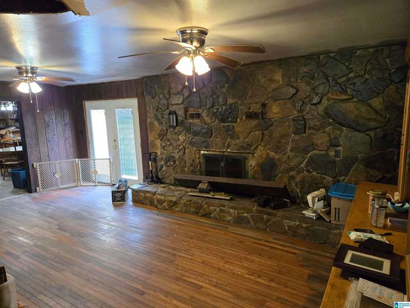 Looking for a home with acreage near Hoover and I-459 to renovate and make your own? This property offers immense potential. Imagine yourself relaxing on the spacious covered porch with a cup of coffee. Upon entering, the foyer features hardwood floors; to the left is the master bedroom, and to the right are two additional bedrooms and a bathroom. Exiting the foyer into the expansive living room, you'll notice a charming stone fireplace. From the living room, double doors lead to patio. The kitchen includes eat-in area, and adjacent to it is a bonus room with laundry hookups. The property boasts several fruit trees, including a pecan tree. While the home is equipped with HVAC, it is currently non-functional. Home is being sold AS-IS. All offers have to be approved by attorney. Proof of funds or pre approval to be submitted with all offers. Buyers or buyers agent to verify all important information includes but not limited to school zones, fire dept, trash pickup and taxes