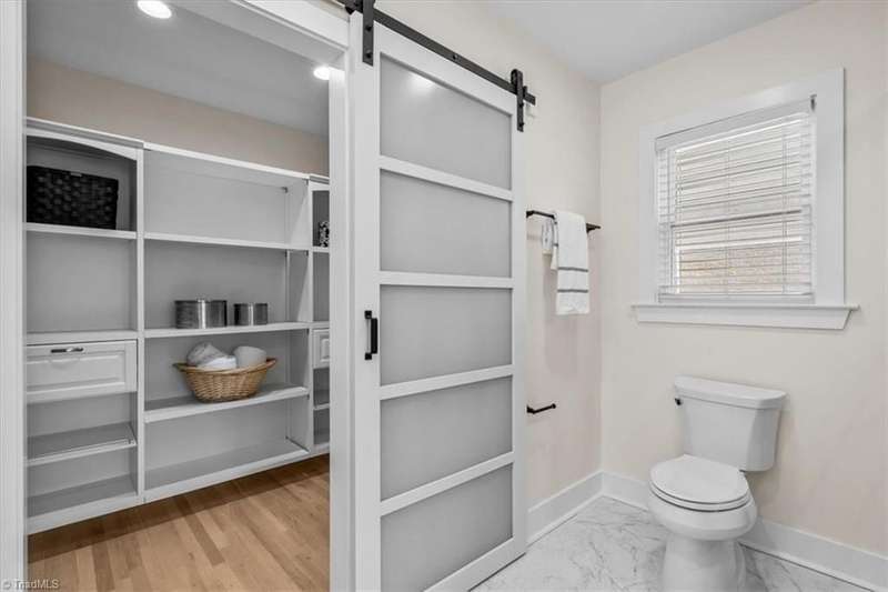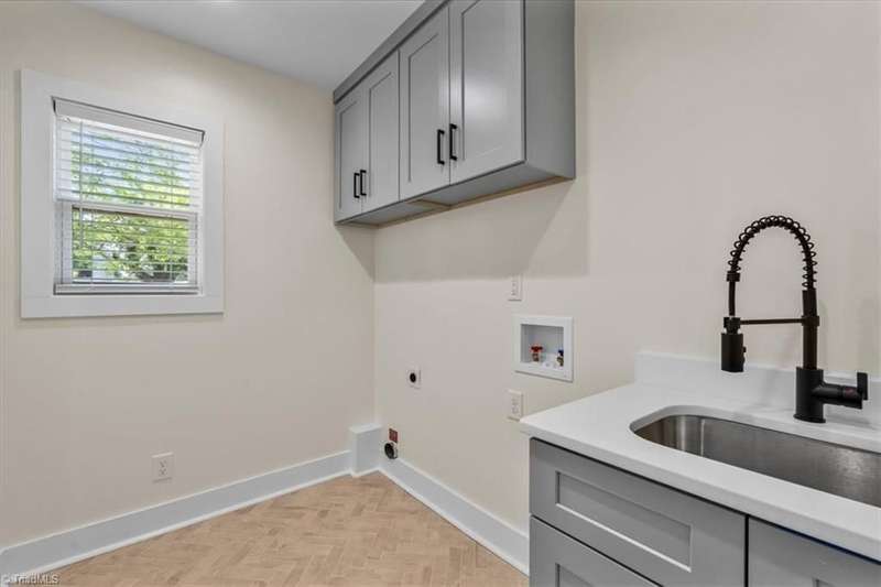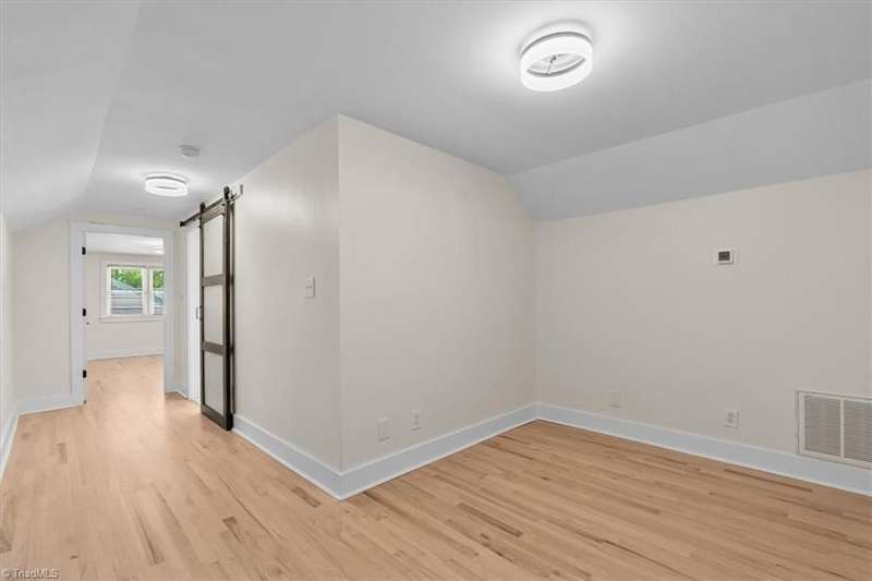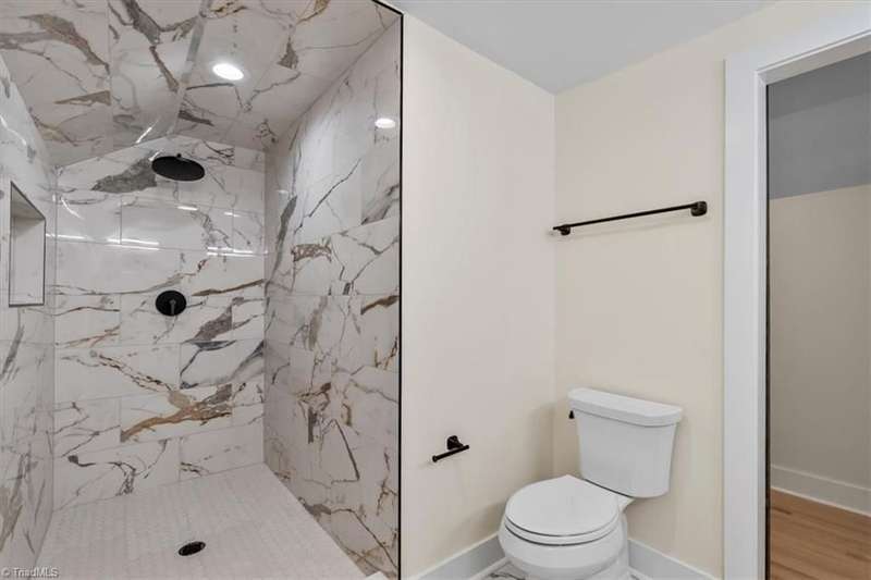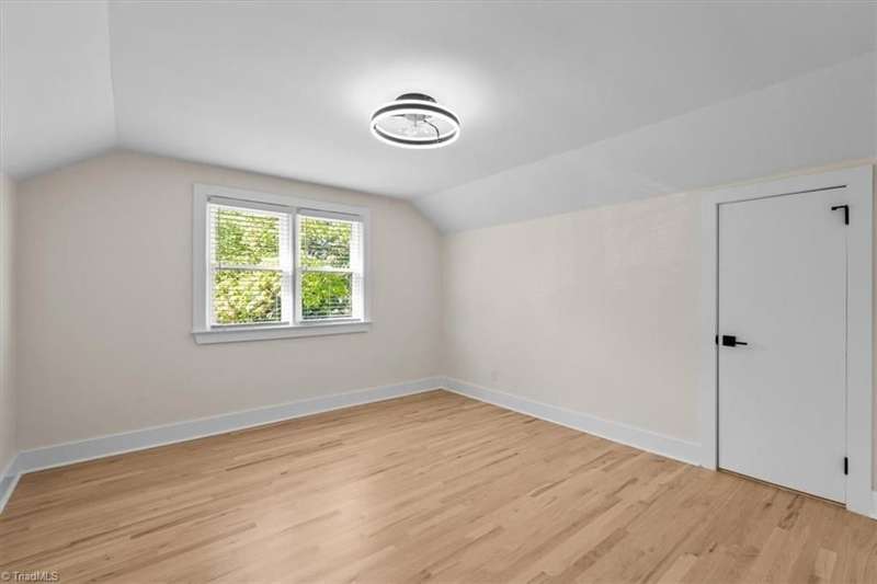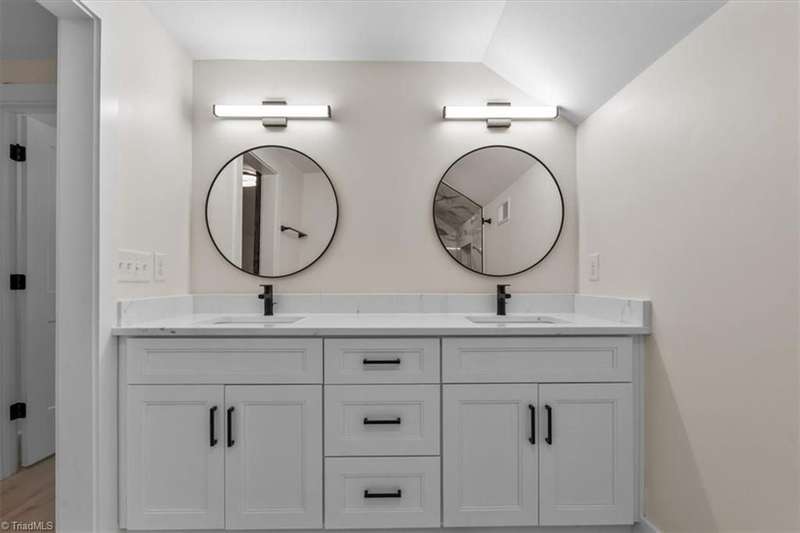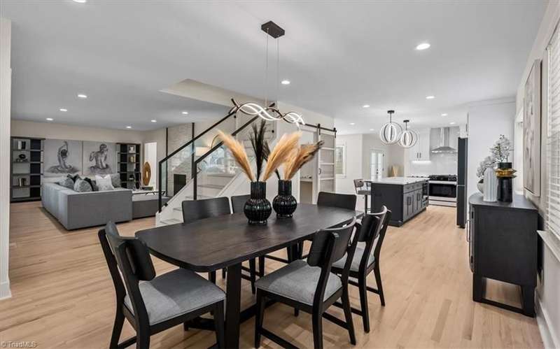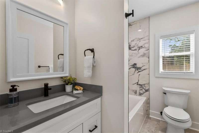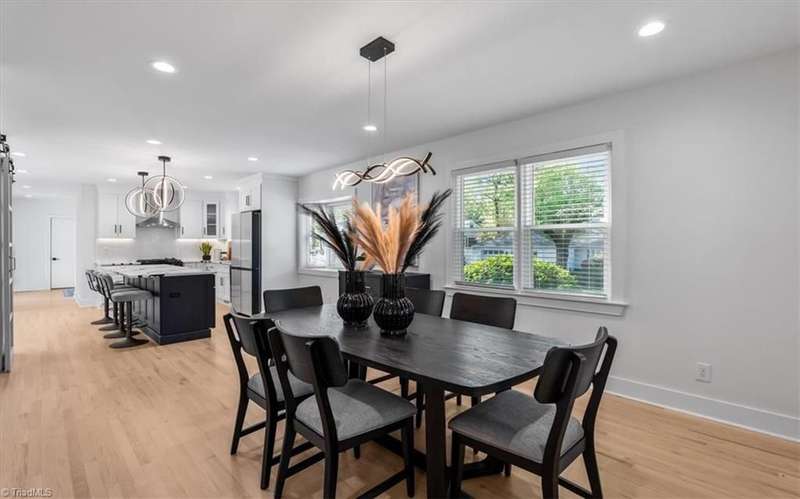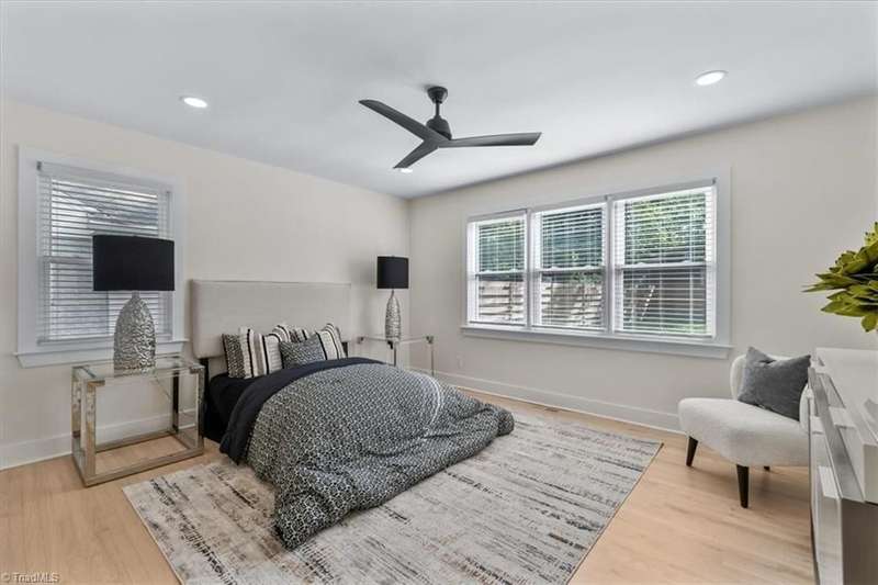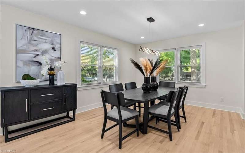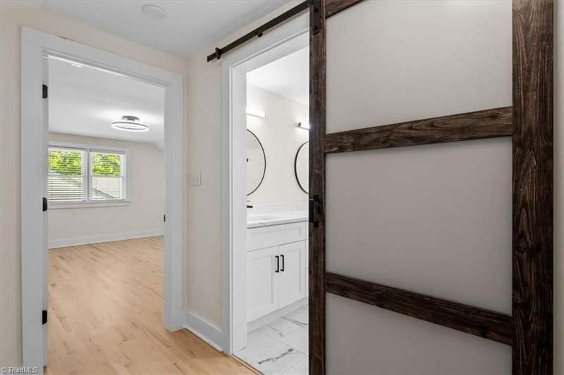 Freshly renovated by Grandeur Homes, this classic brick Cape Cod in Starmount Forest has been reimagined and redesigned into a transitional open-concept home with dramatic black-and-white accents. Overall, you'll enjoy comfortable one-level living with Primary suite and second bedroom (or office) and separate Laundry on Main. Living Room with white ledger stone fireplace surround. Kitchen with walk-in pantry, eat-up island for 4, and black accent island with striking "Panda" quartz counters that boldly contrast the crisp white cabinetry. Den with recessed Bar opens directly onto Patio inside fully-fenced backyard. Upstairs are Bedrooms 3 and 4, plus gorgeous full bath and bonus Loft space. Dual entries on both the front and ?Kirby? side of this corner-lot home. Attached 2-car garage with epoxy floor is safely tucked on rear with direct access to Kirby Drive. Conveniently located 1/2 from Starmount Forest Country Club and 1 mile from Friendly Shopping Center. Agents, see Remarks.