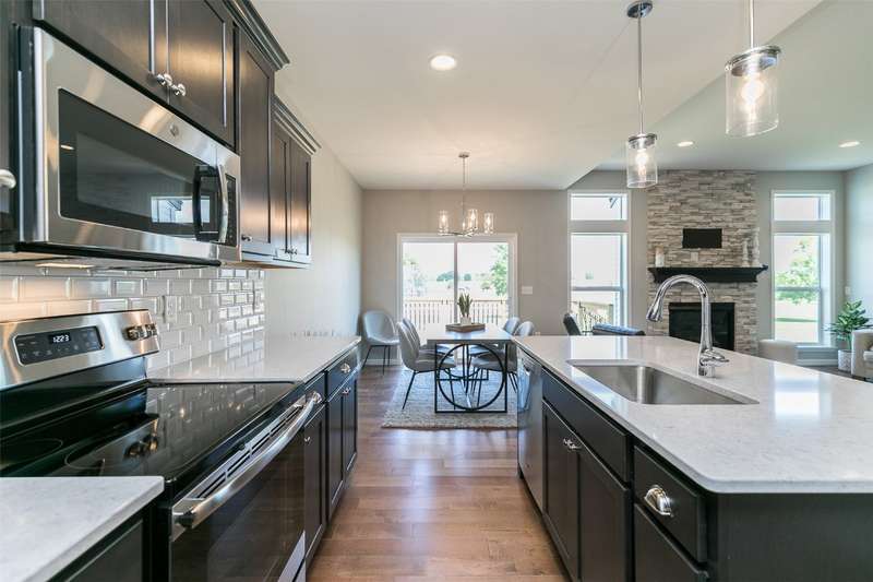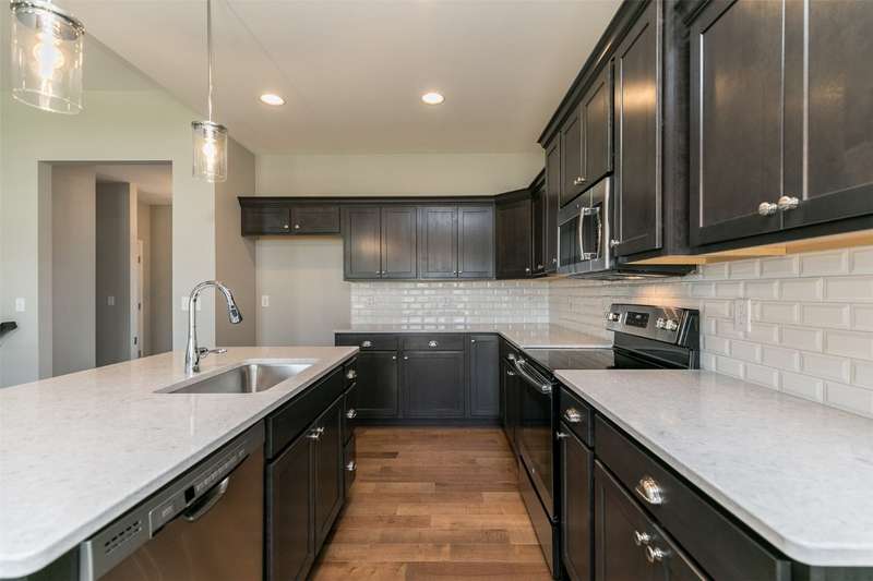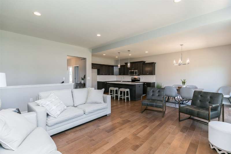 Photos of a similar home. Open concept split bed ranch with double doors upon entry, tall ceilings throughout, vaulted living room, and engineered hardwood flooring in the great room, dining, and kitchen. Built in fireplace with full stone, painted white trim throughout, soft close custom cabinetry, and quartz tops in the kitchen and baths. The primary suite features dual sinks, floating soaker tub, and a spacious walk in closet. Basement complete with two additional beds, large rec. room and full bath. Contact listing agents to see a similar home. Price subject to change, not all selections have been made.