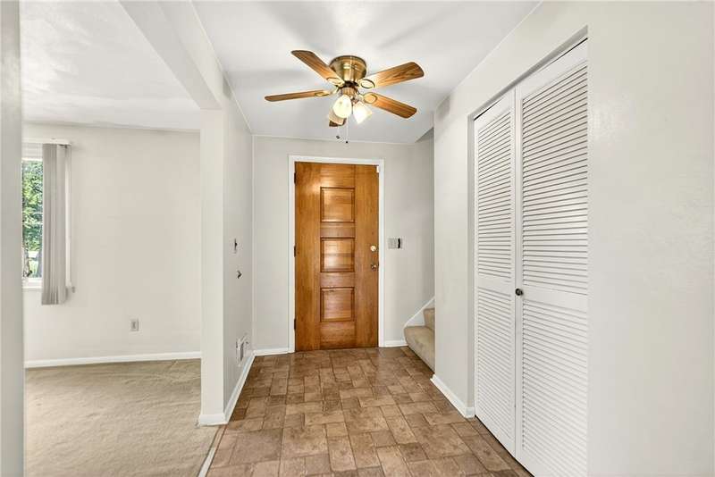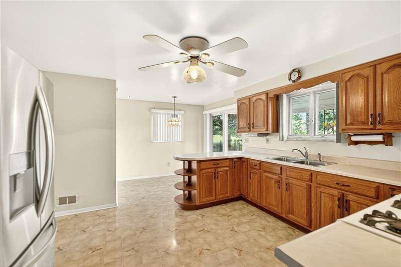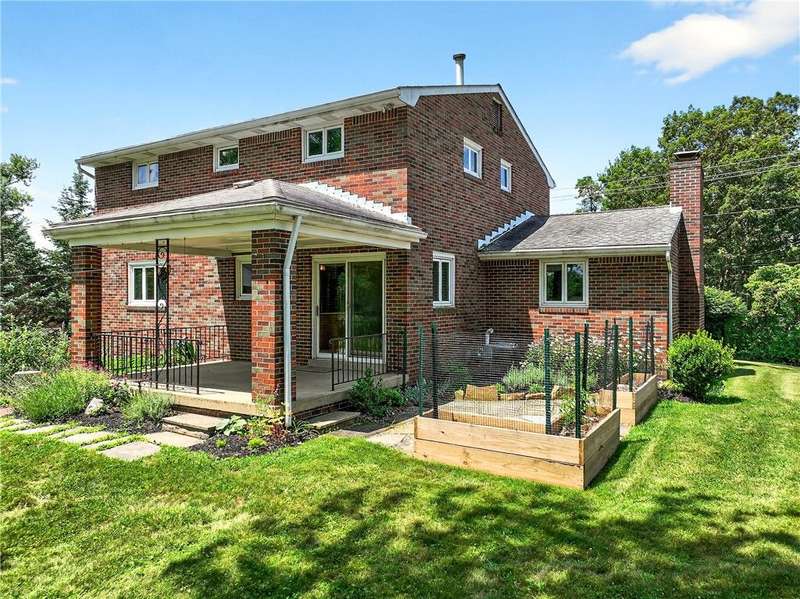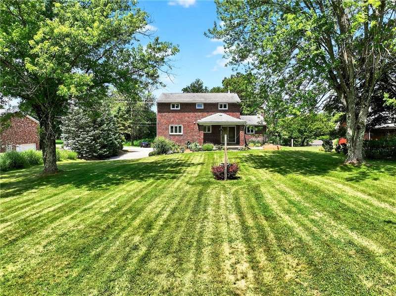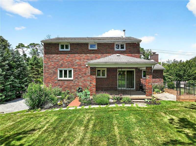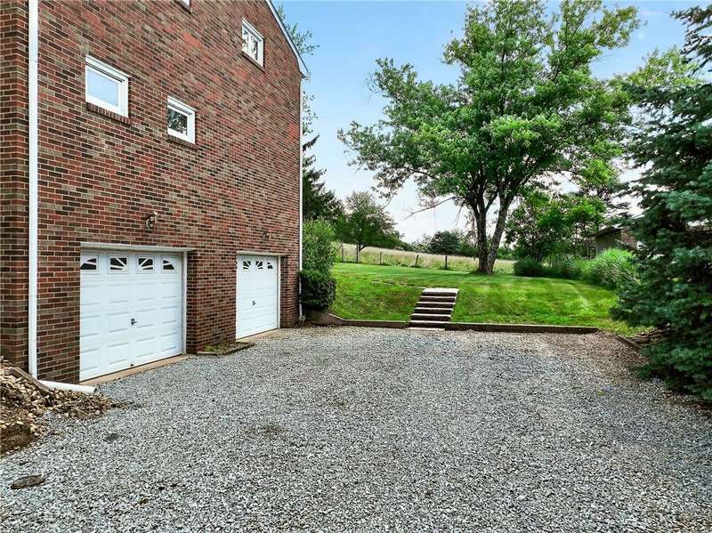 Enjoy sunrises and beautiful views from this well-maintained brick two story, complete with 4 Bedrooms, 2-1/2 Baths within the Franklin Regional School District. The main floor welcomes you with spacious living areas, including a large living room, dining room, eat-in kitchen, partial bathroom & family room with log burning fireplace, perfect for gatherings and everyday living. The kitchen offers access to a covered back porch to enjoy both a butterfly garden and the natural green space of the Peaceful Stable Reserve. Upstairs you will find 4 total bedrooms, a full bath with walk-in shower & the primary bedroom with its own private bath & 2 separate closets. The lower level features an unfinished space perfect for a kids playroom/workout room, laundry area & access to a large 2-car garage. Additionally, the home has hardwood floors, Anderson windows & some updated appliances. Close to shopping, restaurants & bike trails.