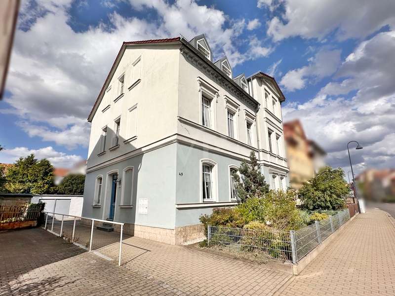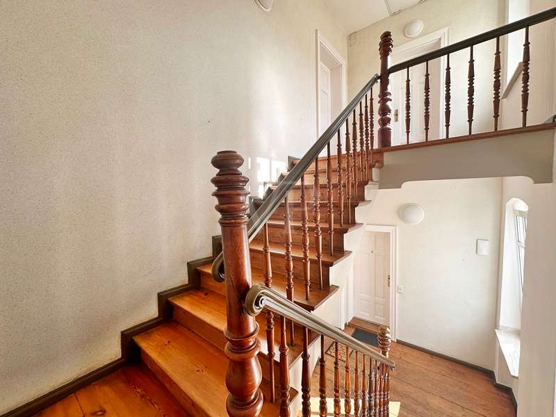 This solid apartment building from 1898 is for sale in the UNESCO World Heritage town of Naumburg an der Saale. The house comprises a total of 5 residential units with a living space of approx. 276 m² and a plot area of approx. 581 m². The house was extensively renovated in 1994-1996 and is in a well-kept condition. It is ideal for investors as it is fully let. The house has central heating, which is supplied with natural gas. The attic was fitted with full rafter insulation and additional thermal insulation in the recesses. The house has a full basement. Overall, the apartments are in a good and very well-kept condition and offer well thought-out floor plans. The three large apartments each have an additional guest WC. The apartments are all fitted with laminate flooring and a fitted kitchen. The house offers a solid building structure with simple but good quality fixtures and fittings. The garden behind the house is available for use by all tenants and the garage at the rear has been rented to an external user for many years. The two apartments on the ground floor and first floor also have balconies. The green area around the house is well maintained and gives the property an attractive appearance. The annual net rent is € 20,940.00 (as of August 2024). The last new tenancy was in May 2024. Thanks to extensive refurbishment in 1994-1996 and further modernization, it offers investors an interesting opportunity to invest in a profitable property. There is a repair backlog in the basement, a drainage to the driveway is necessary. All pictures have been AI-generated and show the condition (partly) without furnishings to protect the privacy of the tenants, therefore some visual defects may stand out. If you are interested, we look forward to receiving a written inquiry with full contact details using the relevant contact form. Your VON POLL Real Estate Team from Weimar