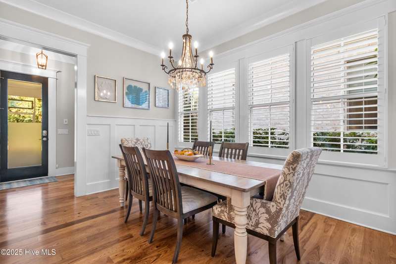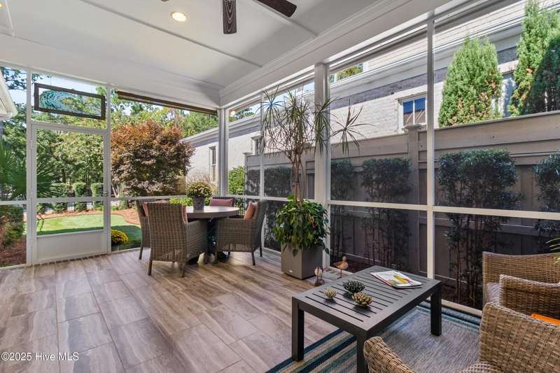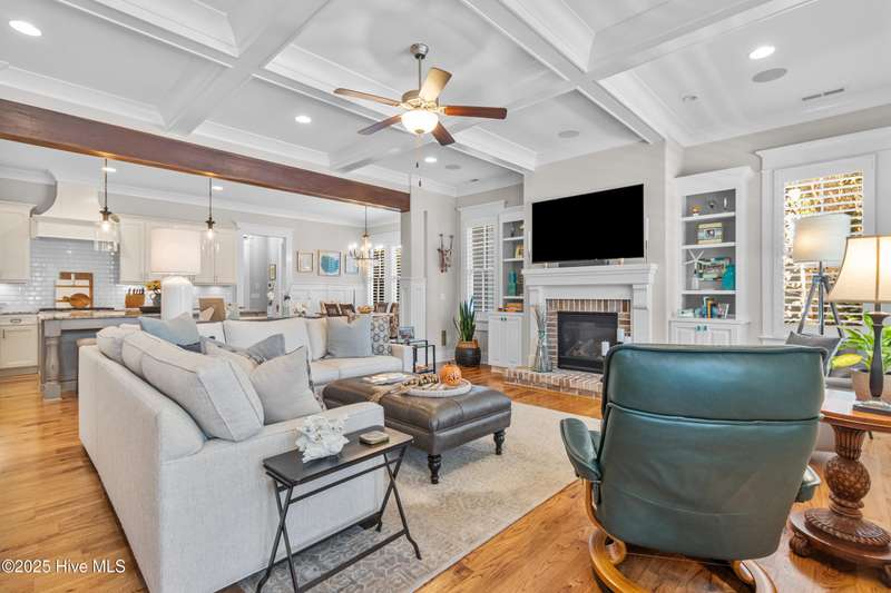 Nestled along the quiet, tree lined streets of Autumn Hall, this meticulously maintained home exudes timeless elegance and showcases a thoughtful layout designed for modern living. Offering five spacious bedrooms, four full bathrooms, and a versatile bonus room, this home provides ample space for family and guests alike. The main level features two bedrooms, including the serene primary suite with a coffered ceiling and a luxurious ensuite bath complete with a soaking tub, walk-in shower, and dual vanity. The spacious living room offers abundant natural light and a cozy fireplace, creating a comfortable setting for relaxing or entertaining. The chef's kitchen impresses with a large island, gas range, and a butler's pantry with wet barperfect for entertaining or effortless everyday living. Upstairs features three inviting bedrooms, including one with its own ensuite and two connected by a shared Jack and Jill bath. A large family room anchors the upper level, offering the perfect space for movie nights, a playroom, or a quiet retreat. Outdoor living extends the home's appeal with a covered rocking chair front porch and a peaceful screened porch overlooking the fenced backyard. Additional features include a whole home generator, plantation shutters, and air conditioned two car garage accessed via a rear alley. Residents of Autumn Hall enjoy access to a community pool, parks, and playgroundsall just minutes from Wrightsville Beach and the best of Wilmington living.