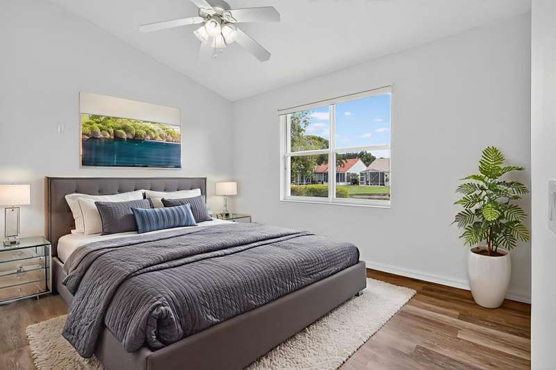 Move in condition and renovated 2 bedroom, 2 bath, 2 car garage, with a formal dining room and den/office. All bedrooms with new luxury vinyl plank flooring. Upgraded kitchen with granite counters, newer stainless steel fridge, oven and microwave. Kitchen faucet and cabinet pulls replaced with contemporary black finished hardware. Upgraded floor tiles throughout the main living area enhance the luxury of this home. Floral Lakes is one of the best value communities of this type in the Palm Beaches and Delray Beach. Located near shopping, entertainment in a well run community clubhouse. Tropical beaches and fine dining opportunities moments away in cosmopolitan Delray Beach within a short travel time. A must see opportunity for a move in ready Delray Beach villa home!