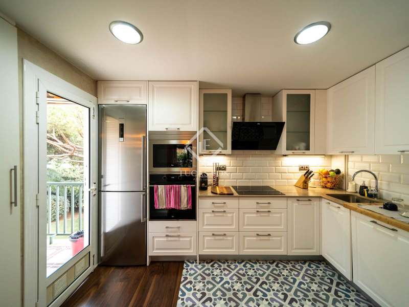 Apartment located in the heart of Gavà Mar and 5 minutes' walk from the beach, near a pharmacy and other important services such as international schools. It is very well connected to public transport, 10 minutes by car from the airport and 15 minutes from the centre of Barcelona. This apartment, surrounded by a large terrace which can be used at different times of the day and during the four seasons of the year, enjoys a quiet setting in a well-kept and elegant community with swimming pool, tennis court, events venue and barbecue. The entire community is surrounded by a large garden with Mediterranean pine grove. In the day area we find the spacious living room with fireplace and access to the terrace and the fully equipped open kitchen with mini cellar. The night area consists of three bedrooms: one of which has a full en-suite bathroom, and another two of similar dimensions with a full bathroom. The recent modern renovation has used the finest quality materials to create a welcoming property with natural wood parquet throughout. The price includes a parking space for two vehicles, a storage room of 15 m² next to it and a smaller storage room located on the ground floor to store smaller objects such as summer and winter sports equipment, bike rack, luggage , etc.