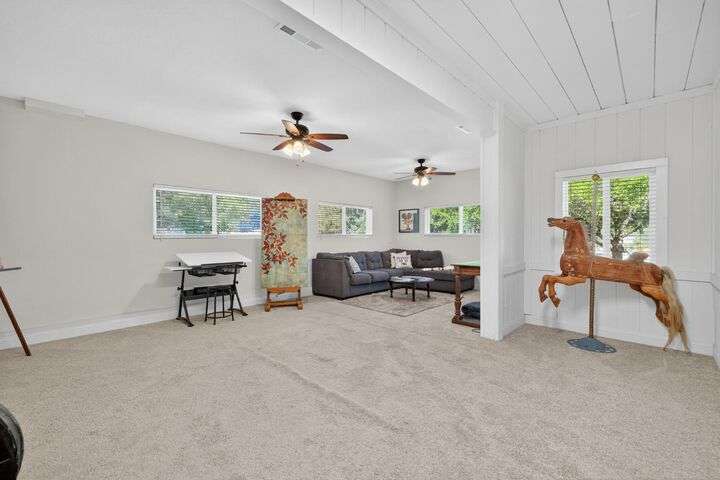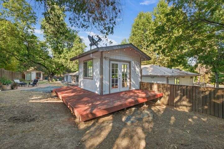 WOW! One Acre Compound minutes from Downtown Placerville - 2,429 Foot Renovated Main Home + Fully Furnished 800 Foot ADU + Artist Studio + Detached Office/Gym. The beautifully appointed single-story ranch home offers 3 bedrooms, 2 bathrooms, and an open-concept kitchen and living area, complemented by a spacious separate family room. The expansive primary suite includes a versatile adjoining room perfect for a dream walk-in closet, private studio, nursery, or your own personal haven. The detached guest quarters/ADU adds incredible flexibility as a fully independent 1-bed/1-bath residence. In addition, the property features three finished outbuildings ideal for a gym, home office, media room, or extra storage. Set on 1.18 acres of level, usable land, this estate provides room to live, work, and play. All this, just minutes from charming downtown Placerville, 30 minutes to Folsom, and an hour from the year-round recreation of Lake Tahoe. Come explore the possibilities - this property is full of surprises and ready to welcome you home!