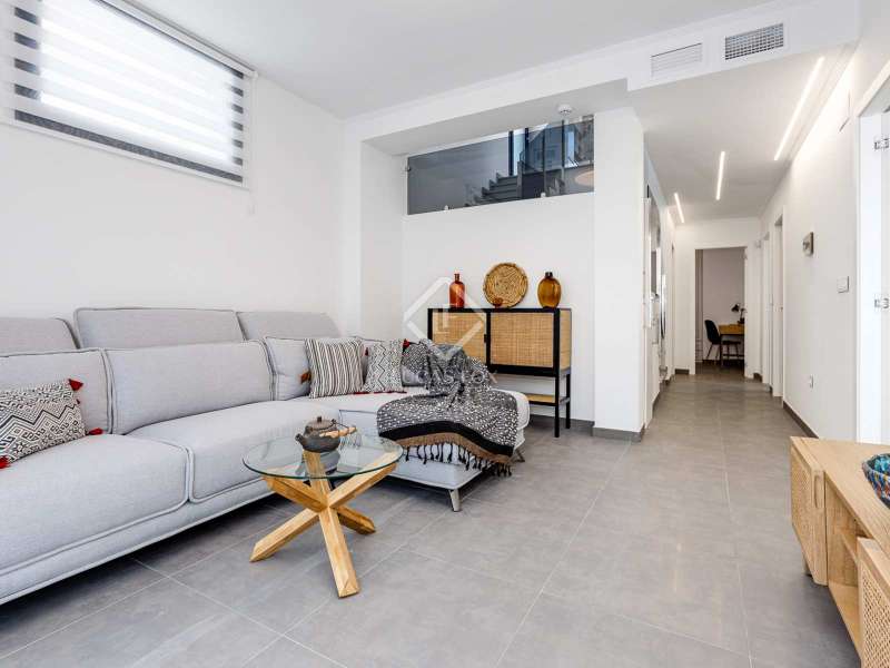 Lucas Fox presents this independent villa with a lot of charm, next to the beach on the second line of the sea. A perfect property as a first or second residence in a wonderful area with restaurants, a sandy beach, supermarkets and all amenities. This property, completed in 2023, has a modern design with straight lines. It has a heated pool and a layout with between three and five bedrooms, including the master suite with its private bathroom on the main floor , with access to the terrace that provides abundant natural light. On this same floor, there is the very spacious living-dining room, also very bright, and the fully equipped kitchen. The rest of the bedrooms will be on the ground floor. Finally, on the second floor there is a huge solarium, with wonderful views of the sea and the entire area of La Mata. The villa, of first quality, comes with a full kitchen, equipped bathrooms, underfloor heating in all bedrooms and bathrooms, air conditioning system and smart home system, solar panels for the production of domestic hot water, heated pool, thermal and acoustic insulation with Neotermic, among others. Get in touch for more information on this property next to the beach, close to Alicante and the airport.