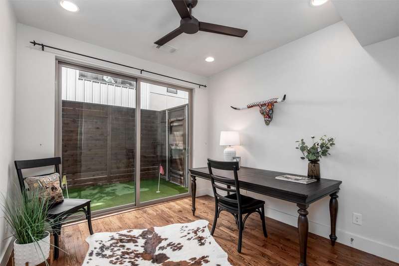 Welcome to your dream home in one of Dallas most vibrant and fun neighborhoods! Just minutes from the citys best restaurants, shopping, and Dallas Love Field Airport, this beautifully designed 3-bedroom, 3-bathroom townhome offers the perfect blend of luxury, comfort, and convenience. The first floor bedroom could also be utilized as an office space away from the other bedrooms. Don't forget to enjoy the fully turfed outdoor space with a putting green as well! Hard wood flooring throughout and an open-concept living space thats ideal for entertaining. The 12 foot long kitchen island overlooks the spacious living room, so youre always part of the conversation when hosting guests. Soaring ceilings and abundant natural light create a warm, inviting atmosphere across all levels. Unwind in the serene primary suite featuring an amazing walk-in closet and a spa-like bathroom that feels like a true retreat. A bonus interior storage area on the 4th floor adds practical flexibility, while the expansive rooftop deck large enough for a living and dining area! The rooftop offers unbeatable views and endless opportunities to relax or entertain outdoors. Additional highlights include a gated driveway for enhanced privacy and security! Don't miss your chance to live in one of Dallas' most sought-after areas this home is the total package!