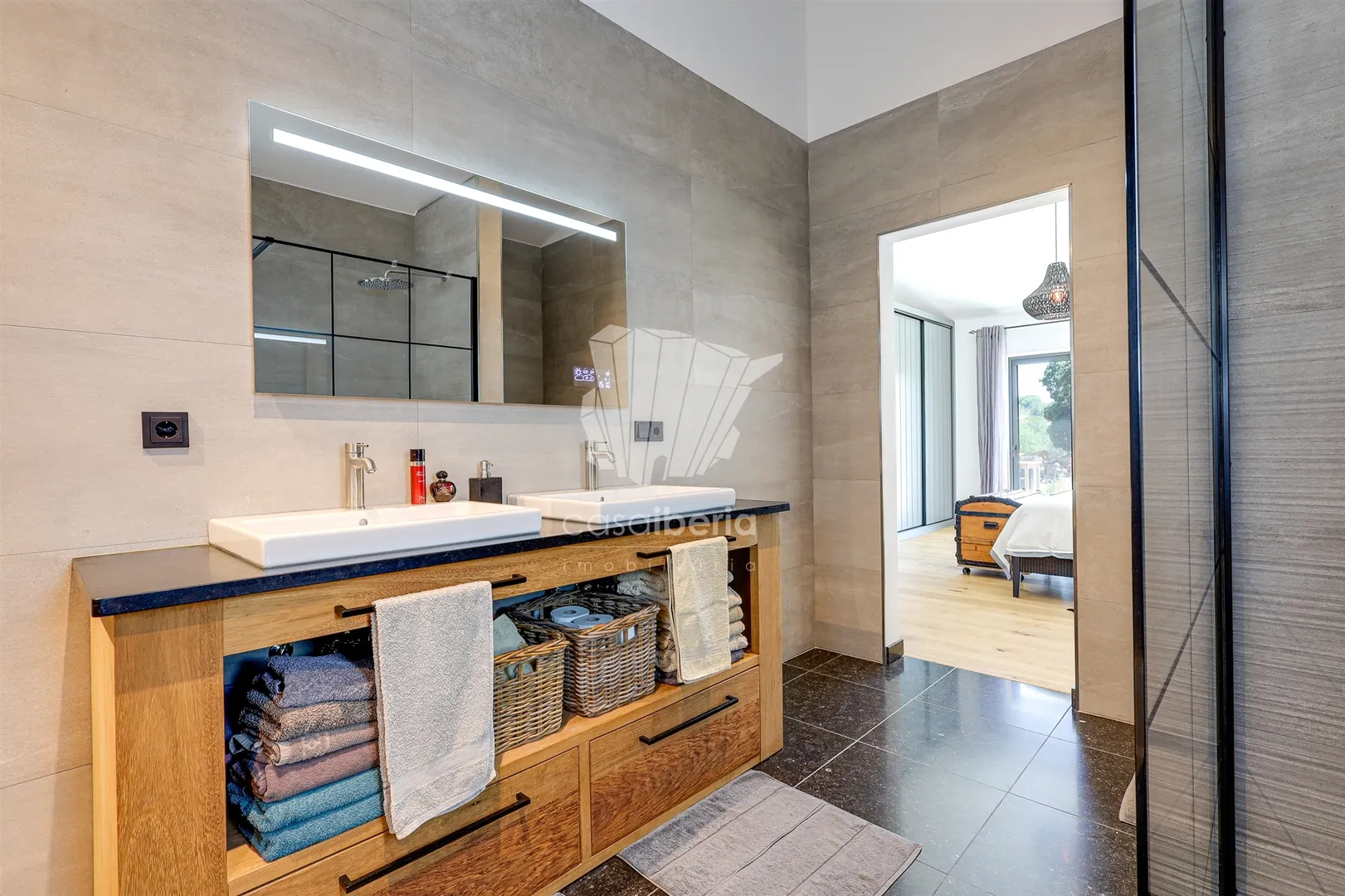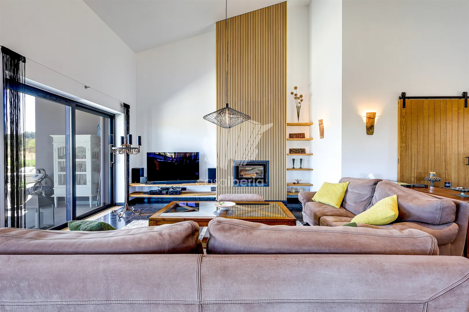 With a fully fenced plot of 22,000 m2, this property has been built with high quality materials and offers incomparable comfort with panoramic views over the countryside.