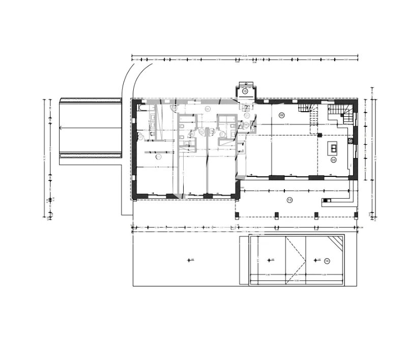 The villa's basement offers a large garage ( 6-8 cars), a laundry room, a storage area and 3 technical areas.