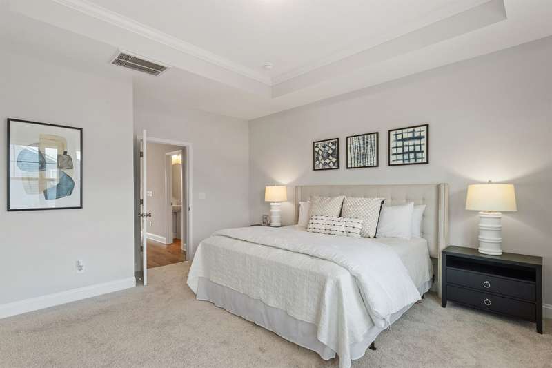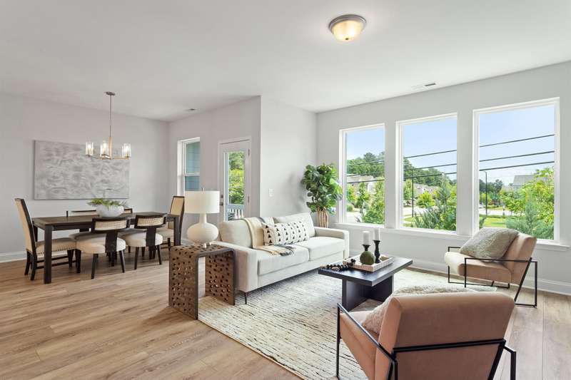 Step into comfort and style in this thoughtfully designed 3-bedroom, 2.5-bath townhome with a 2-car garage just minutes from UNC, Duke, RTP, and Southpoint Mall. Built in 2022 by David Weekley Homes, the smart layout features two bedrooms and a full bath on the first level, offering flexibility for guests, a home office, or additional living space. Upstairs, you'll find the main living area and a spacious primary suite. Tall windows in the living room invite soft morning light, creating a peaceful start to your day. Enjoy fresh air on both the ground-level patio and the balcony off the living space. The oversized, spa-inspired shower in the primary suite adds a touch of luxury to everyday life. Move-in ready and beautifully maintained, this home offers the perfect mix of modern living and convenience in a vibrant Durham location.