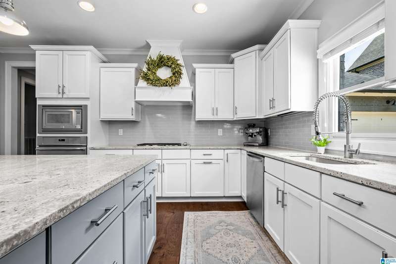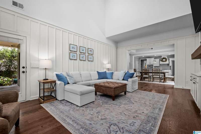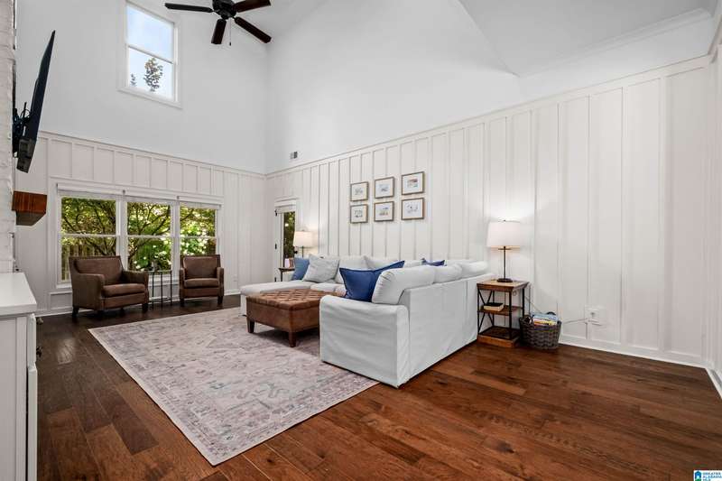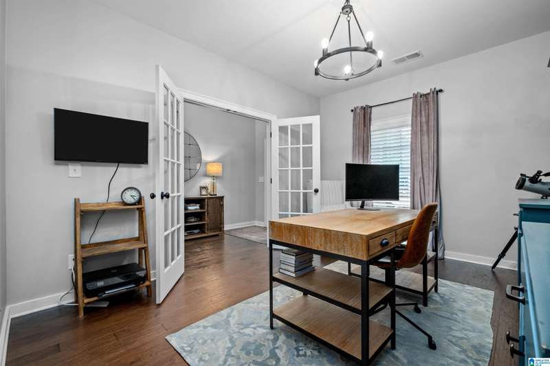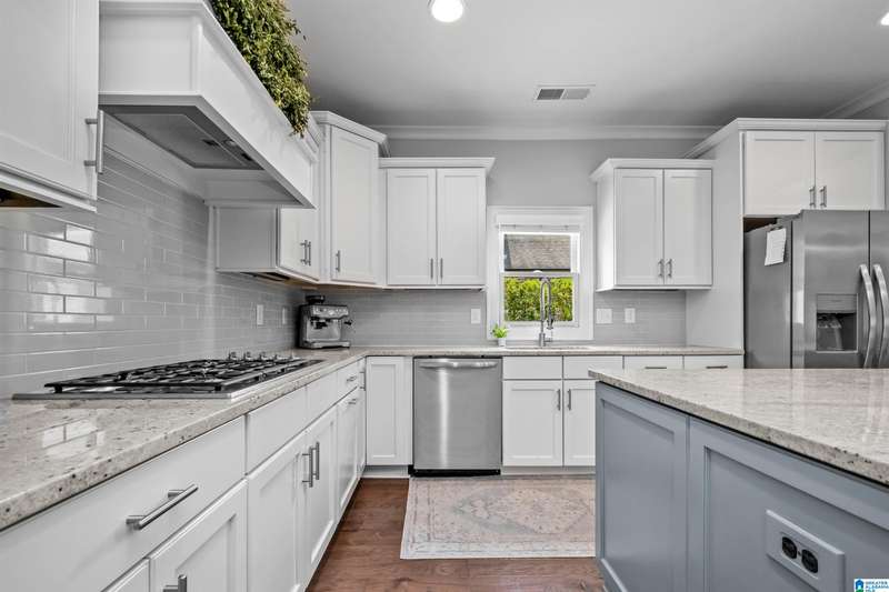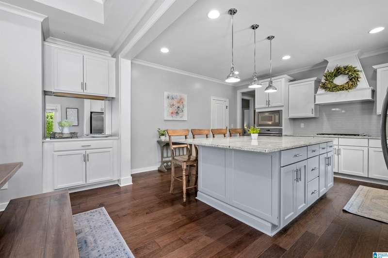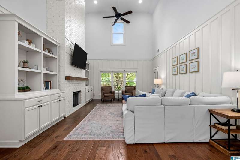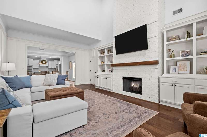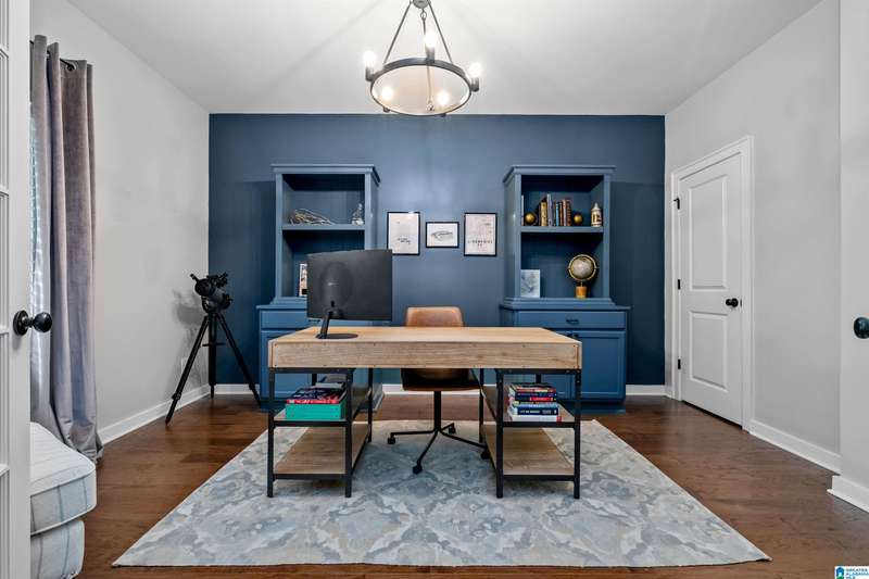 This stunning five-bedroom home has everything you've been dreaming of—and more! Step inside to find gleaming hardwood floors, a spacious home office, and a chef’s kitchen featuring a large stone island and stainless steel appliances. The soaring two-story family room is flooded with natural light, creating an inviting space for everyday living and entertaining. With two bedrooms on the main level, including the primary suite, this layout offers ultimate convenience. Upstairs you'll find a generous loft-style living area, three additional bedrooms, and two full baths. Enjoy outdoor living with both front and rear porches, a private, fenced backyard, and beautifully landscaped grounds. The charming portico and courtyard entry lead to a rare three-car main level garage. Located in one of Liberty Park’s most vibrant neighborhoods, you’ll love the community park, playground, and peaceful lake perfect for fishing. All just minutes from award-winning Vestavia Hills schools!!