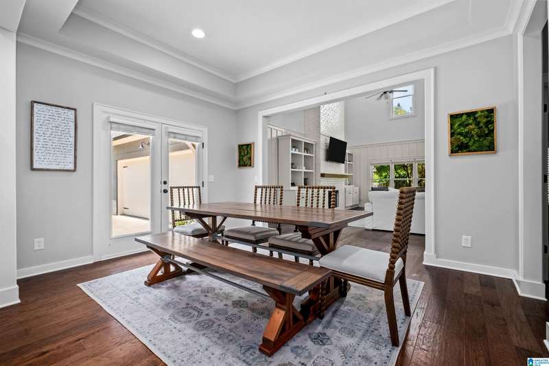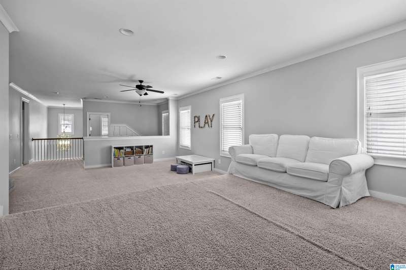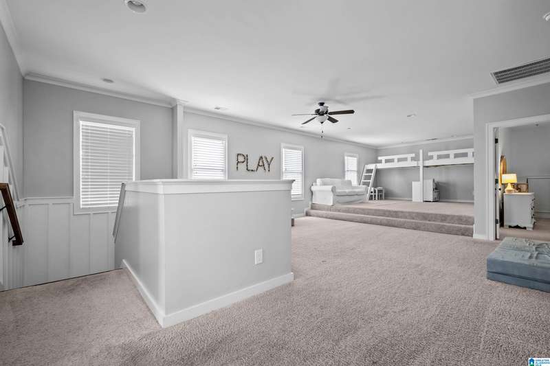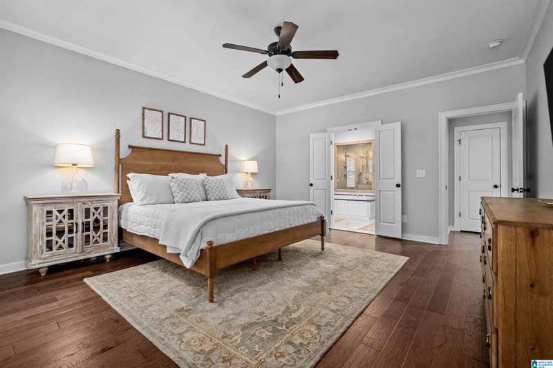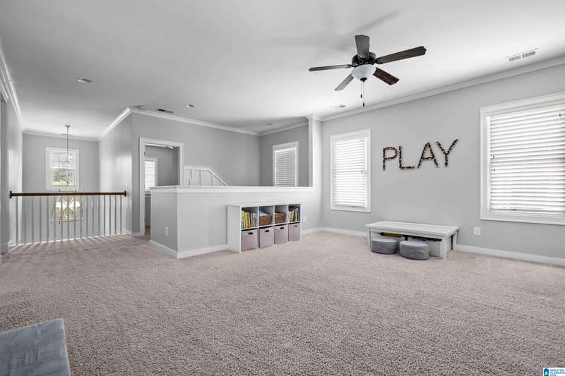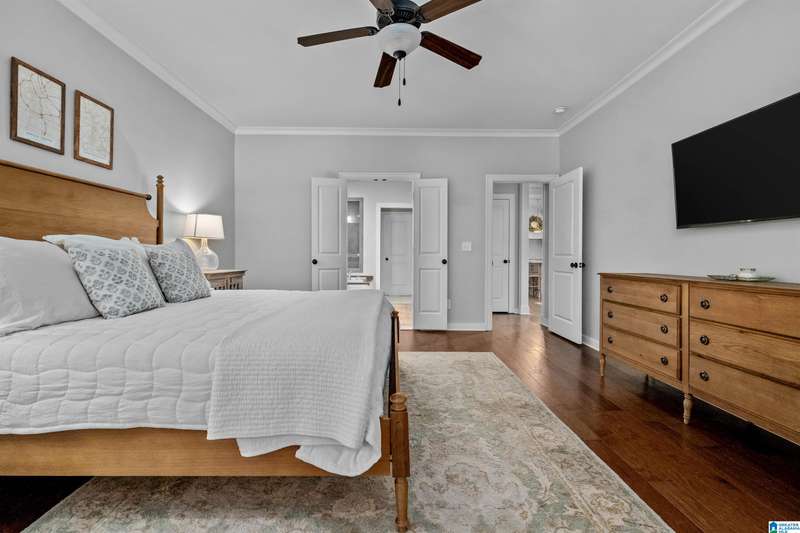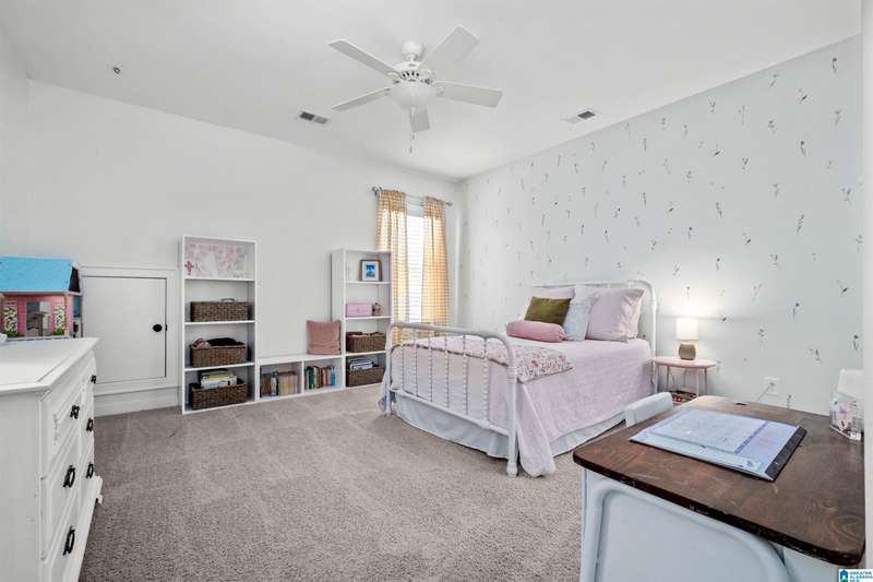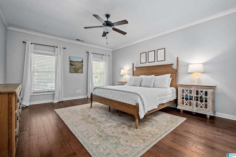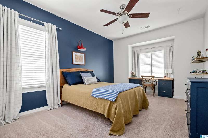 This stunning five-bedroom home has everything you've been dreaming of—and more! Step inside to find gleaming hardwood floors, a spacious home office, and a chef’s kitchen featuring a large stone island and stainless steel appliances. The soaring two-story family room is flooded with natural light, creating an inviting space for everyday living and entertaining. With two bedrooms on the main level, including the primary suite, this layout offers ultimate convenience. Upstairs you'll find a generous loft-style living area, three additional bedrooms, and two full baths. Enjoy outdoor living with both front and rear porches, a private, fenced backyard, and beautifully landscaped grounds. The charming portico and courtyard entry lead to a rare three-car main level garage. Located in one of Liberty Park’s most vibrant neighborhoods, you’ll love the community park, playground, and peaceful lake perfect for fishing. All just minutes from award-winning Vestavia Hills schools!!
