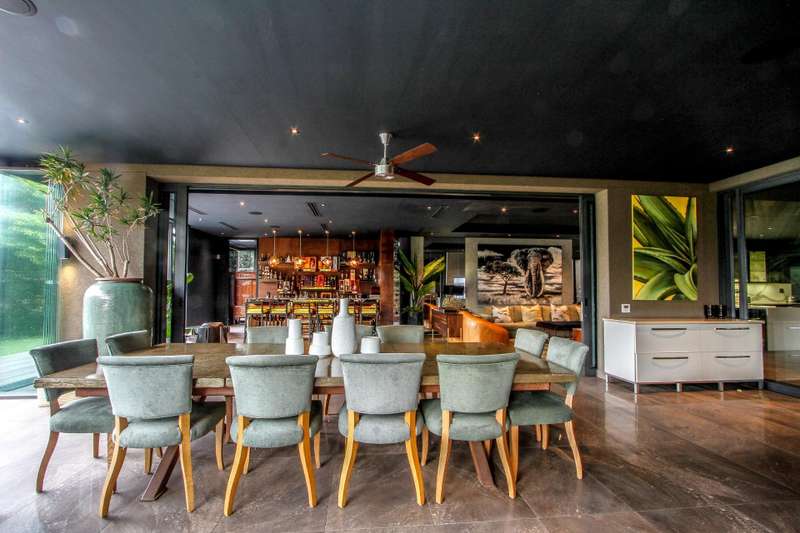 This extraordinary home, situated in the Exclusive Hawaan Forest Estate, is truly a one of a kind property. Uncompromising luxury with lavish finishes throughout cap one of the most magnificent properties on the market. Next level style and splendor meets you throughout this magnificent home, from the 5 en-suite bedrooms to the open plan indoor and outdoor dining and living areas, to the impressive gourmet kitchen fitted with Miele appliances. The floor to ceiling glass sliding doors create space, light and a perfect flow from the luxury indoor living to the spacious outdoor entertaining areas. As security is of paramount importance to owners the estate has roaming camera surveillance and 24 hours manned security.