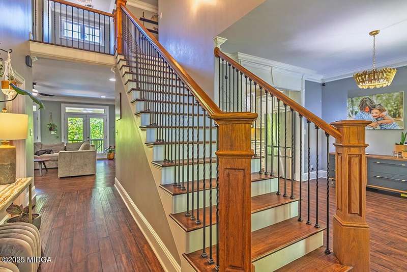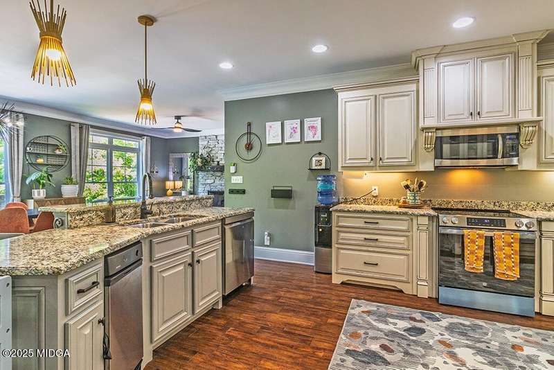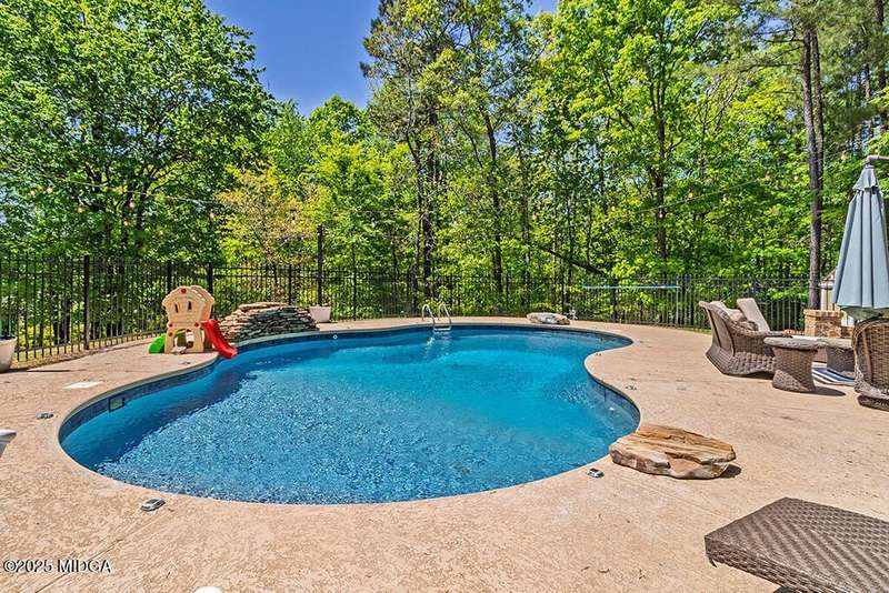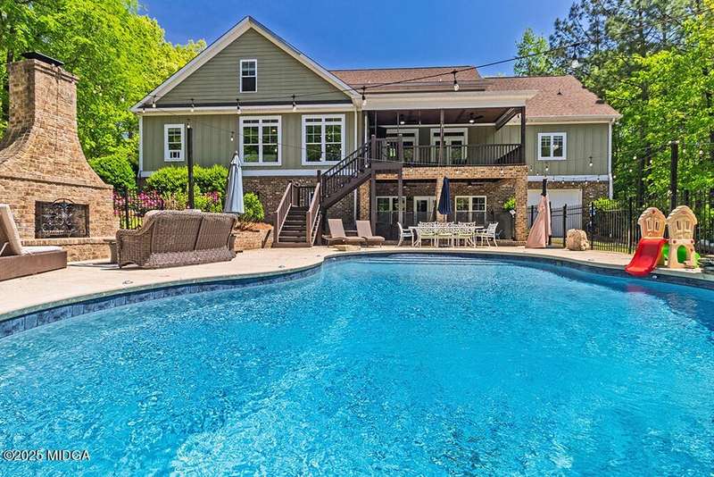 Macon Address in Monroe Co! Gorgeous 5-bedroom, 4.5-bath home sits on 3 acres in cul-de-sac of gated, premiere neighborhood of IRONGATE! Home features master on main, hardwood floors, wonderful front and back covered porches. Fabulous kitchen with keeping room that opens to great room. Walkout, sunlight basement with family room, bedroom, full bath and full kitchen, workshop, and storage. Wonderful, covered patio overlooking swimming pool with outdoor fireplace.